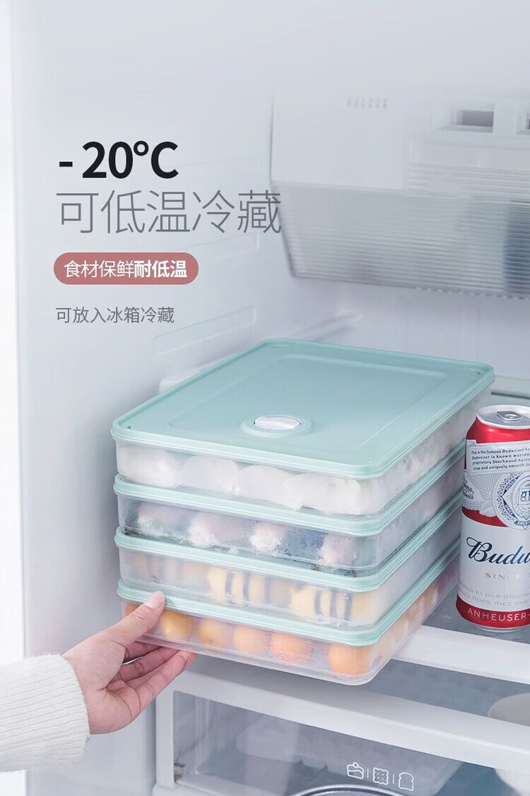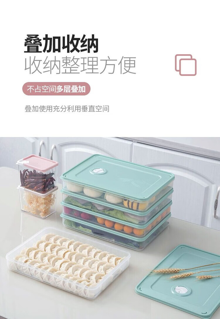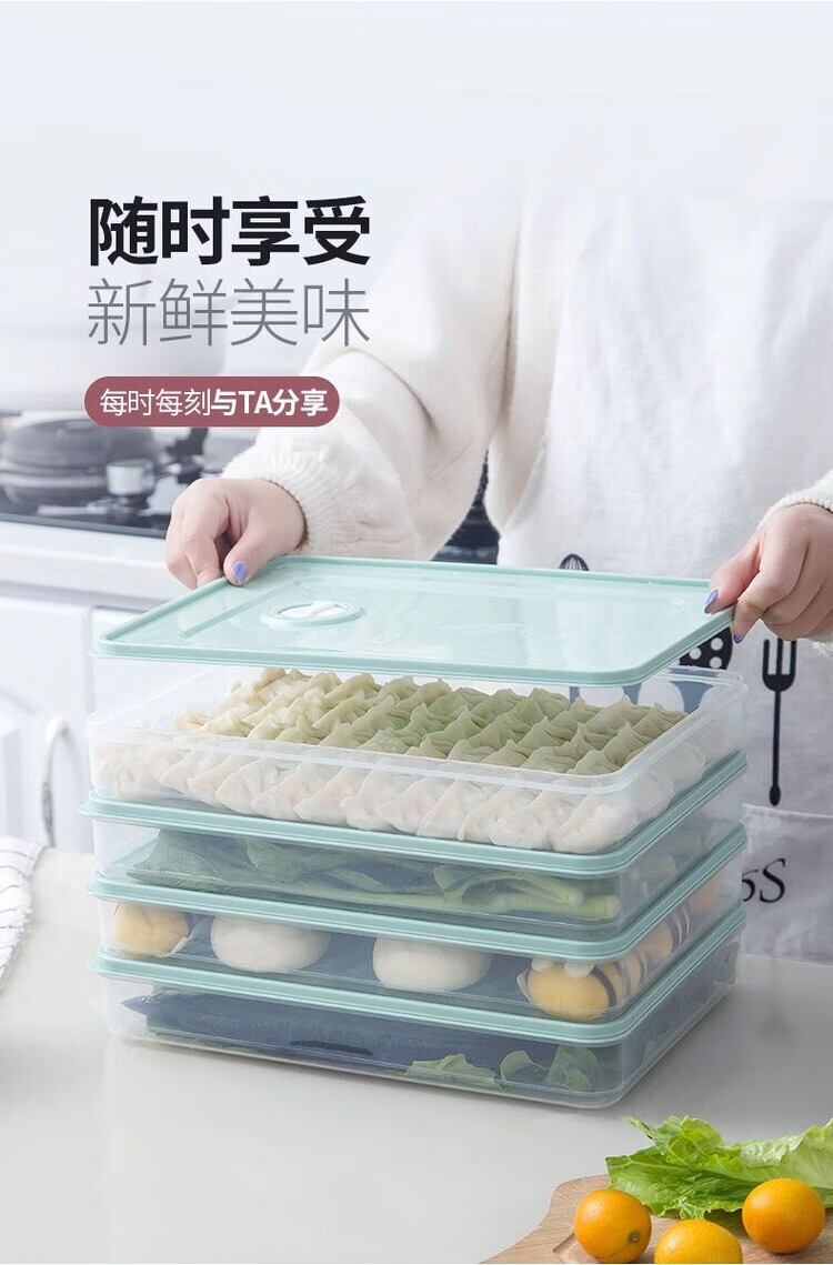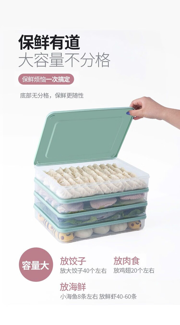 DEATKN饺子盒冻饺子多层收纳家用塑料冰箱冷冻水果透明带盖鸡蛋保鲜盒 抹茶绿【加大加厚升级版】 饺子盒【1层1盖】可放60个饺子