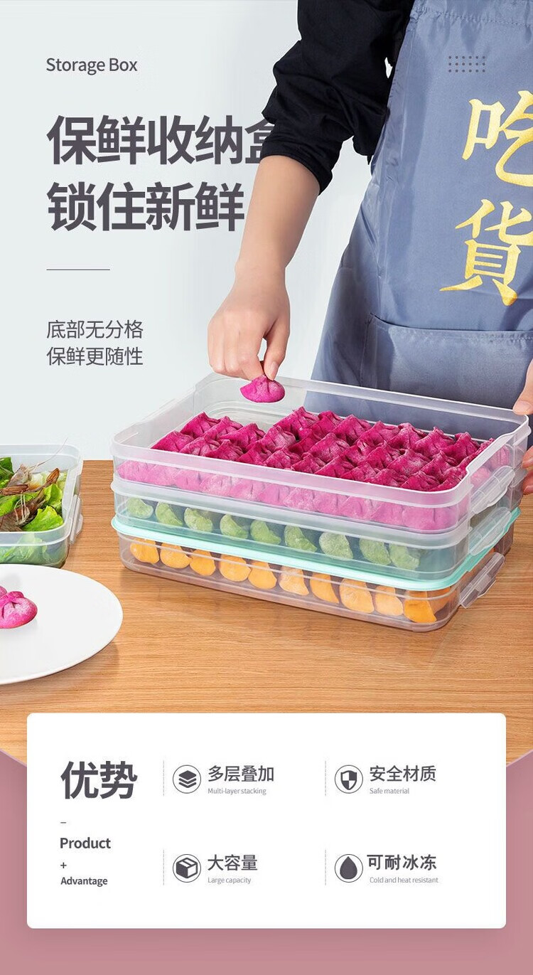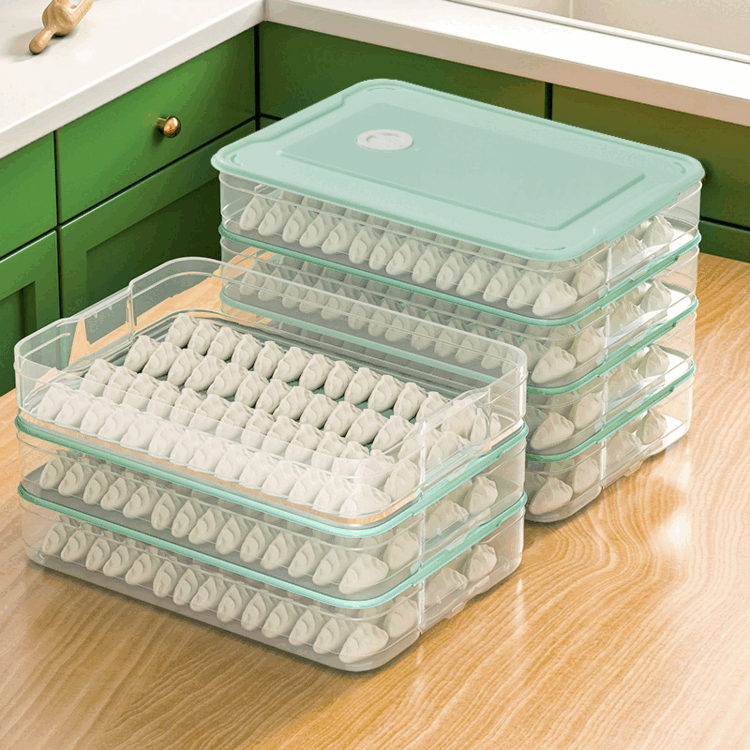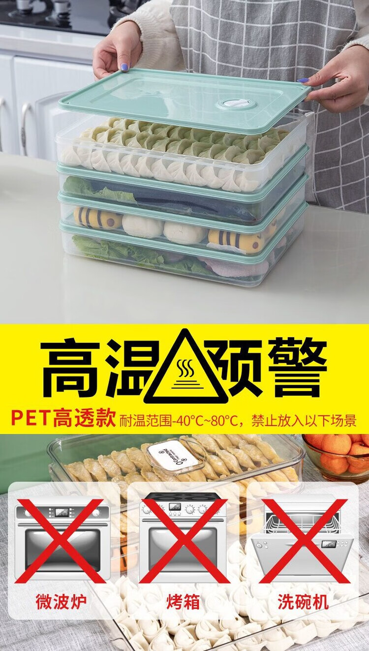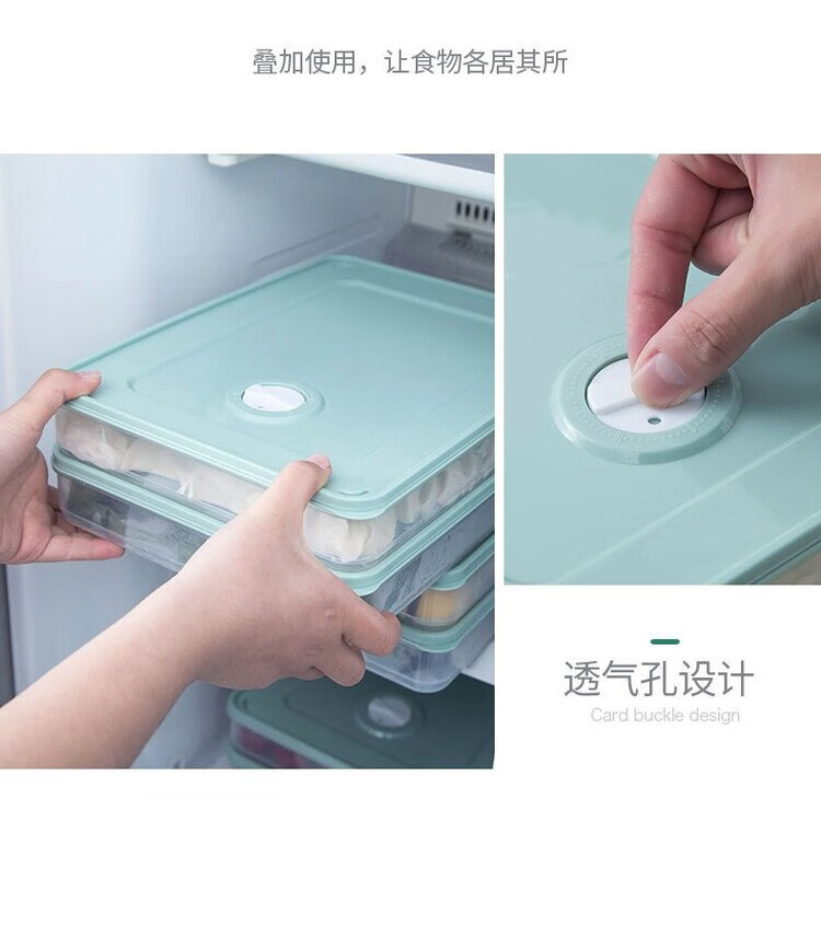 DEATKN饺子盒冻饺子多层收纳家用塑料冰箱冷冻水果透明带盖鸡蛋保鲜盒 抹茶绿【加大加厚升级版】 饺子盒【1层1盖】可放60个饺子