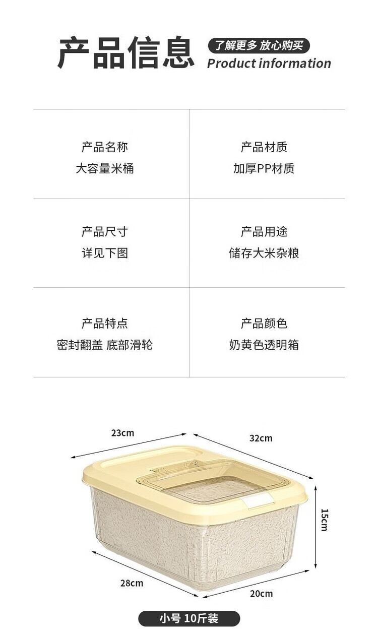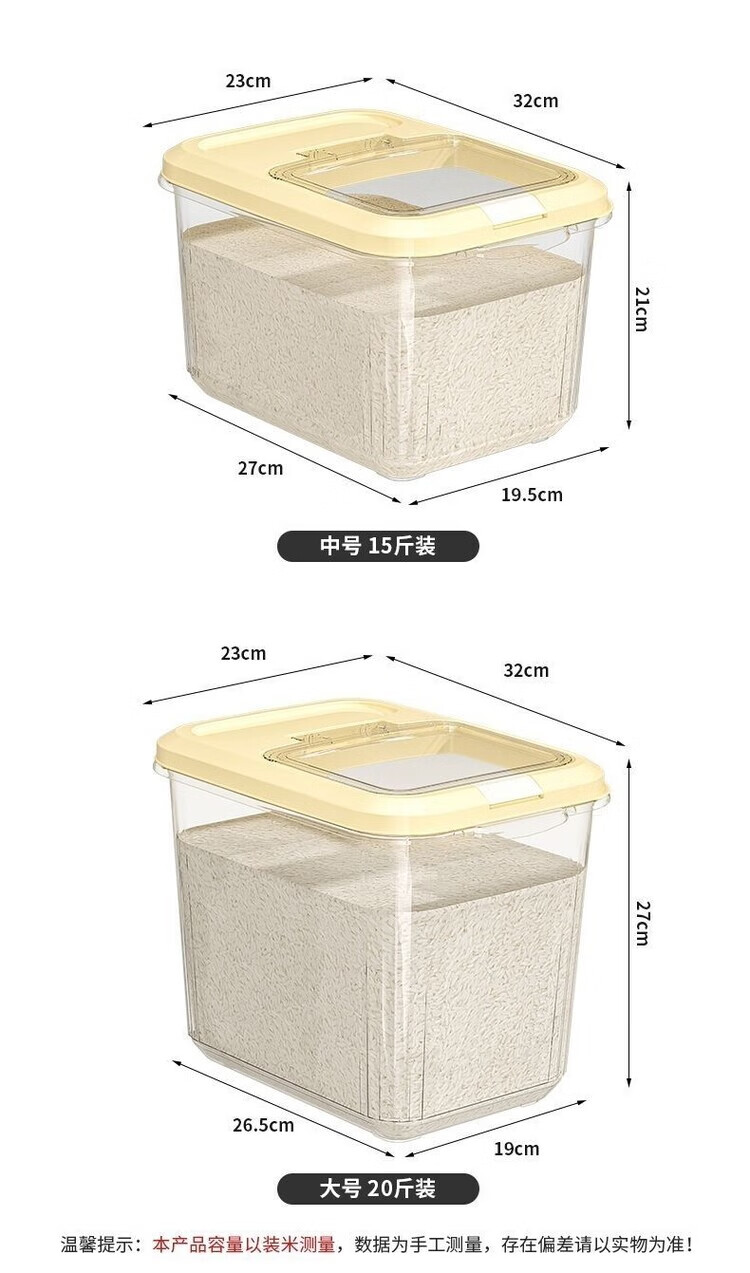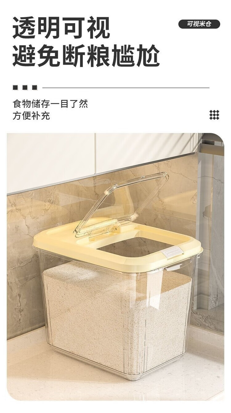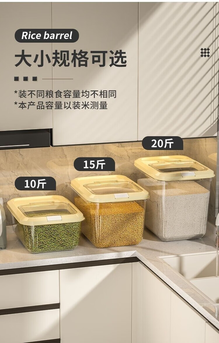 DEATKN米桶家用收纳防虫防潮密封食品级米缸米箱面粉储存罐大米收纳盒 【15斤奶油白透明米桶送米杯】 加厚款【食品级pp材质】