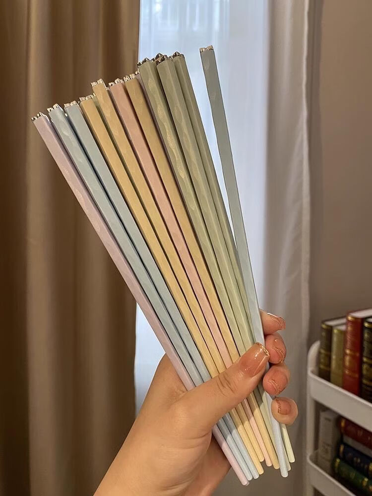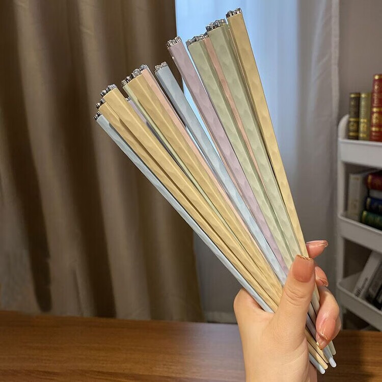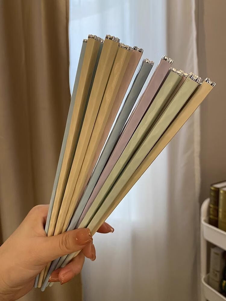 DEATKN2025合金筷子家用防霉防霉高档专人专用一人一筷高颜值抗菌快子 马卡龙五色混装5双【防滑+抗菌防霉】