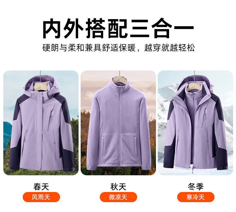 【十秒发热】冲锋衣棉服外套女三合一秋冬新款户外防风登山服旅游 柠檬橙【单冲锋衣】 M 115-135斤 女生拍小一码
