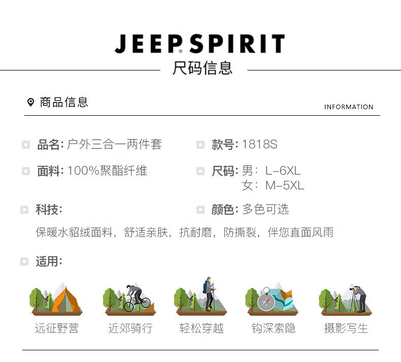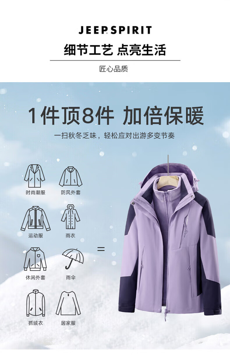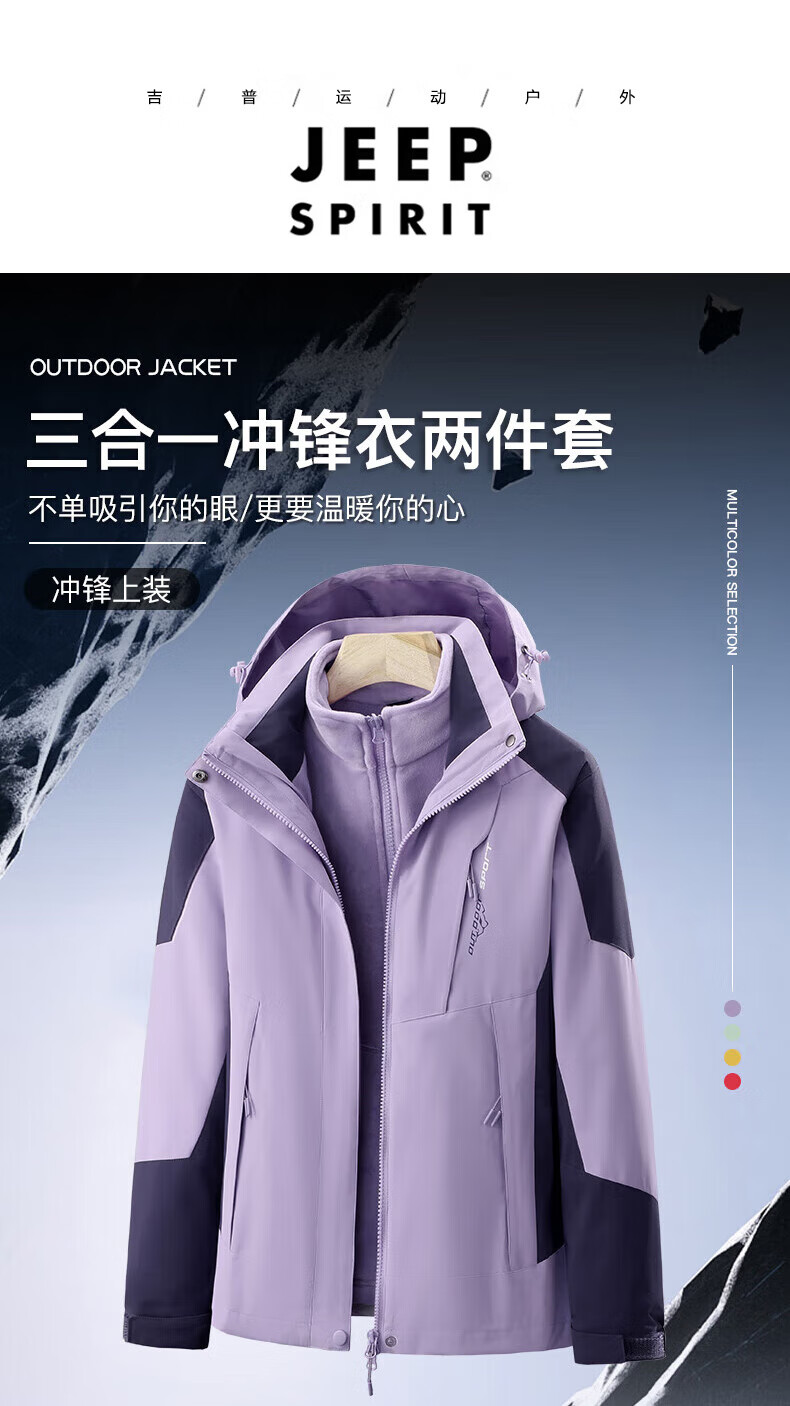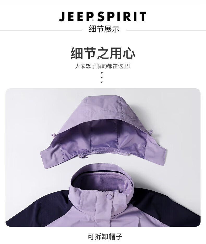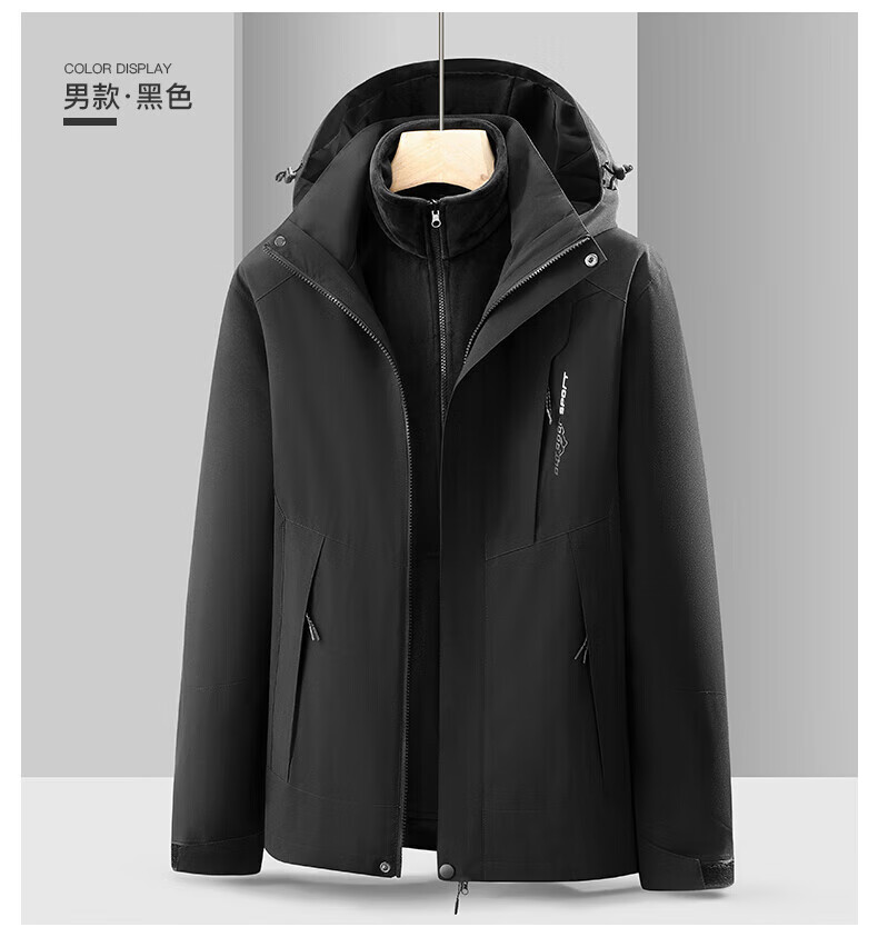 JEEP SPIRIT吉普 冲锋衣外套夹克三合一两件套登山服防寒舒适登山服 ZT1818 男款黑色 XL