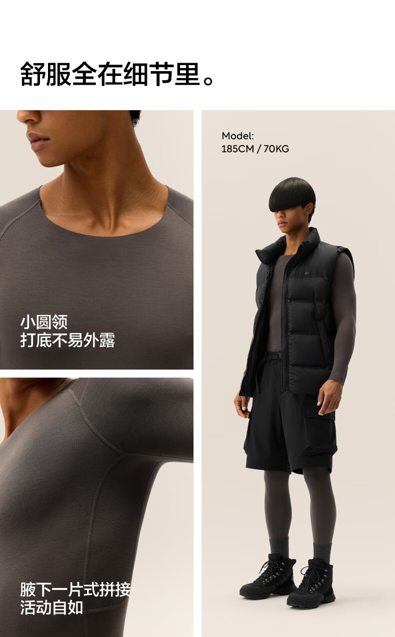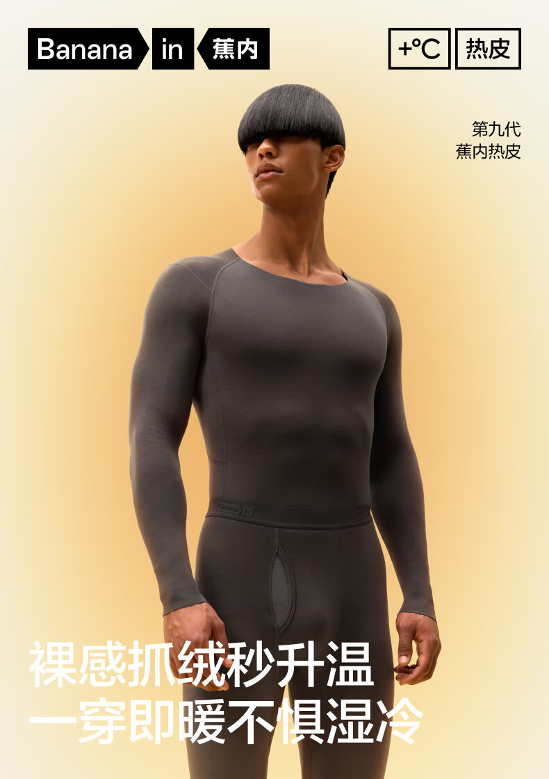 蕉内热皮502++男士保暖上衣秋冬季加绒加厚秋衣打底衫7A抗菌保暖内衣 黑色 L