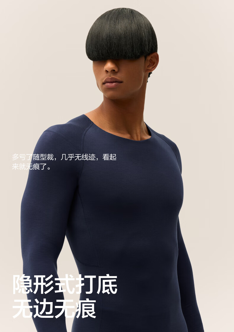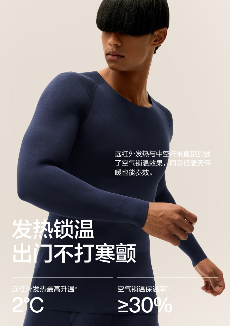 红豆内衣男7A抑菌升级秋衣秋裤纯棉套装圆领薄款打底保暖内衣