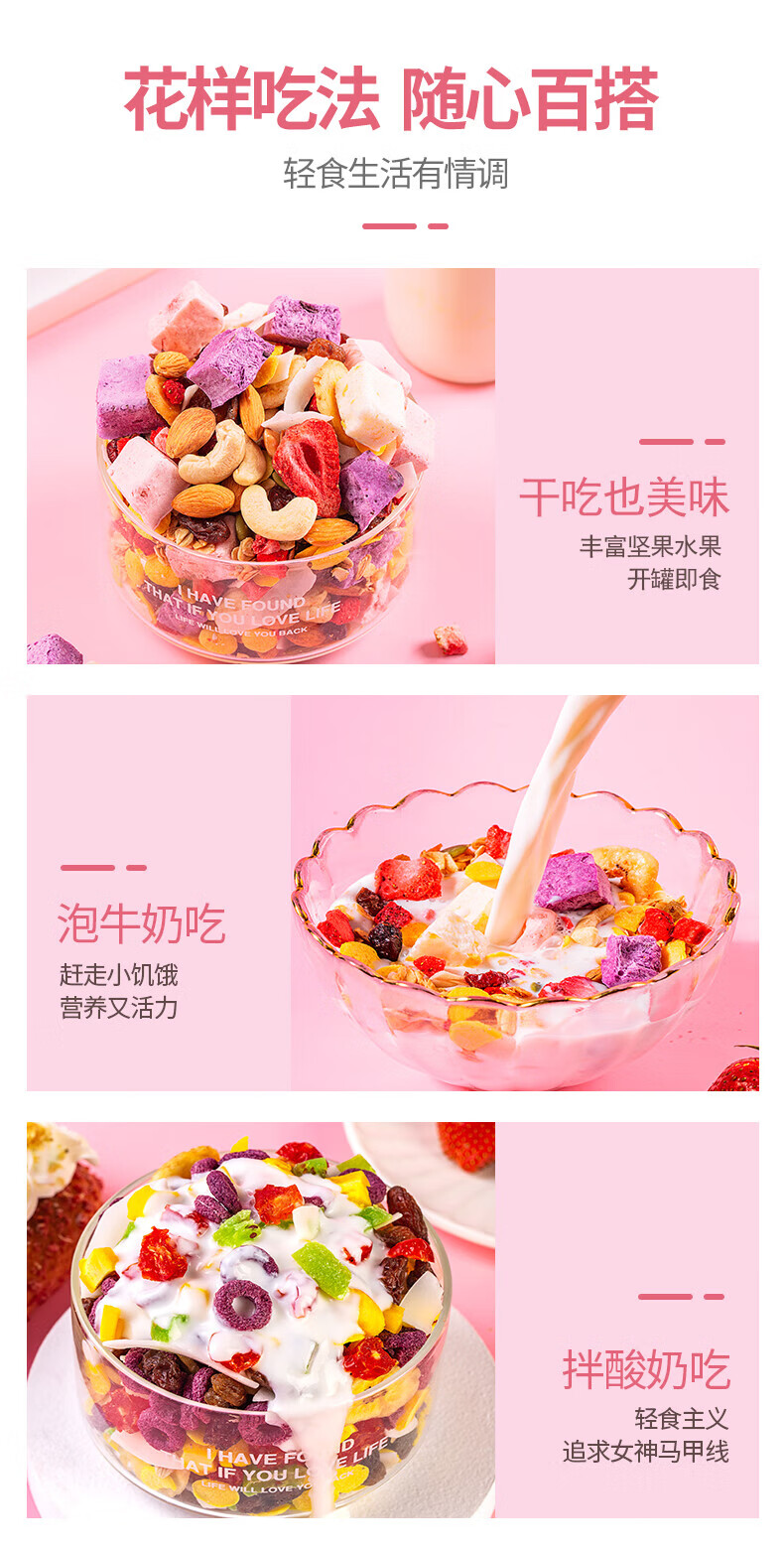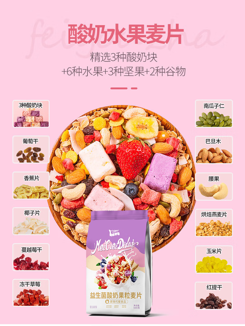 美味地带益生菌水果麦片早餐冲泡即食速食拌酸奶上班族代餐饱腹食品500g