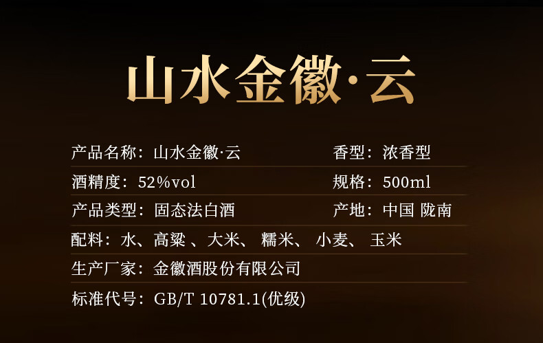金徽 山水金徽·云 浓香型白酒 52度 500ml 单瓶装