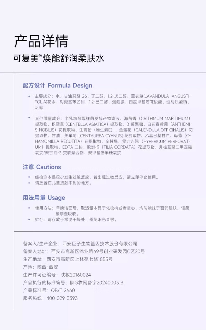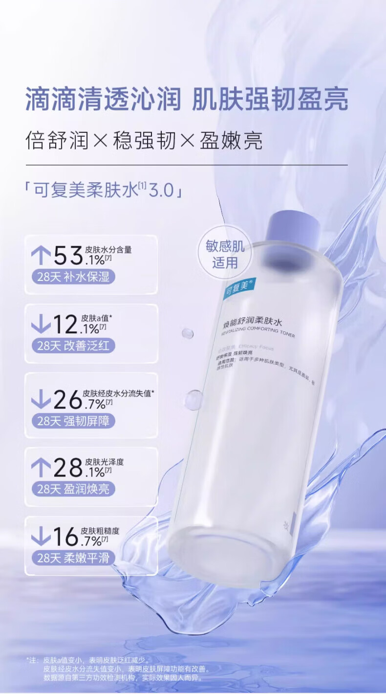 可复美 安心湿敷水补水保湿修护舒缓敏感肌湿润柔肤水爽肤水500ml礼物 可复美安心柔肤水500ml