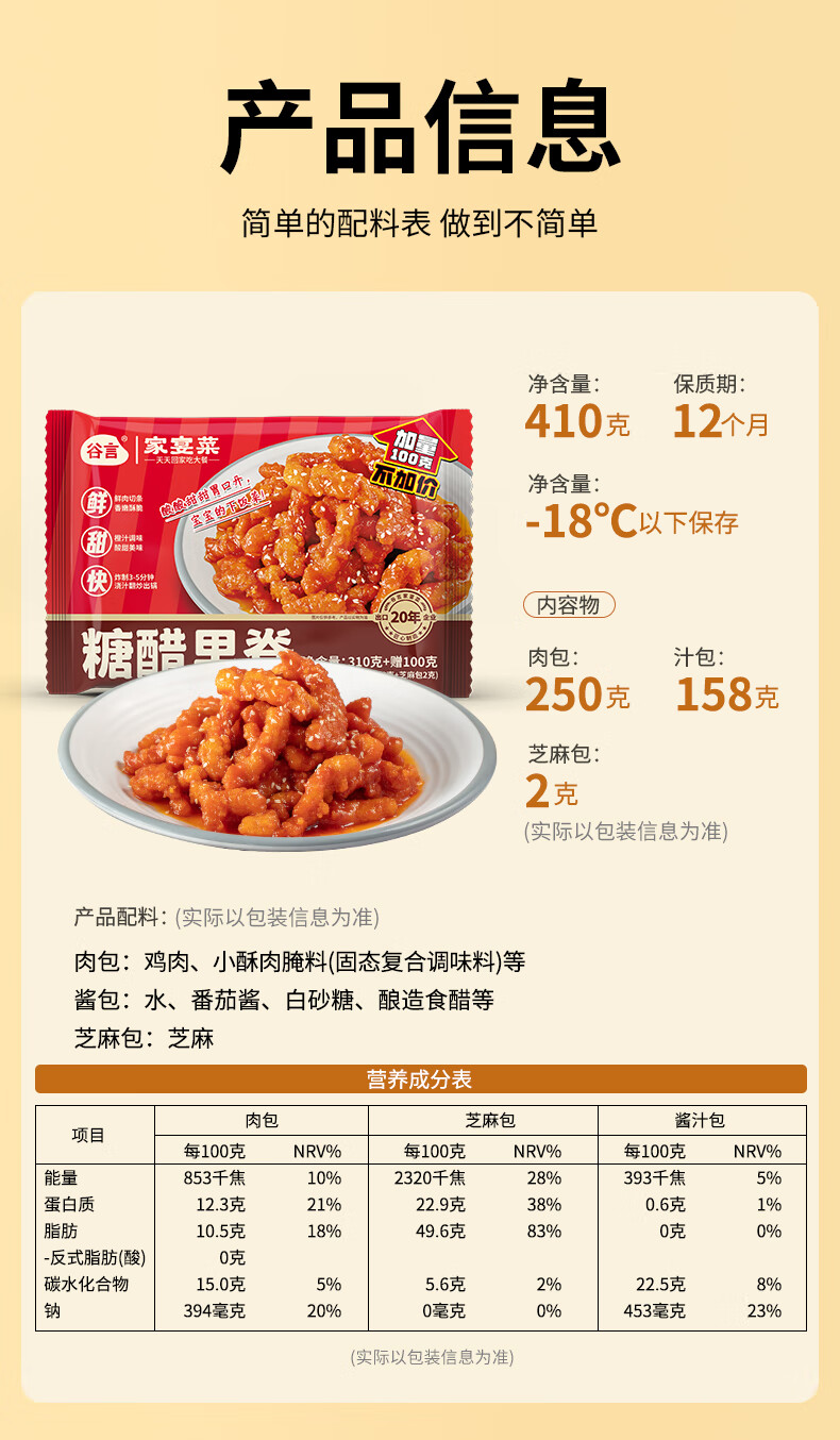 谷言糖醋里脊410g预制菜 半成品菜 速食方便菜 快手菜