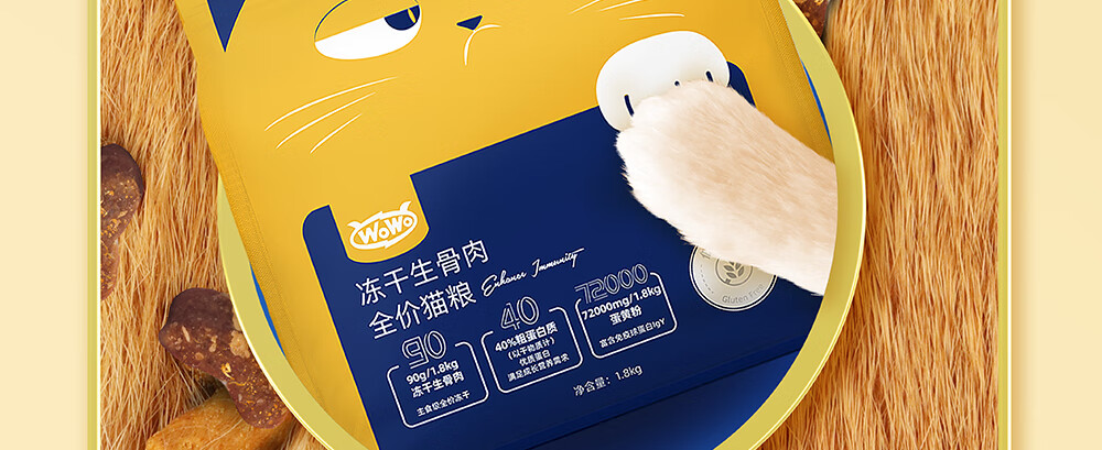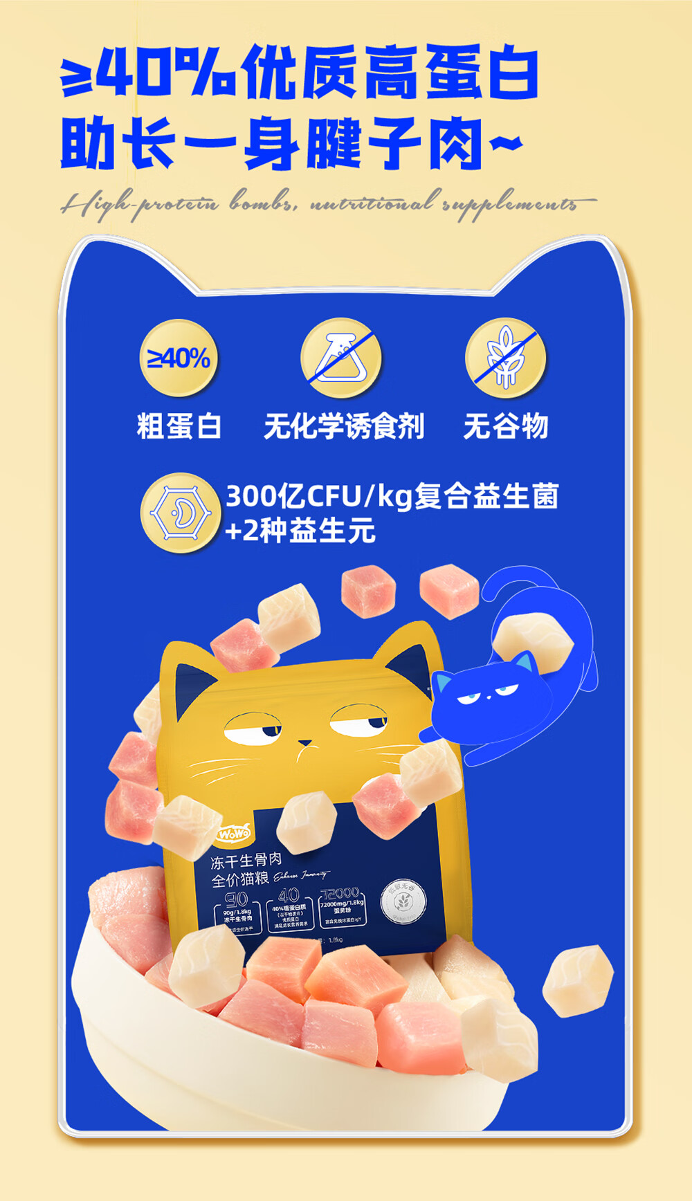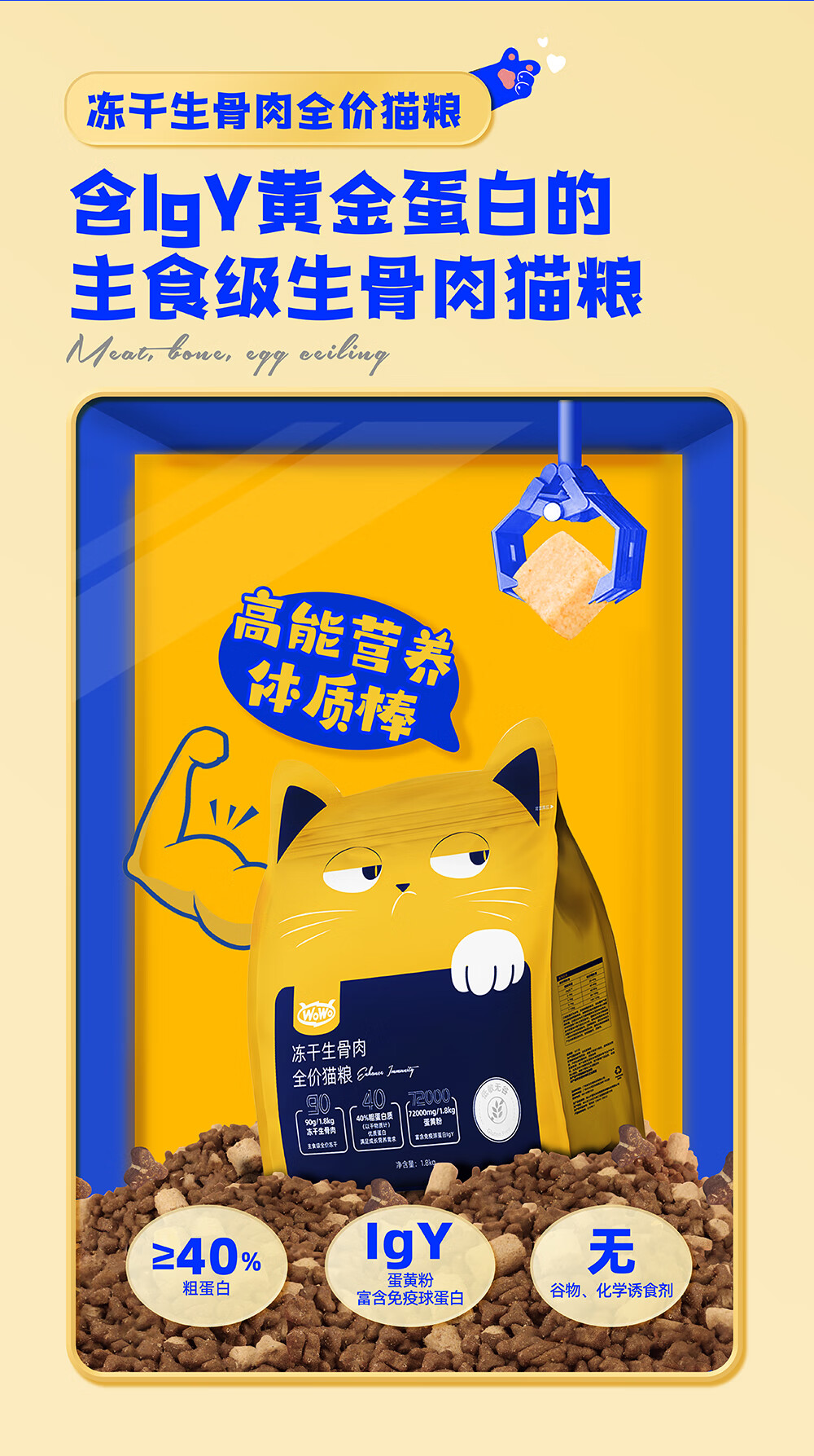 WOWO喔喔猫粮 igy冻干生骨肉双拼全价猫干粮 成猫幼猫全期猫粮1.8kg