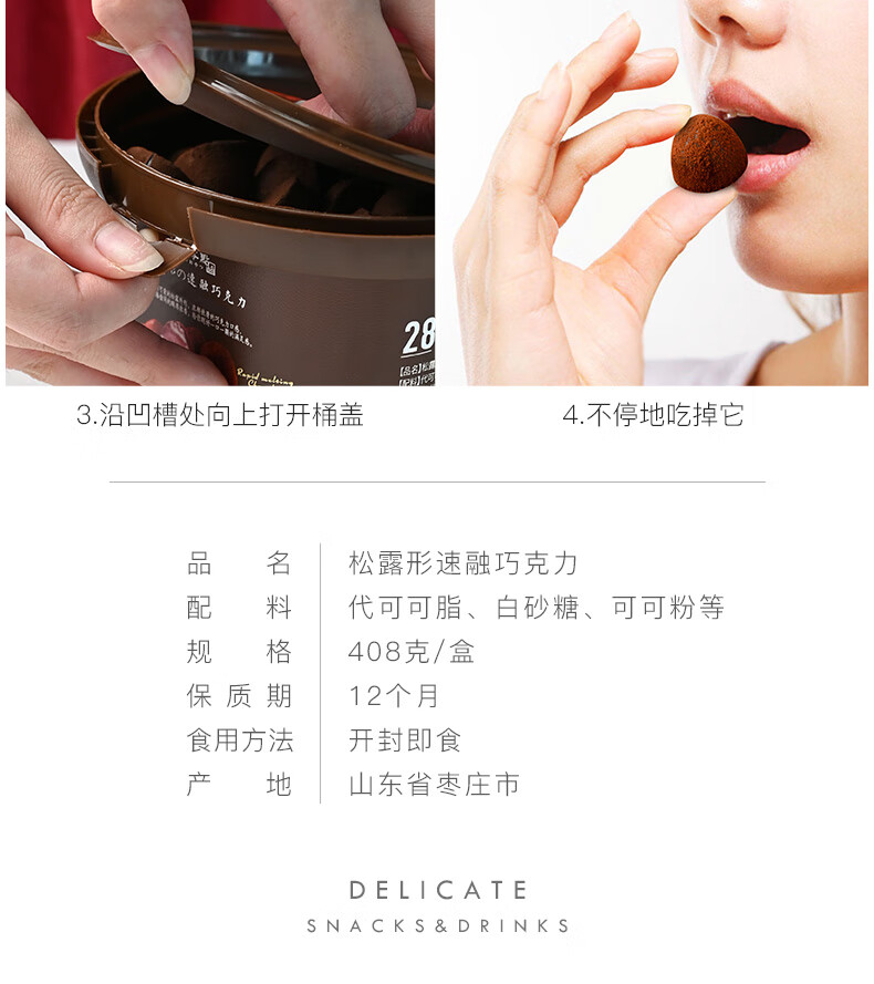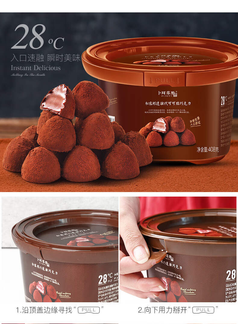 卜珂零点 松露速溶巧克力408g 休闲零食食品 中秋节礼物(桶装)生日礼物