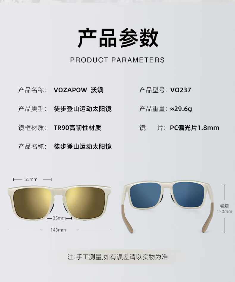 VOZAPOW沃飒徒步登山眼镜偏光炫彩护目镜爬山钓鱼户外运动太阳镜男女墨镜