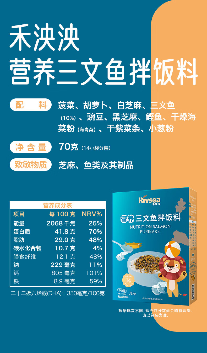 禾泱泱儿童拌饭料 高钙高蛋白 拌面条拌米粉 吃法多样辅食搭档 3阶高钙高铁三文鱼拌饭料