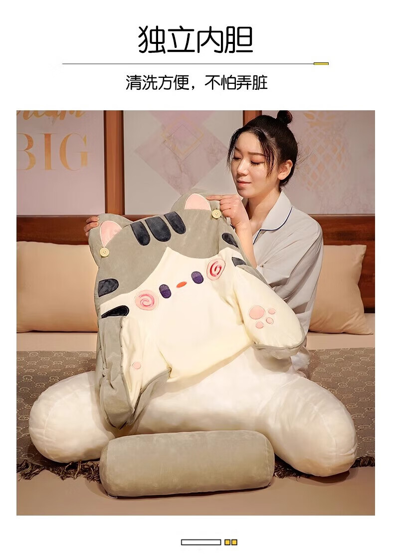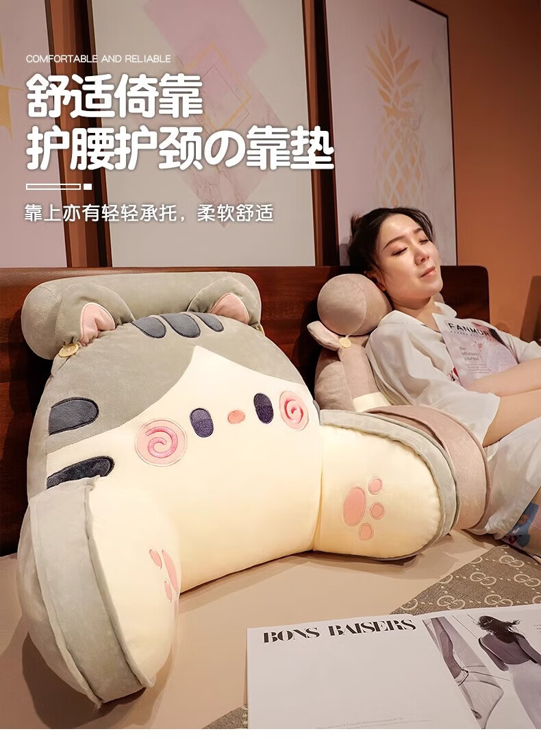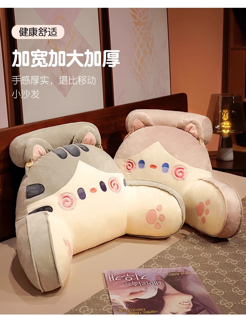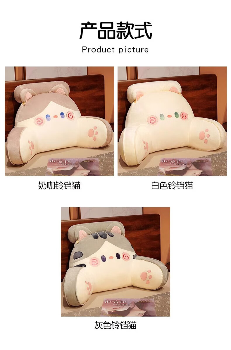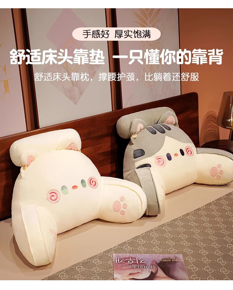 DEATKN德国床头软包大靠背床上儿童床靠枕看书护腰靠垫沙发抱枕宿舍 灰色铃铛猫 含枕芯 60cm*45cm*1cm[椅子]中号