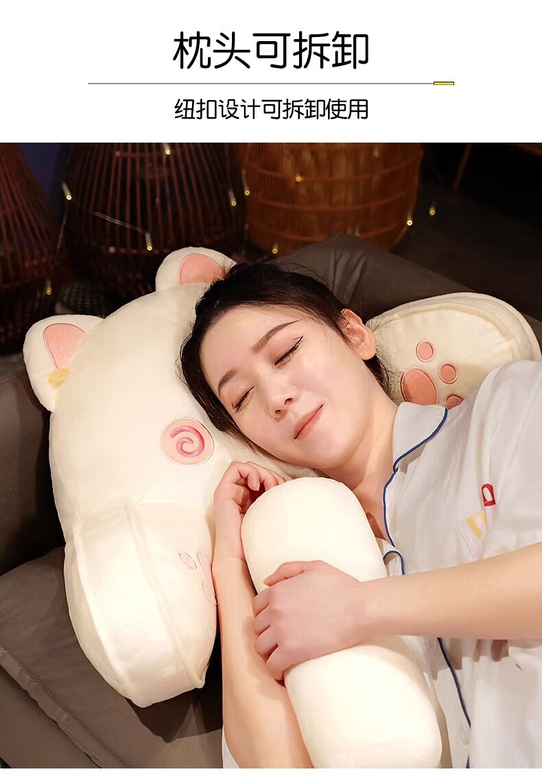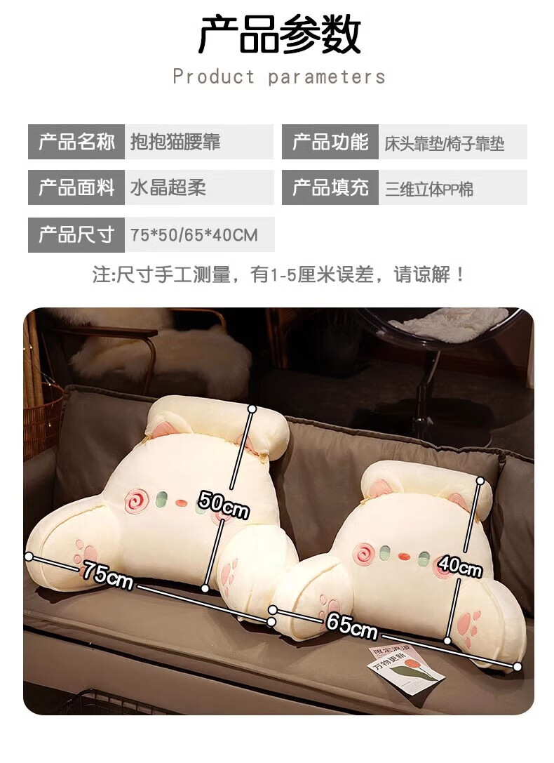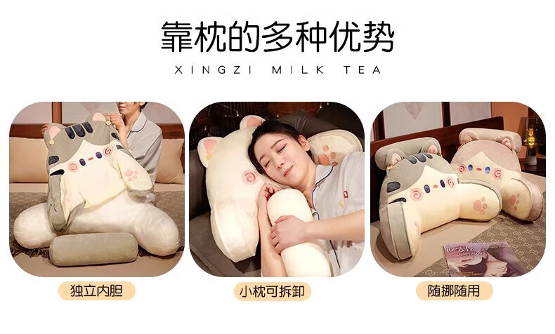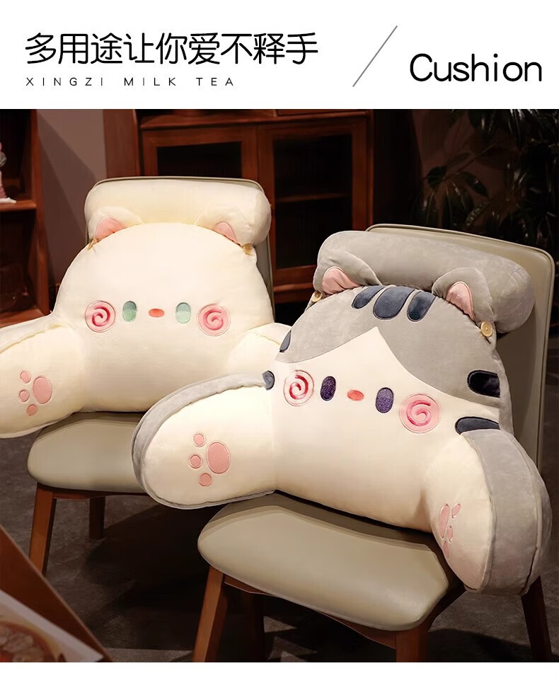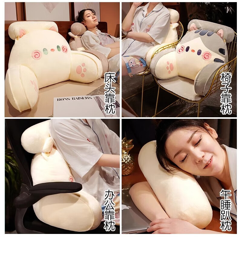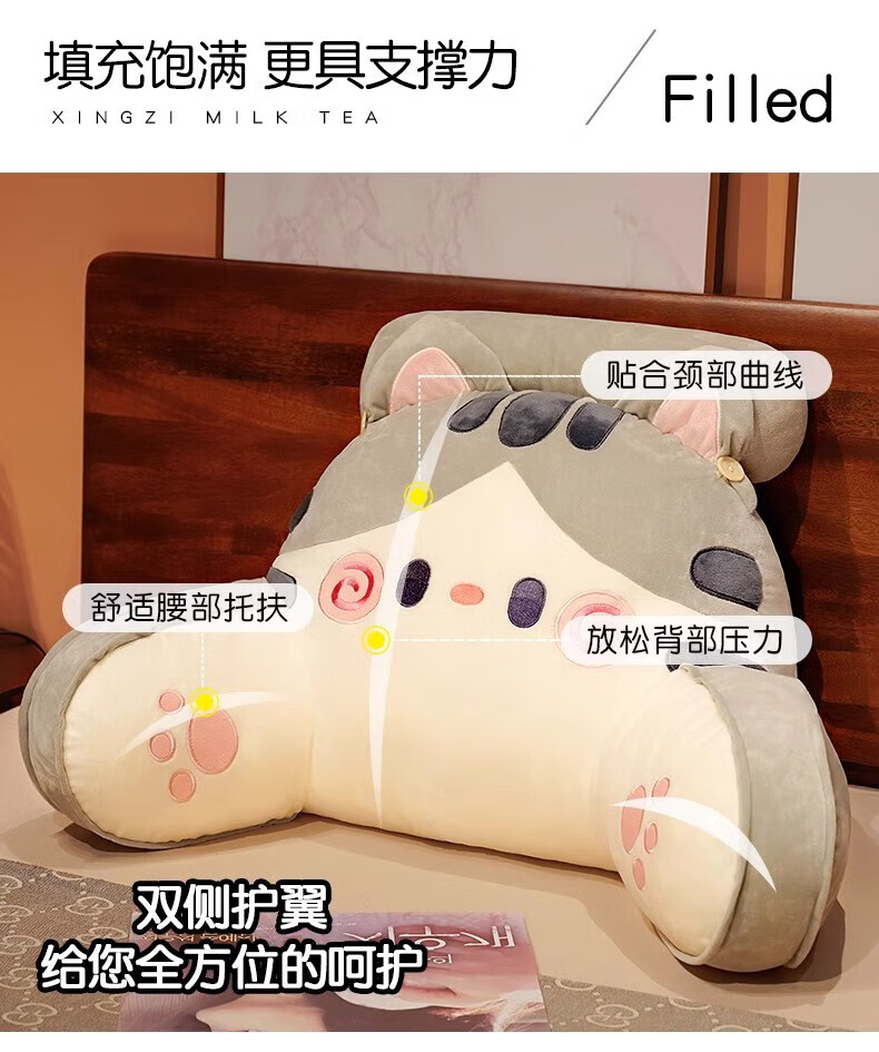 DEATKN德国床头软包大靠背床上儿童床靠枕看书护腰靠垫沙发抱枕宿舍 灰色铃铛猫 含枕芯 60cm*45cm*1cm[椅子]中号