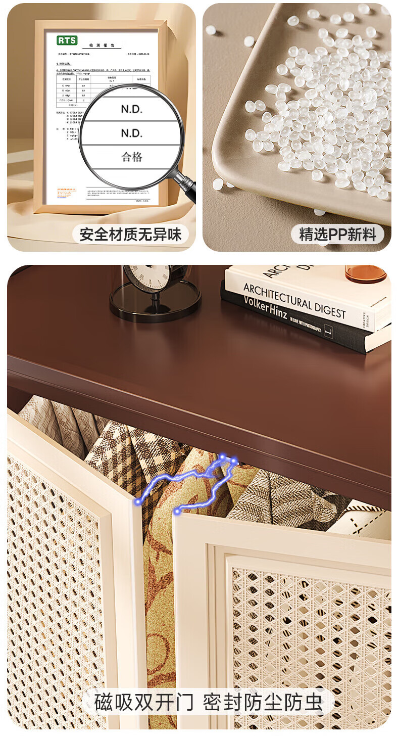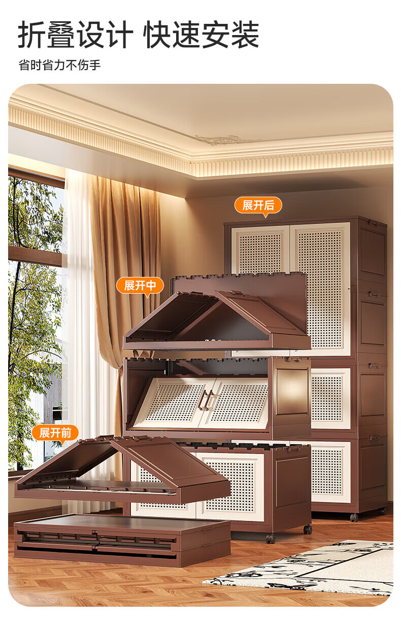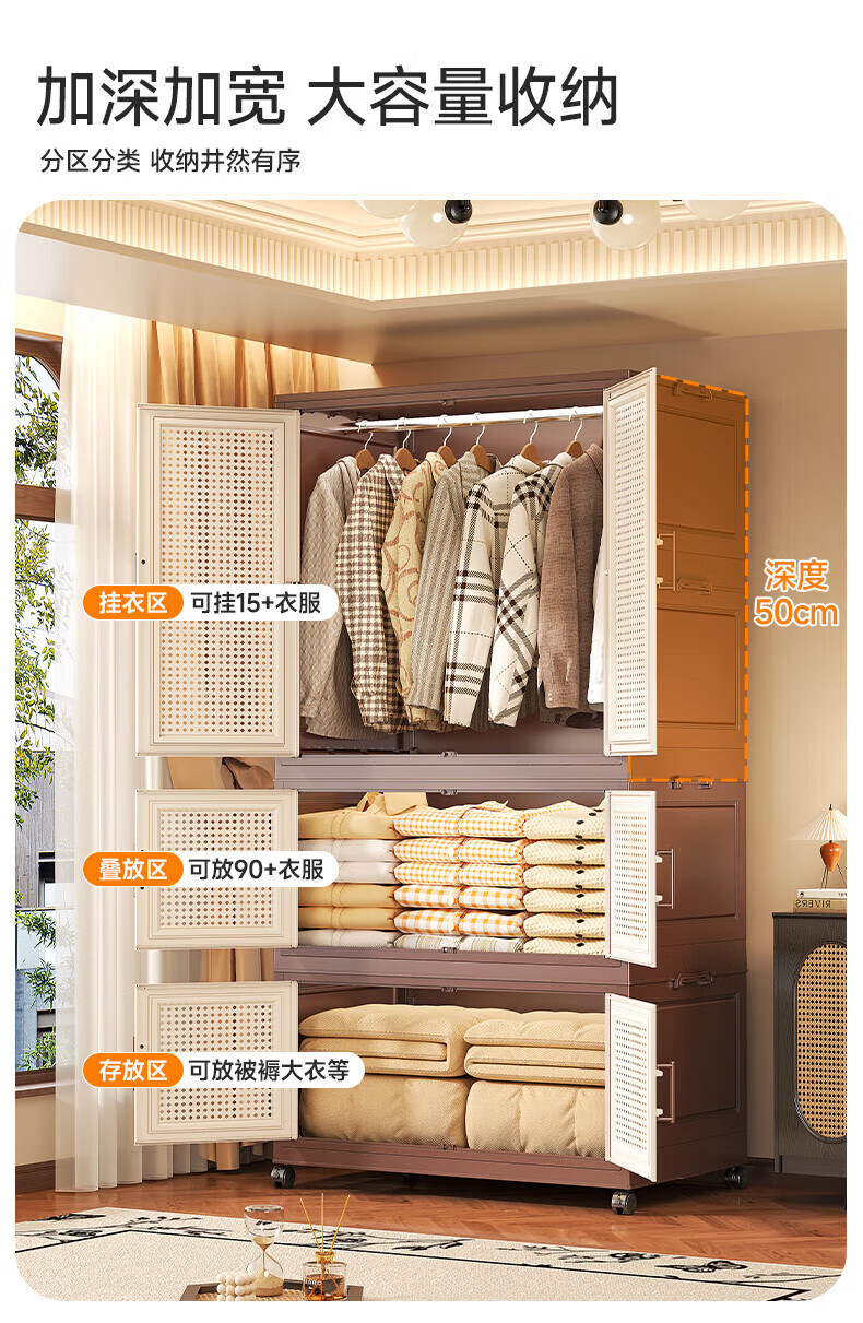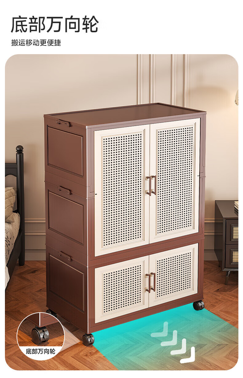 纳份爱【德邦入户】衣服收纳箱翻盖大容量被子整理箱换季储物柜收纳神器 奶油透55cm面宽【双开门/可折叠/送轮子】