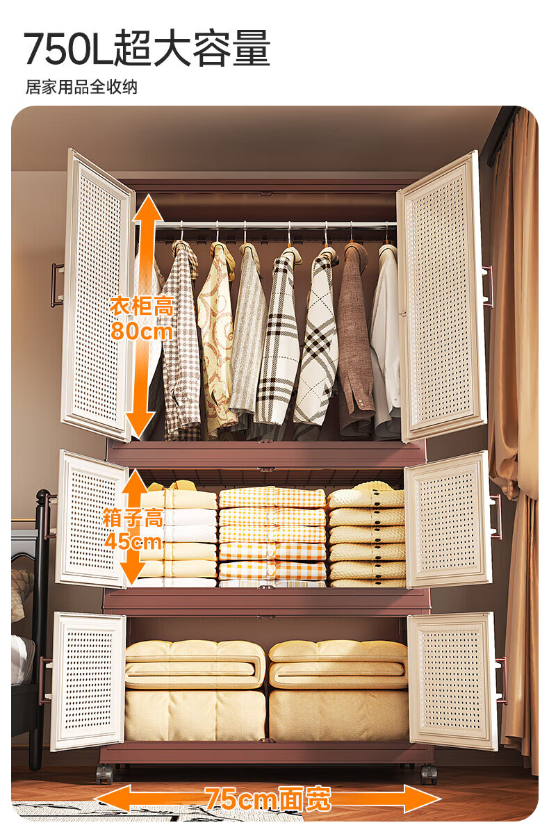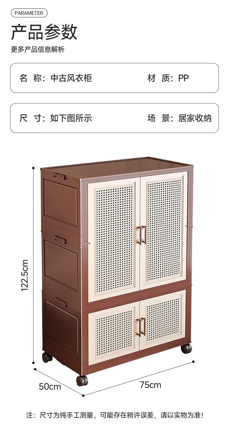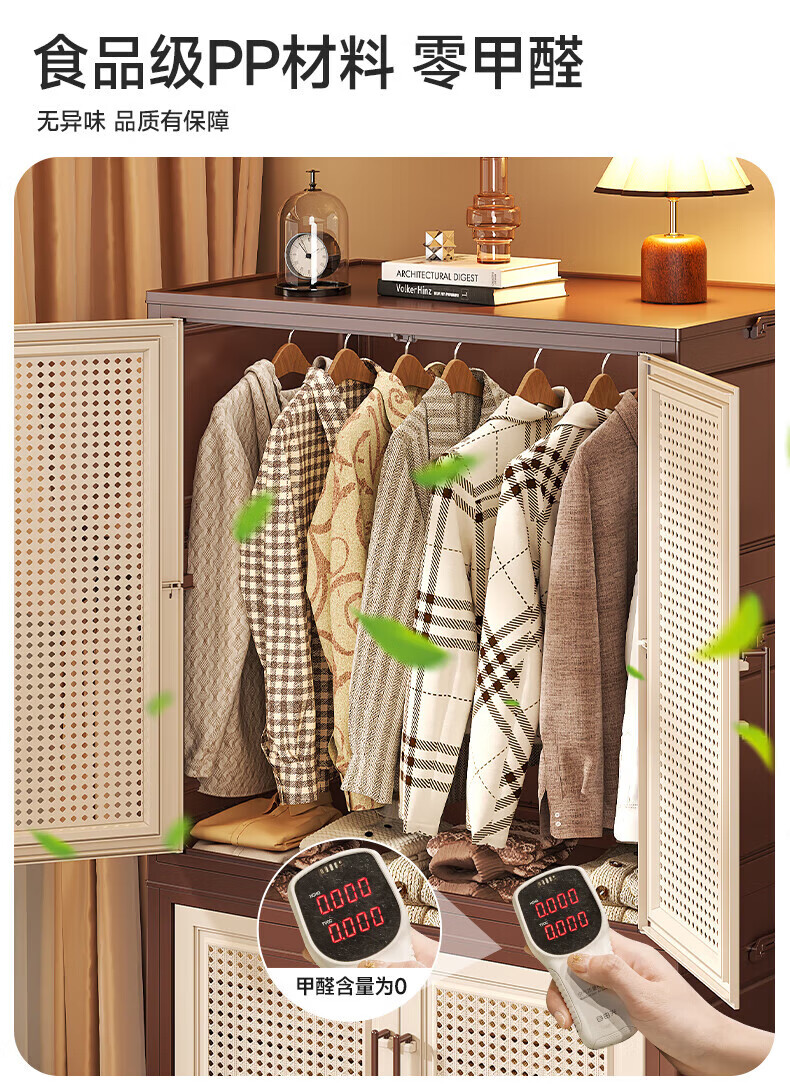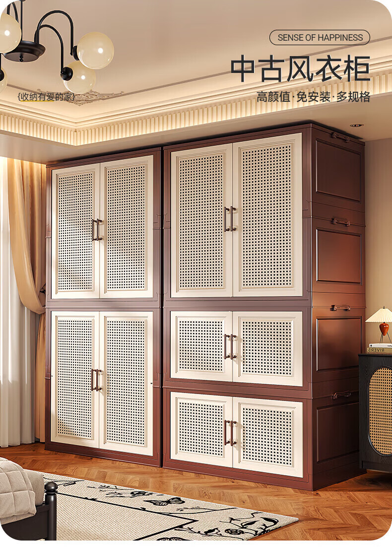 babyview中古风简易衣柜家用卧室衣服储物柜加深免安装成人衣物收纳柜 65面宽【1衣柜+10个衣架】