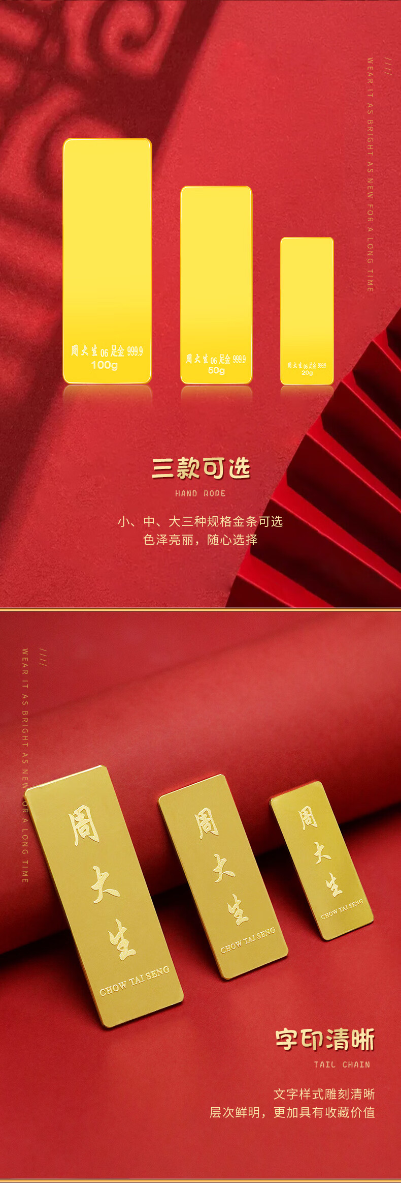 周大生足金Au999.9黄金金条投资金收藏送礼20g 50g 100g 投资金条-【绒布袋包装,不配礼盒】 20g-【不支持退换货】