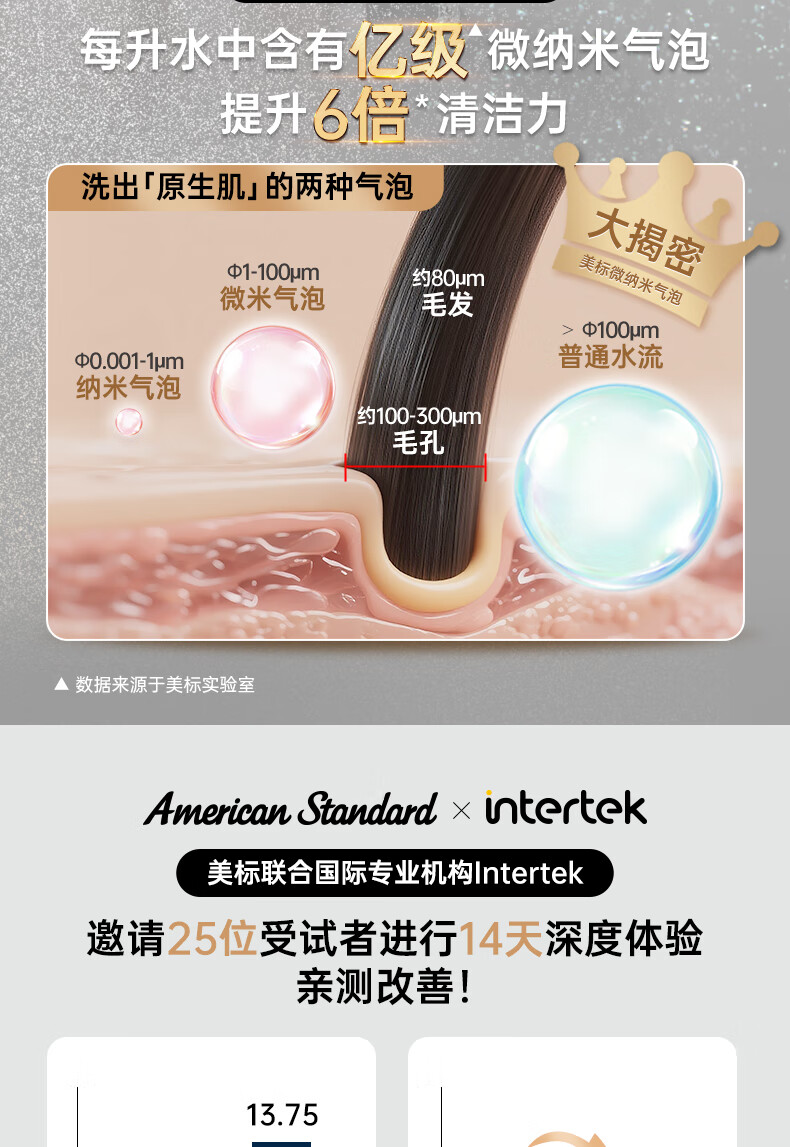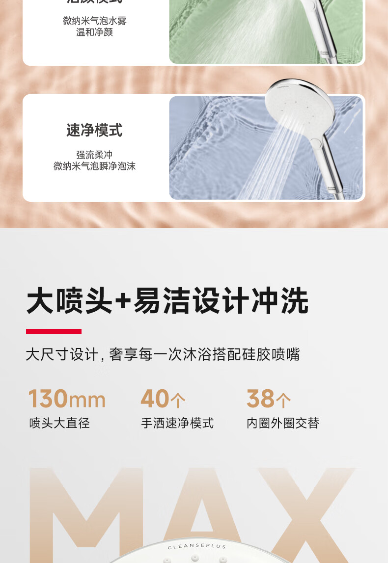 美标沁颜净爽美肤美颜花洒清洁皮肤微气泡手持花洒130mm多功能淋浴头