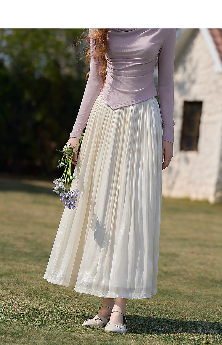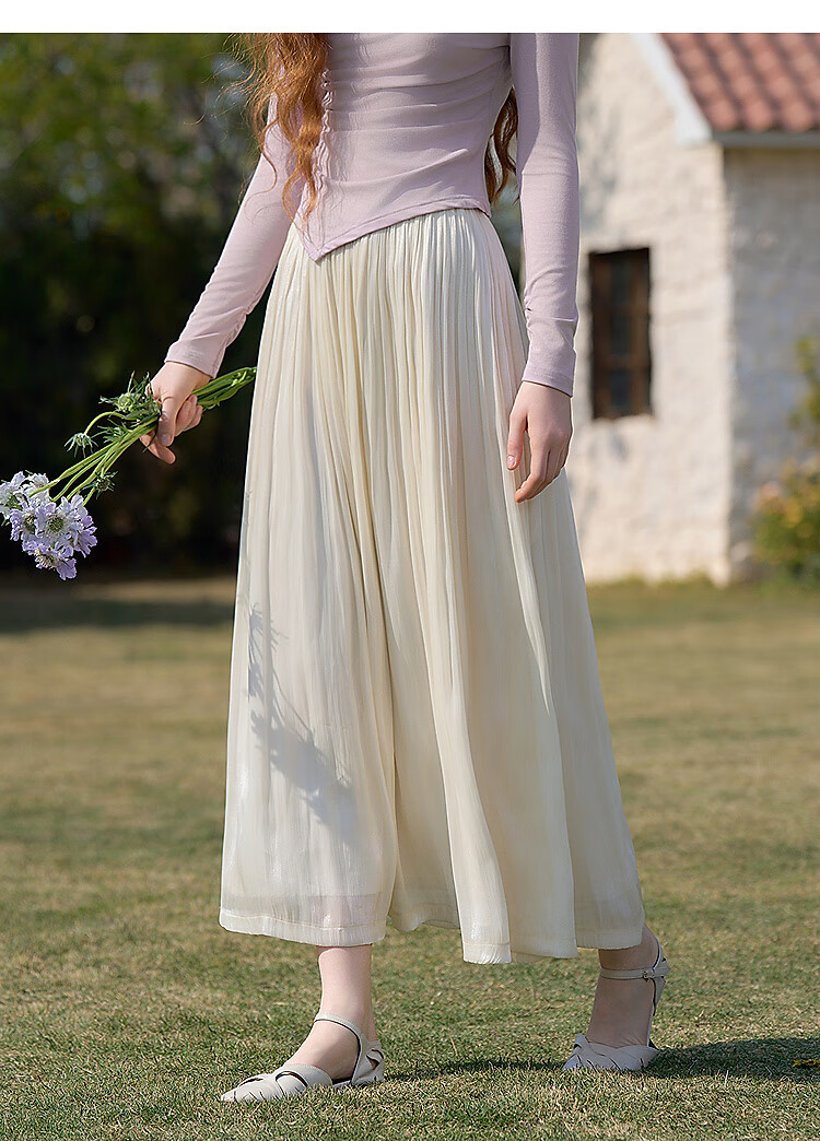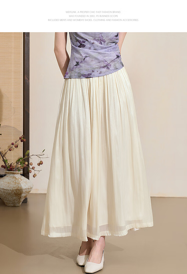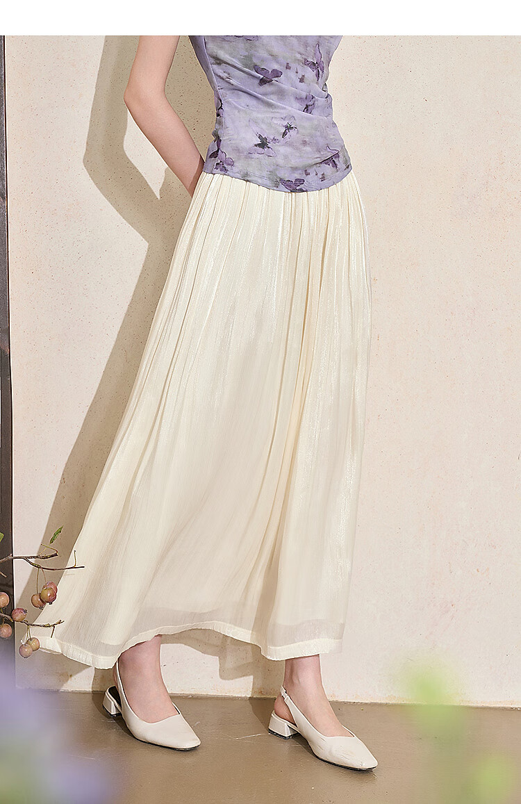 西遇新中式流光纱绸大裙摆轻熟半身裙女夏季高腰垂感纱裙半裙 杏色 S
