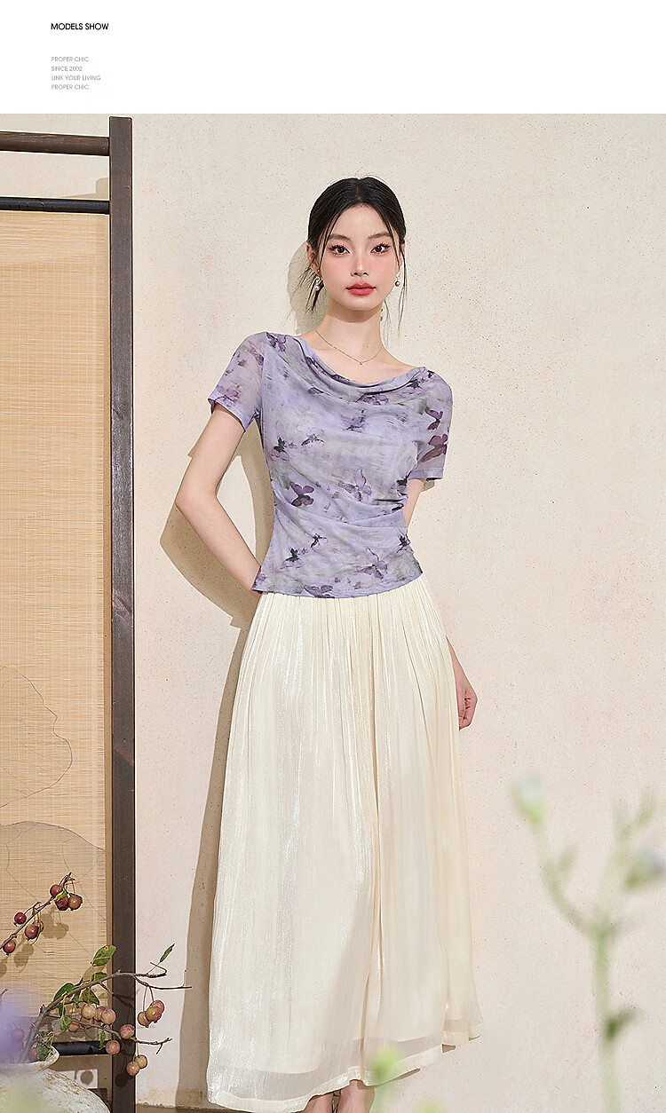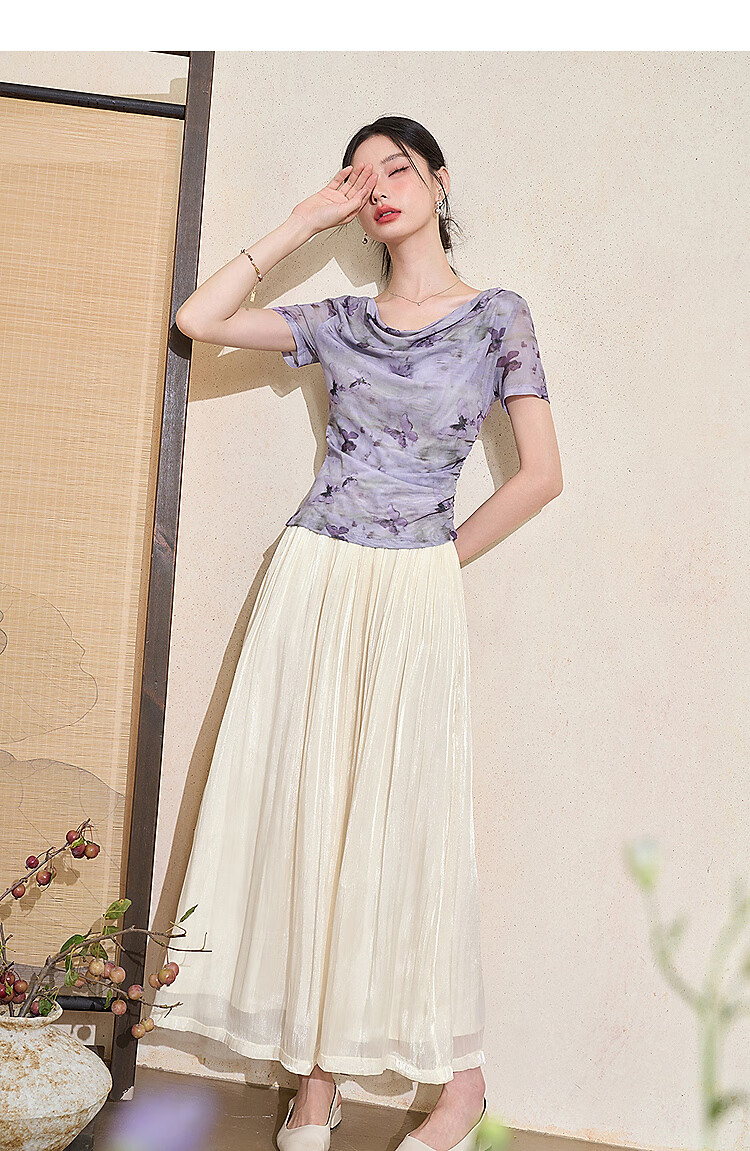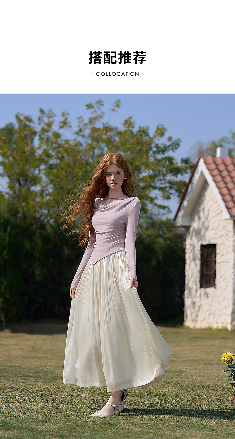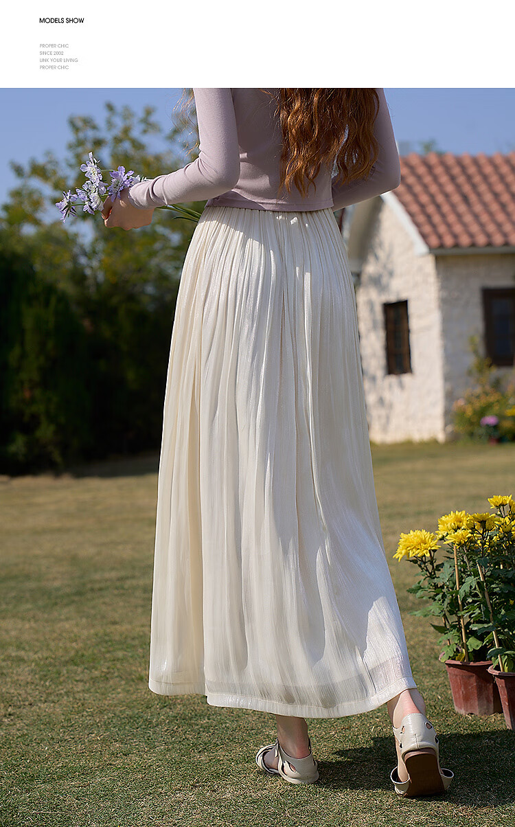 西遇新中式流光纱绸大裙摆轻熟半身裙女夏季高腰垂感纱裙半裙 杏色 S