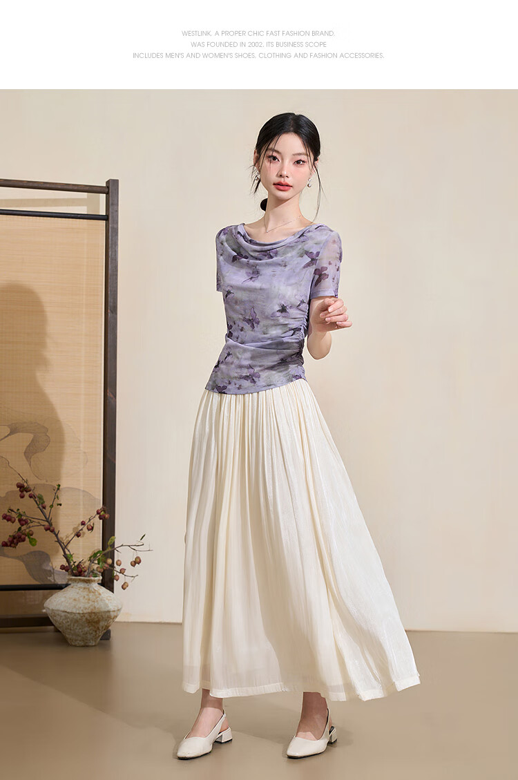 西遇(Westlink)老钱风简约气质文艺套装女2025夏季圆领马甲搭半裙两件套 杏色 XL (170)