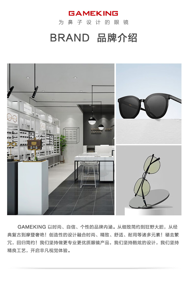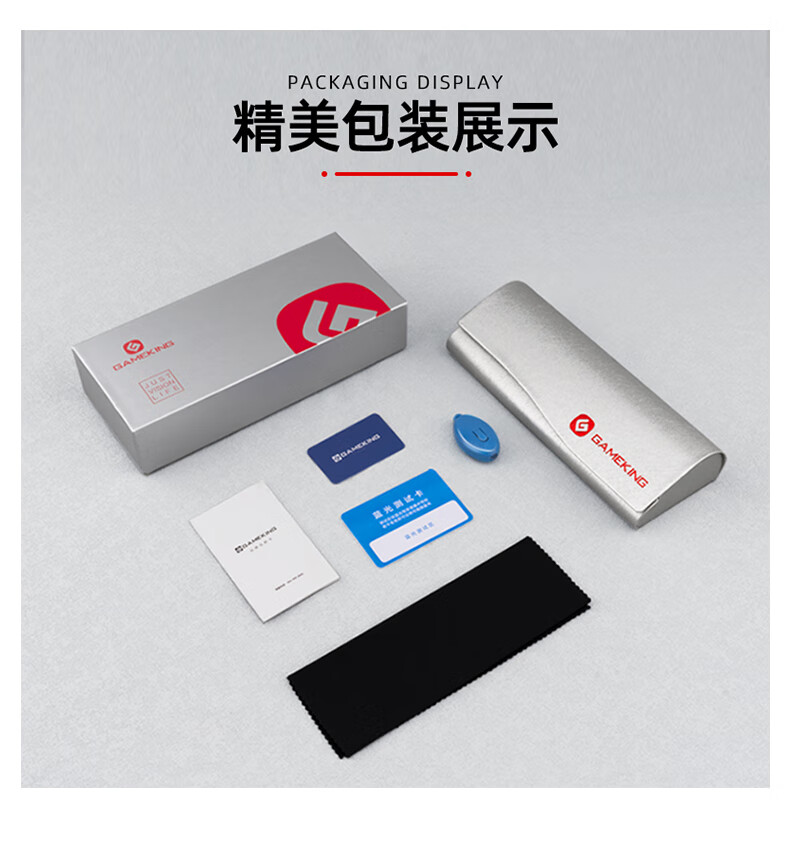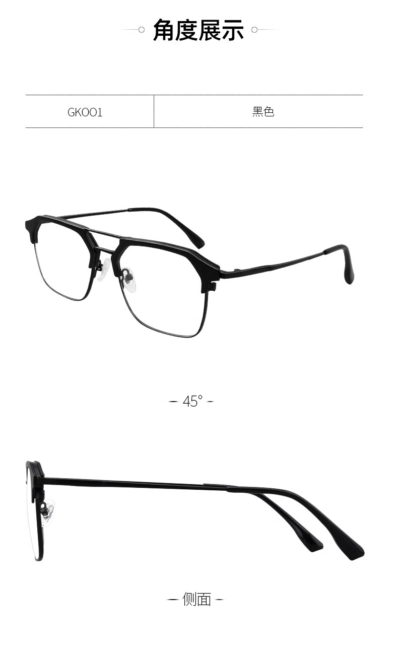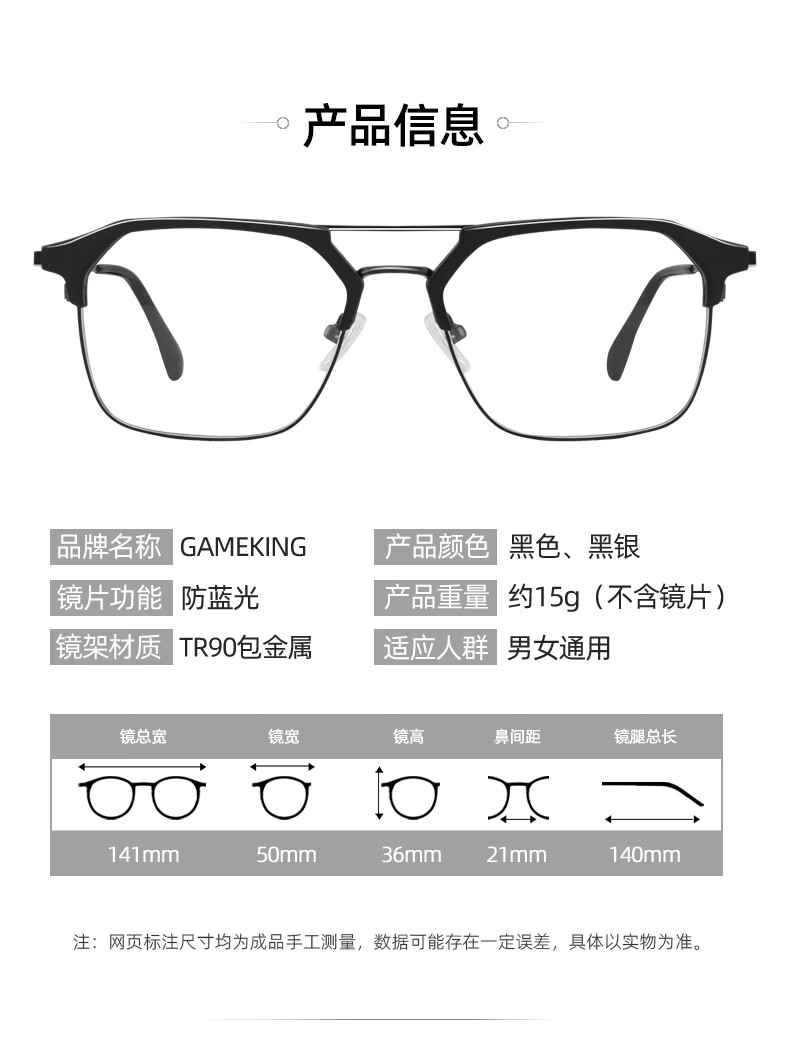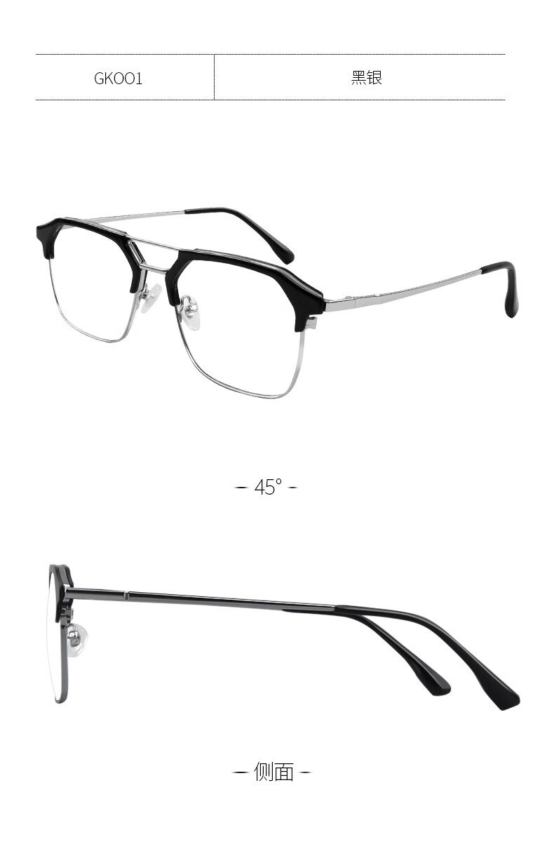 Gameking近视眼镜男女防蓝光眼镜防辐射配镜眼镜框架钛GK001 黑银