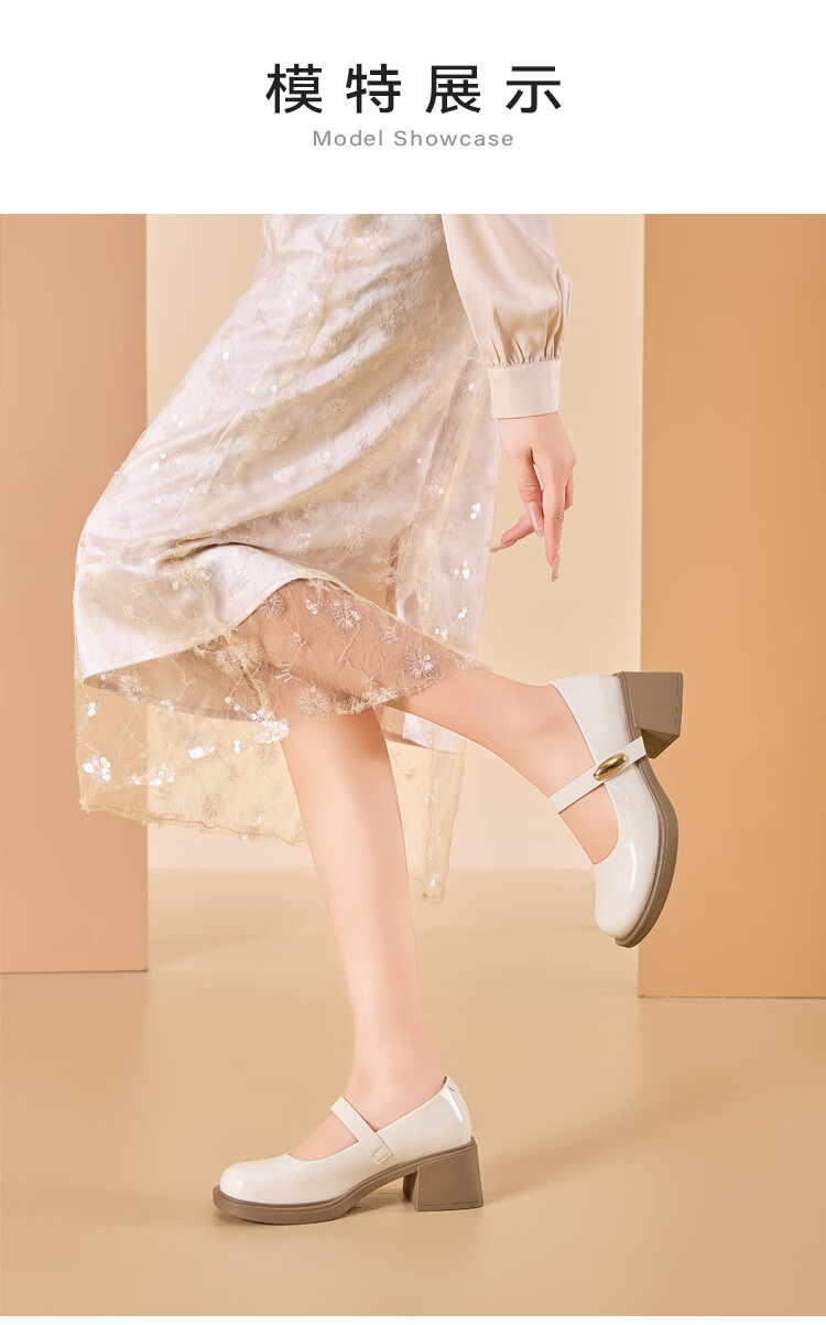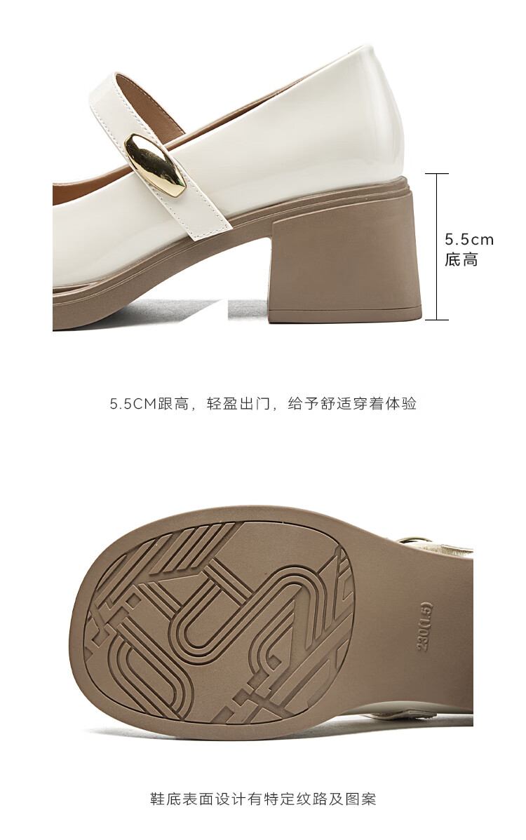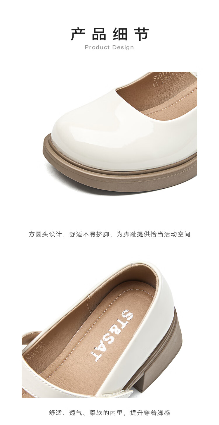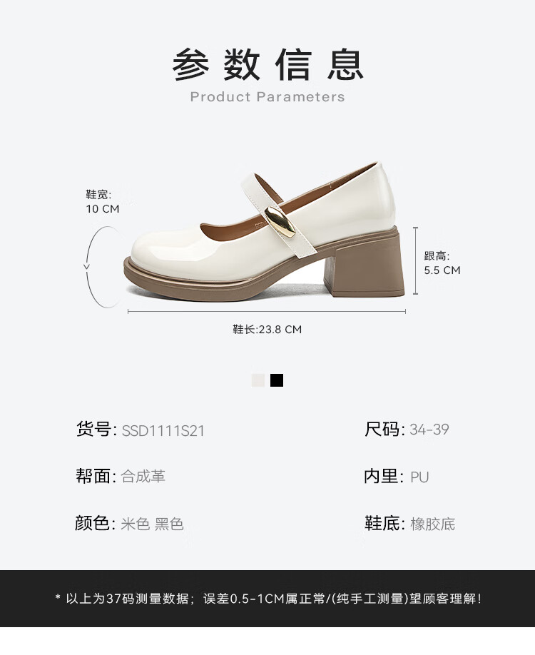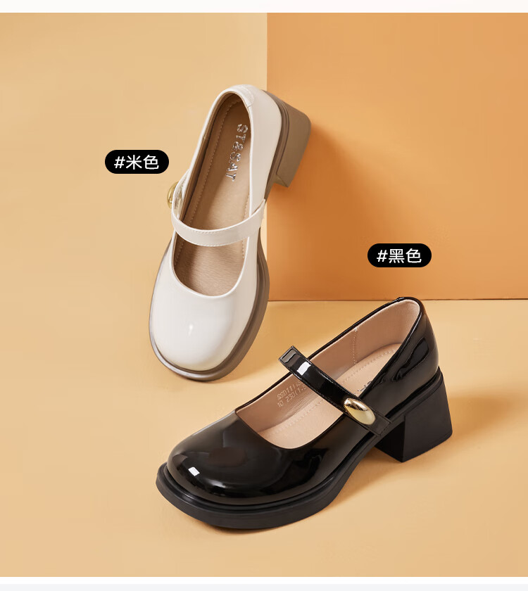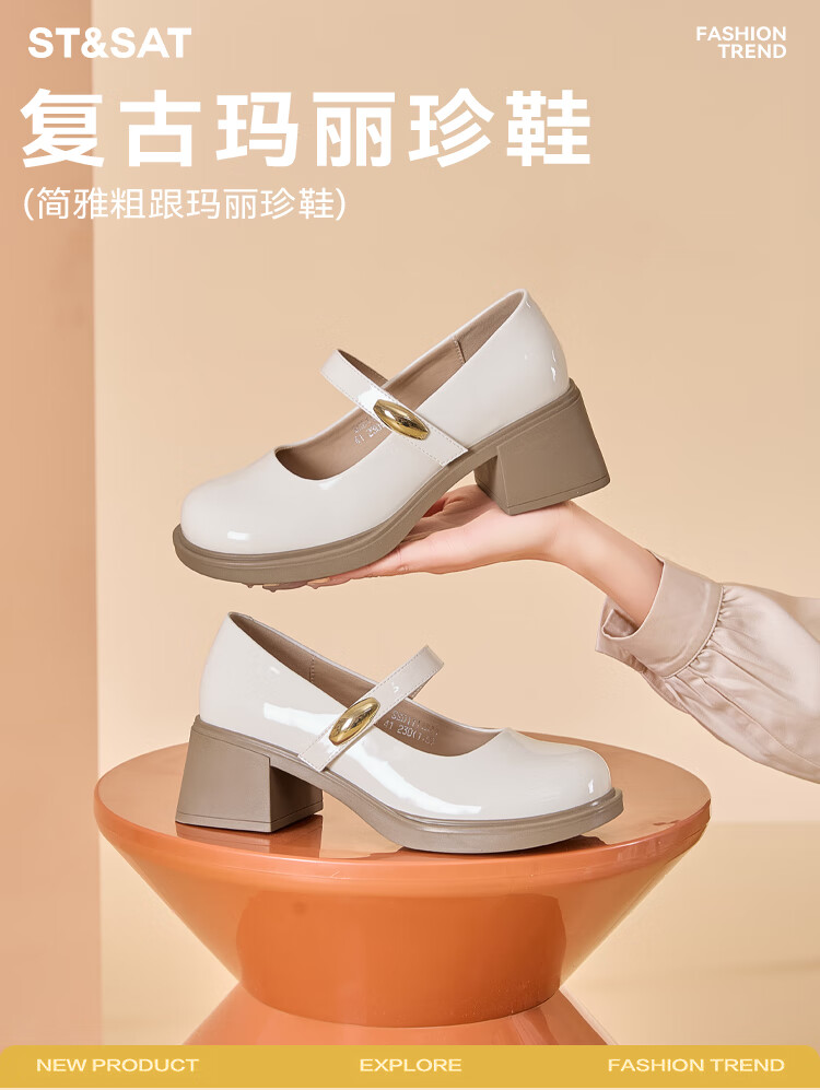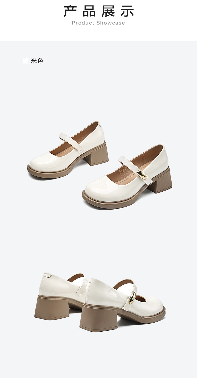 星期六女鞋2025春季新款粗跟浅口单鞋休闲通勤玛丽珍鞋DKSSD1111S21 米色 34