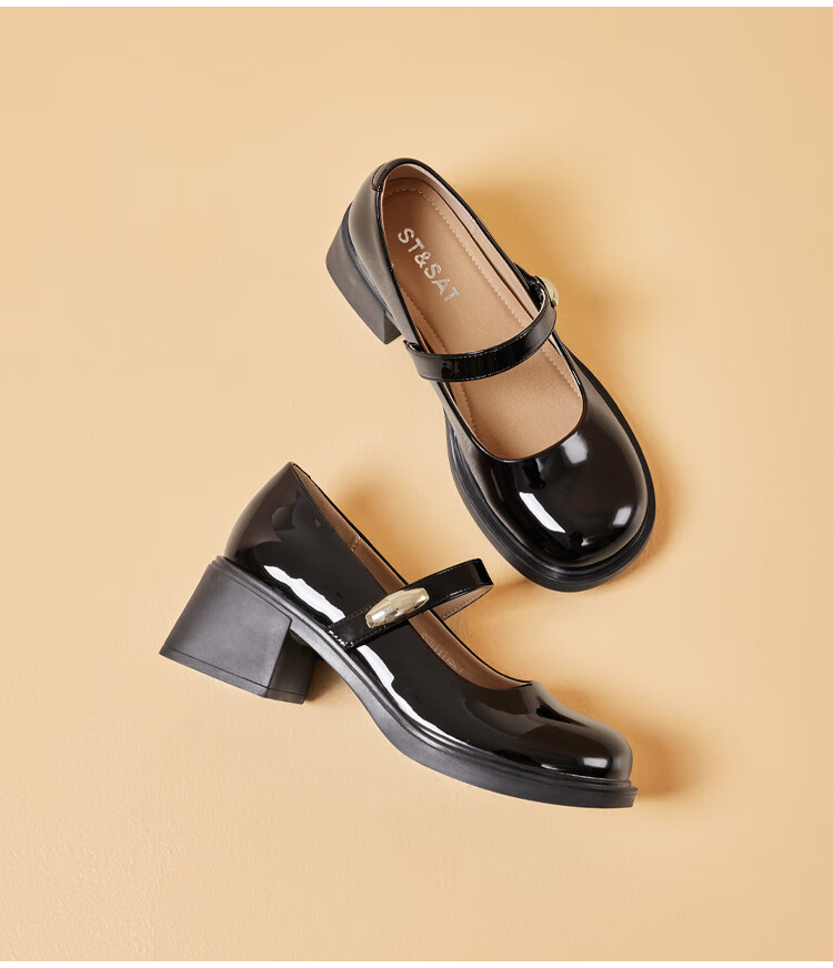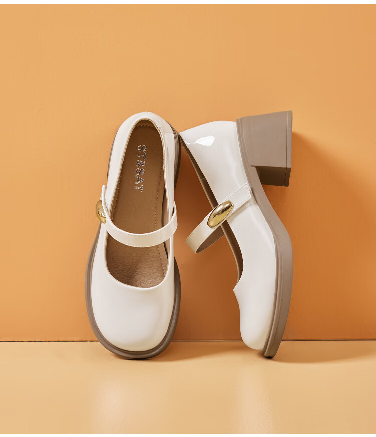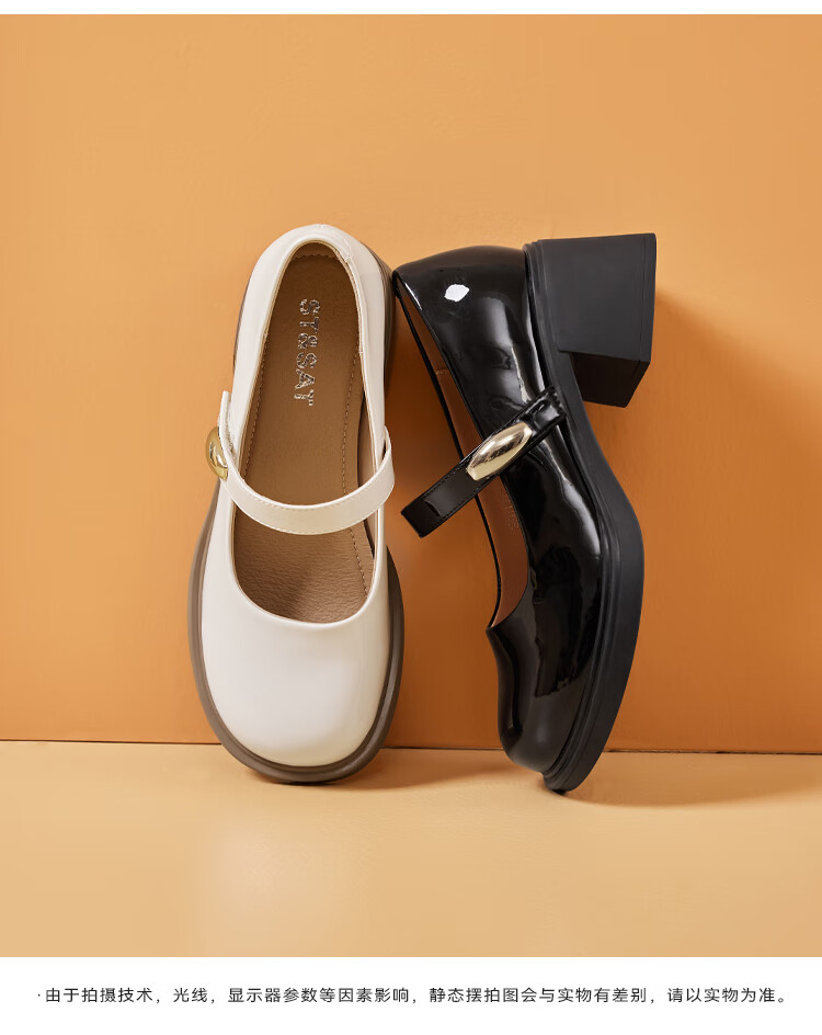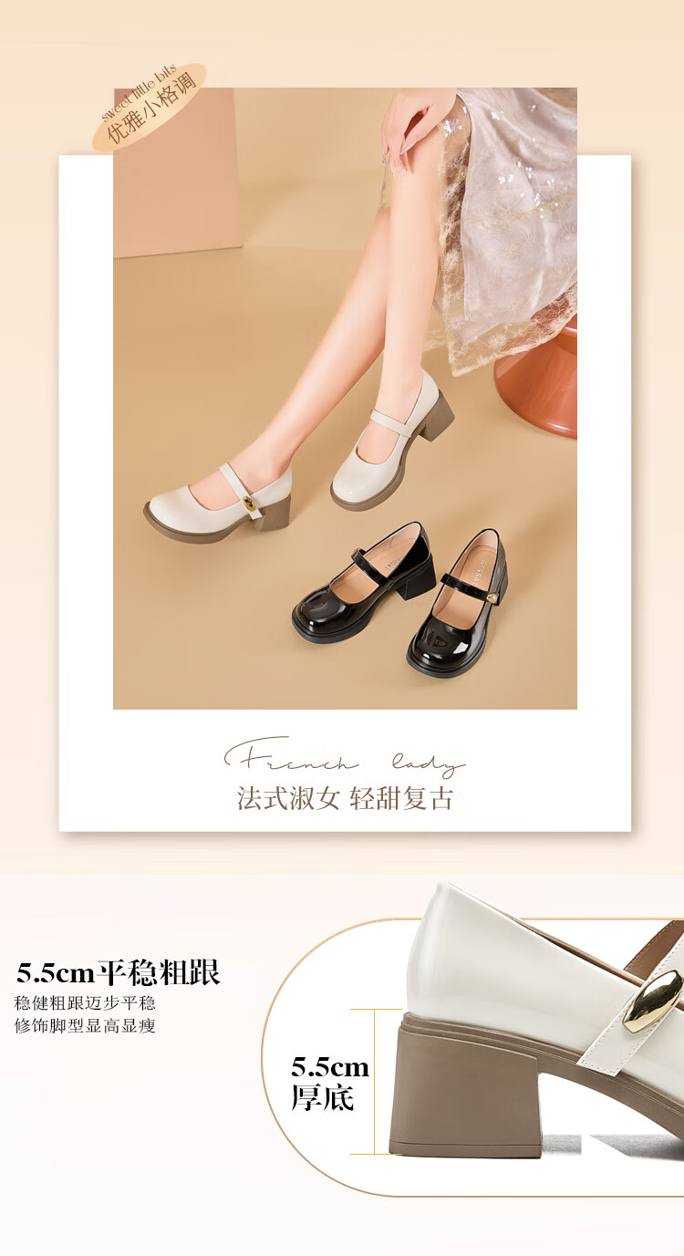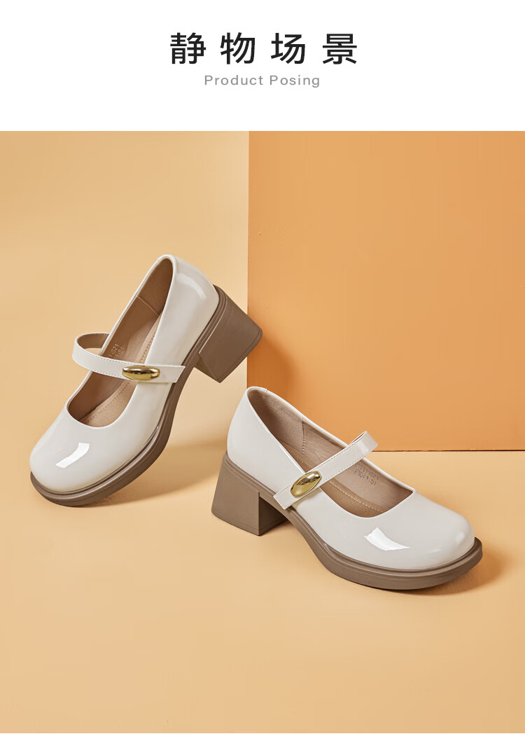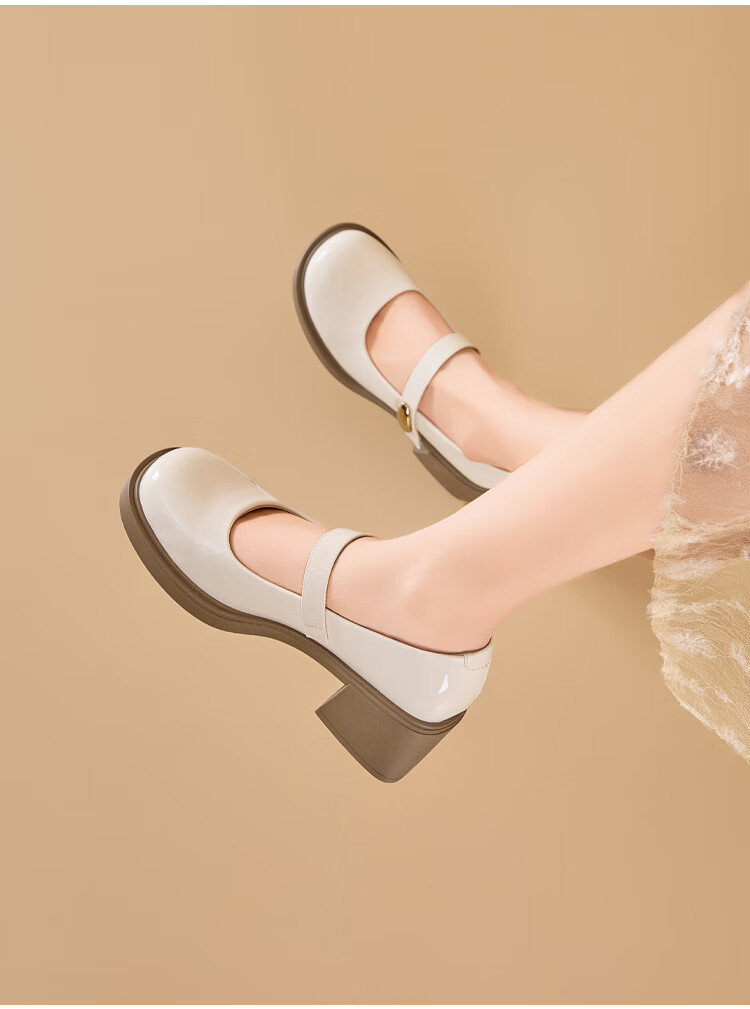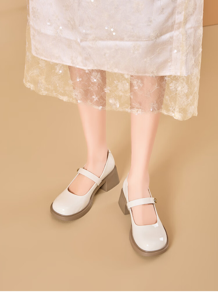星期六女鞋2025春季新款粗跟浅口单鞋休闲通勤玛丽珍鞋DKSSD1111S21 米色 34