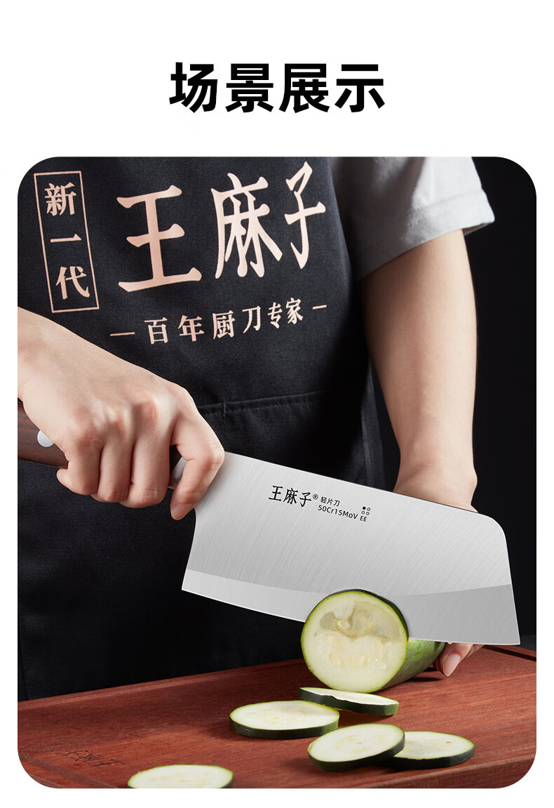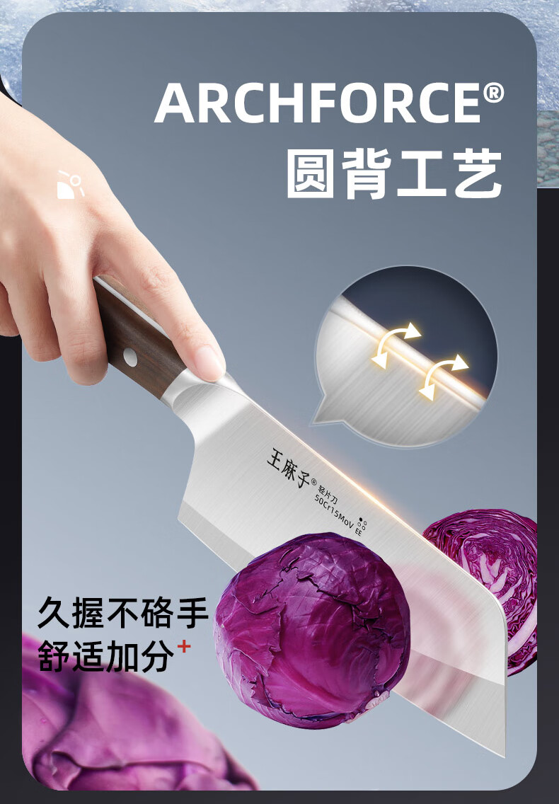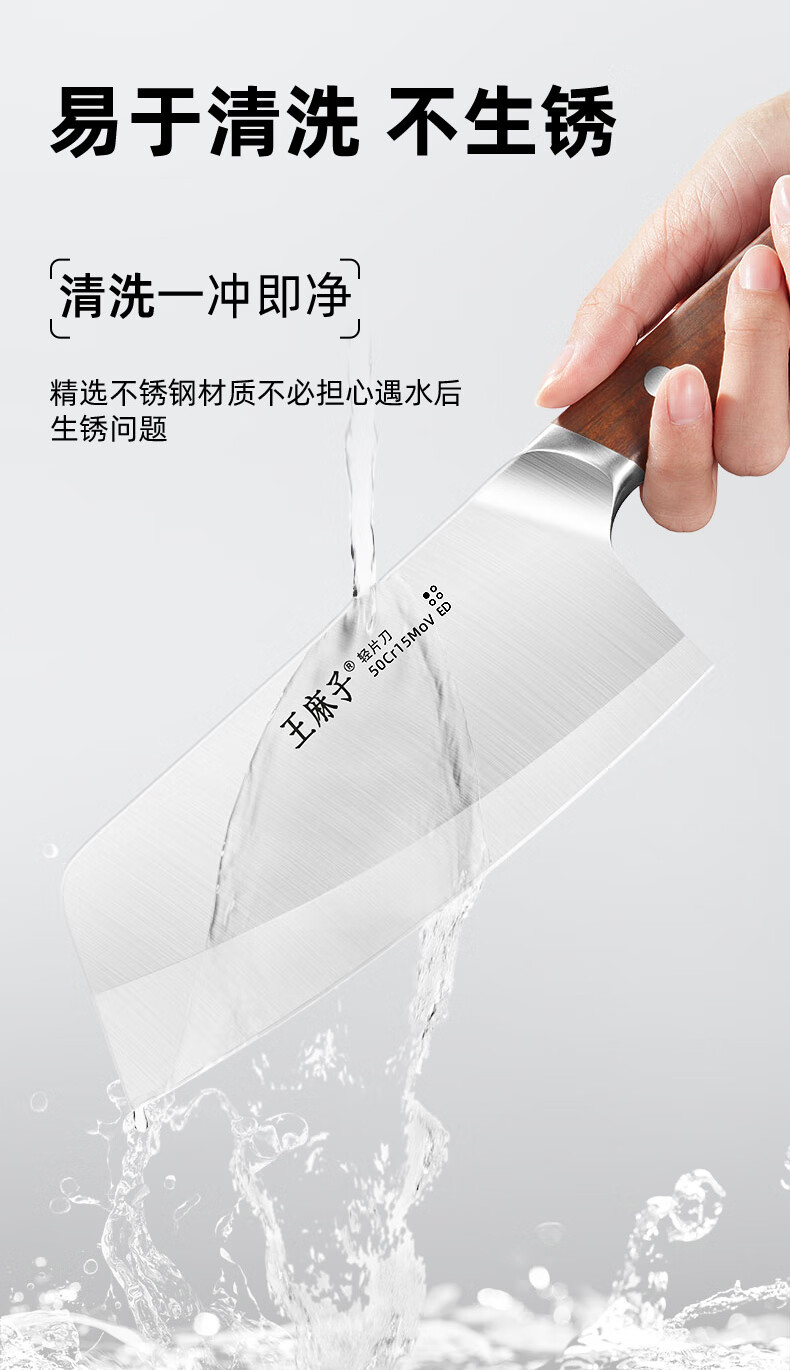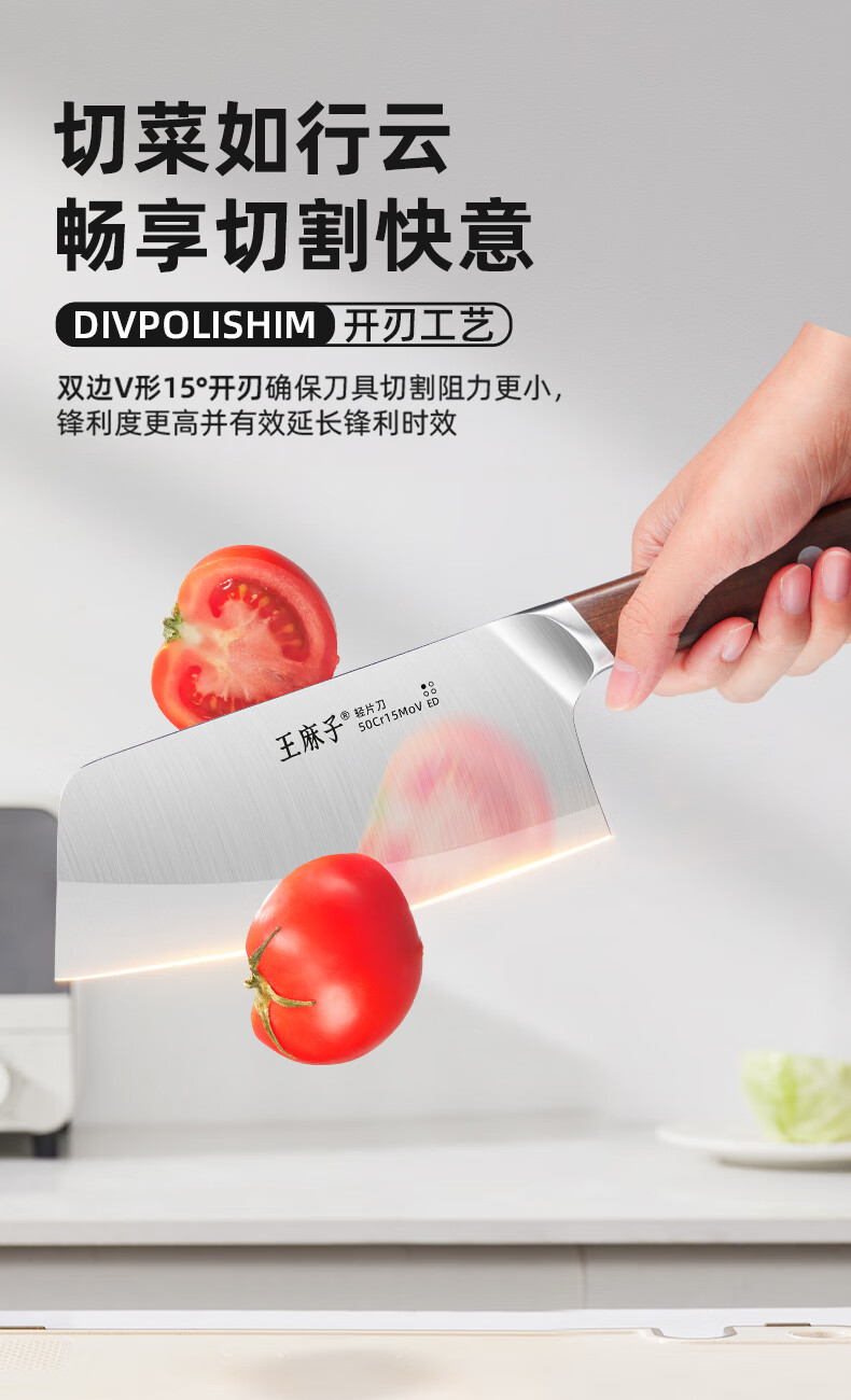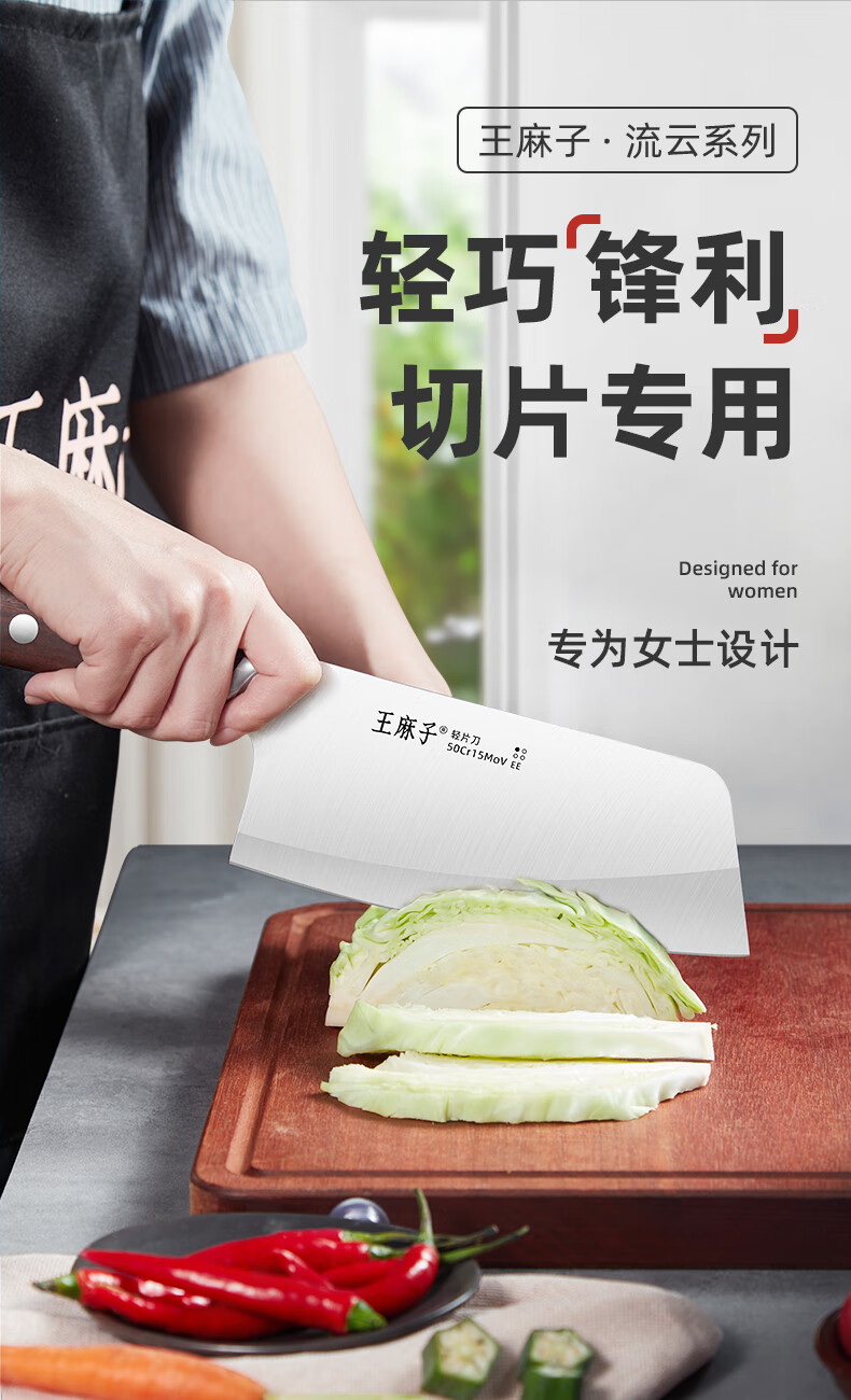 王麻子家用菜刀 50Cr不锈钢厨房切片切肉刀流云刀具 女士专用切菜刀