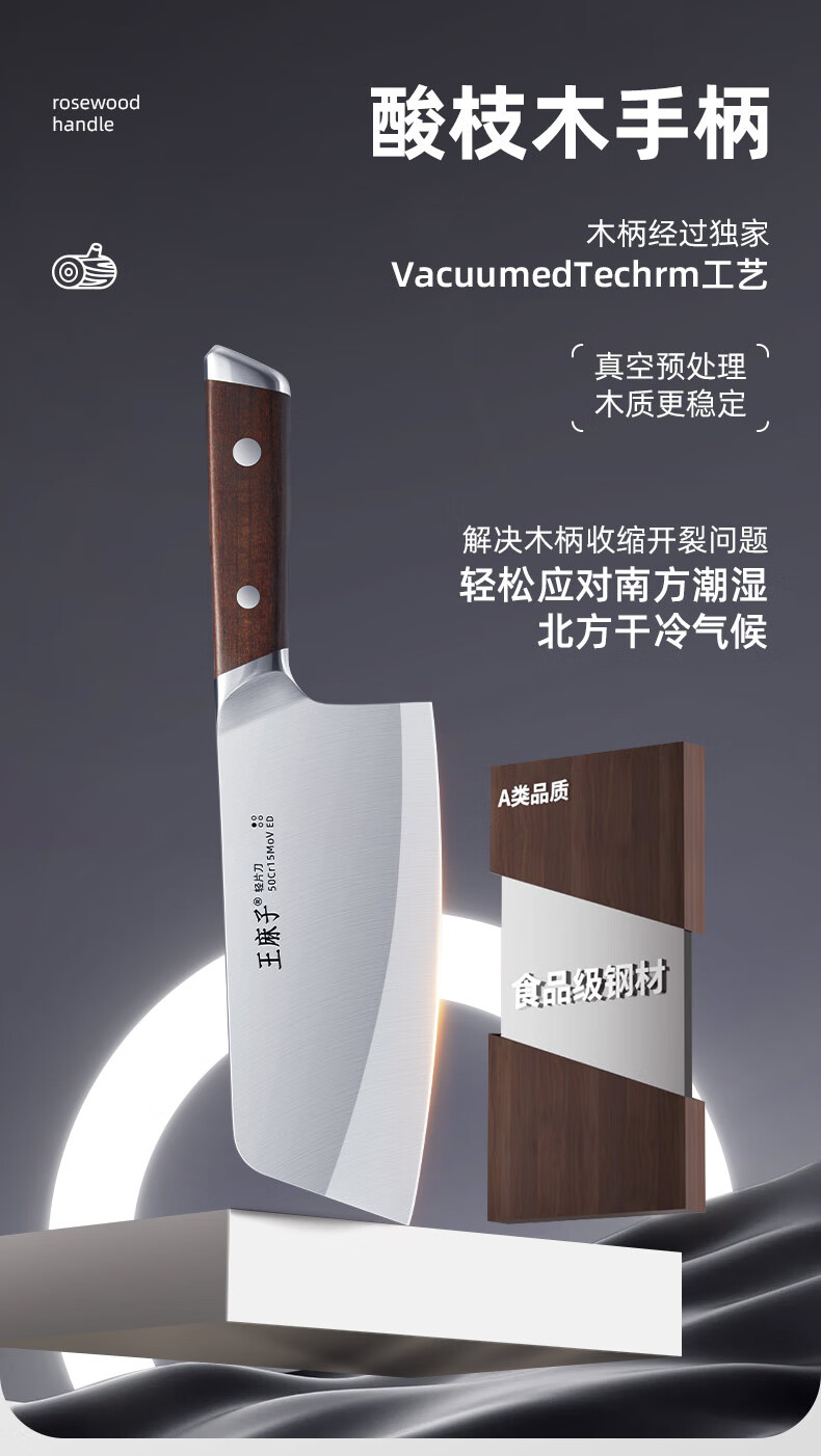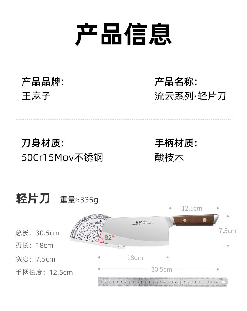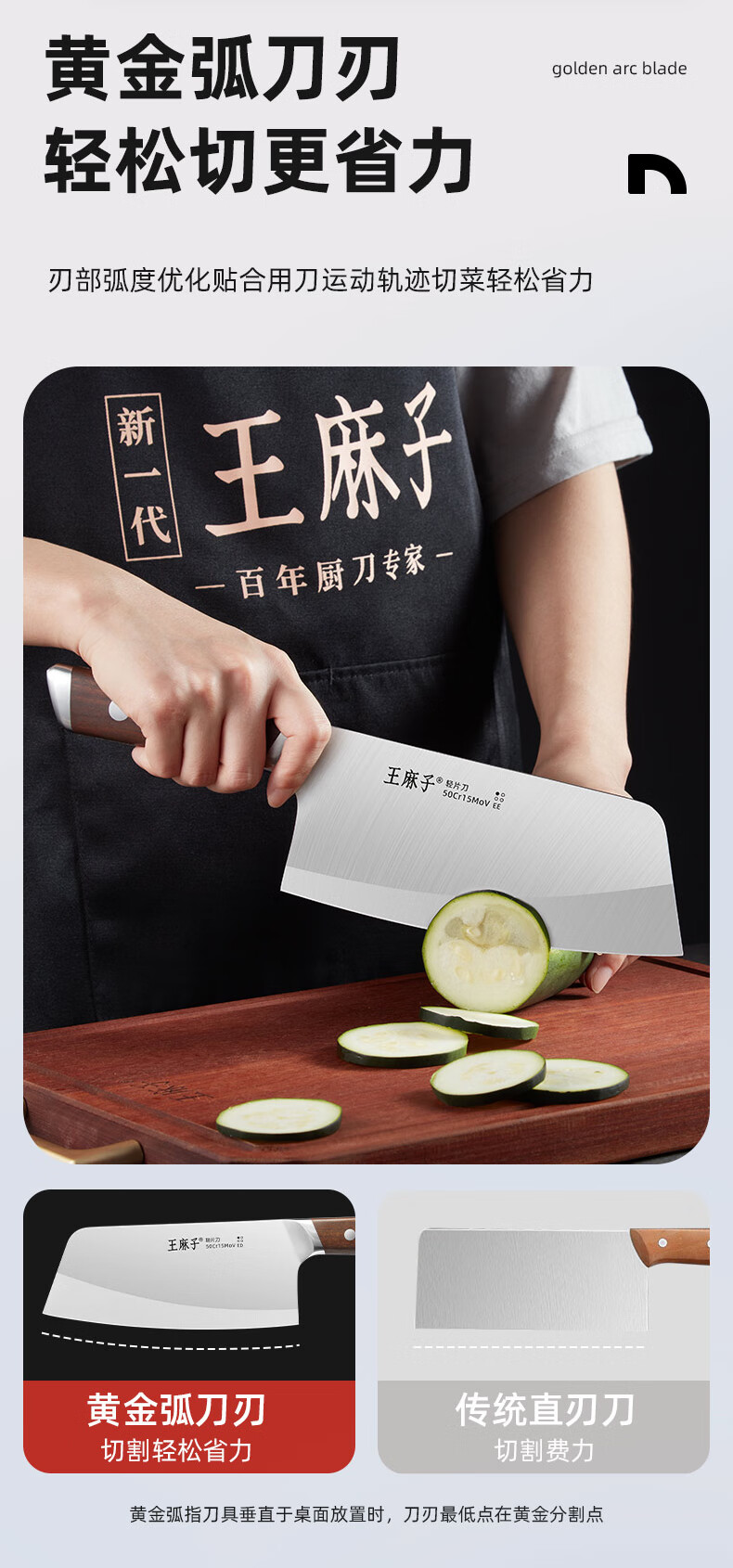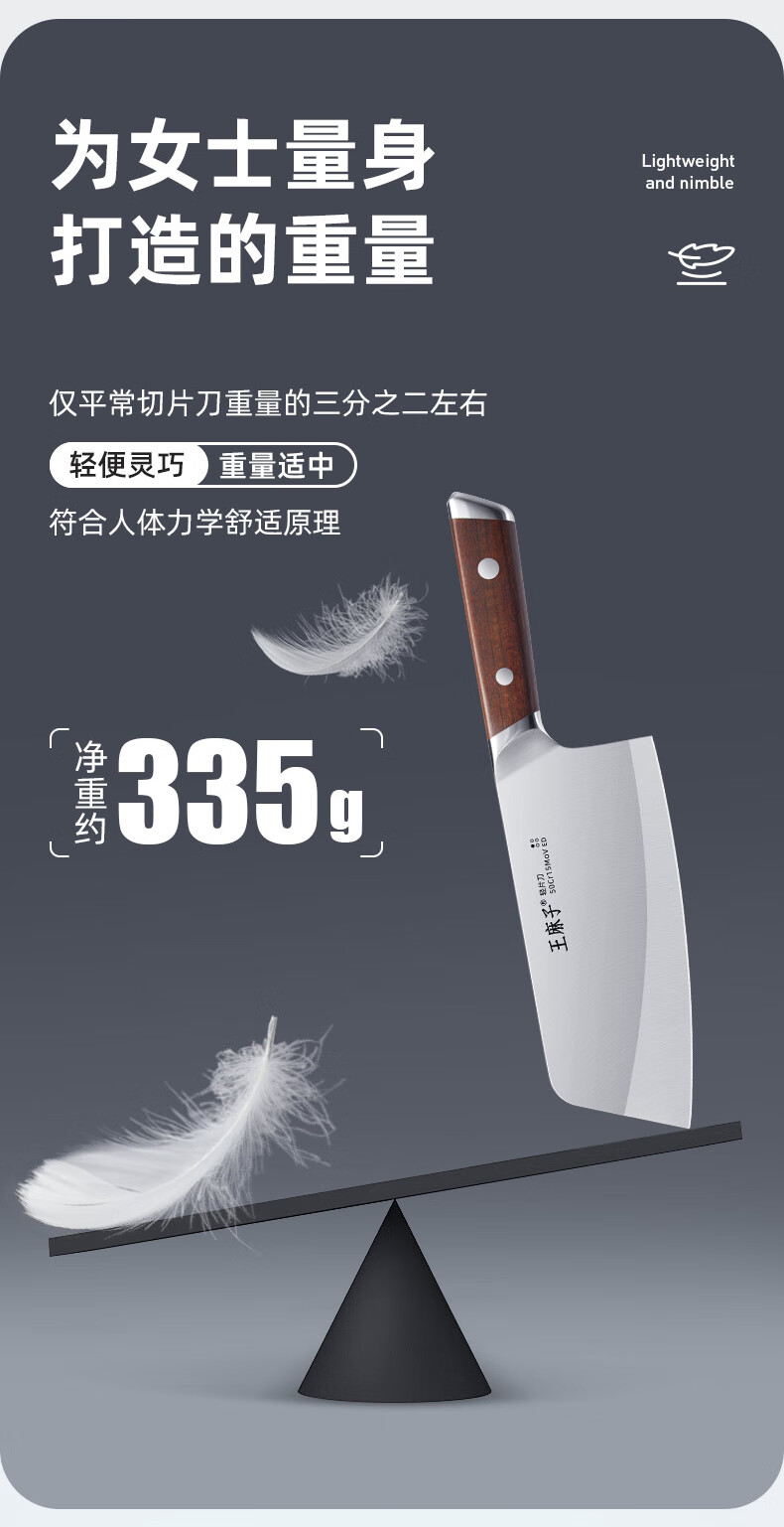王麻子家用菜刀 50Cr不锈钢厨房切片切肉刀流云刀具 女士专用切菜刀