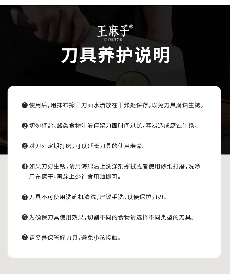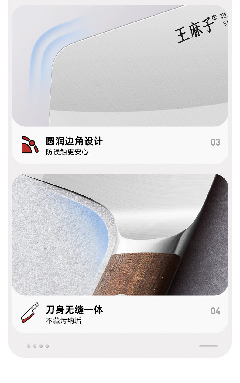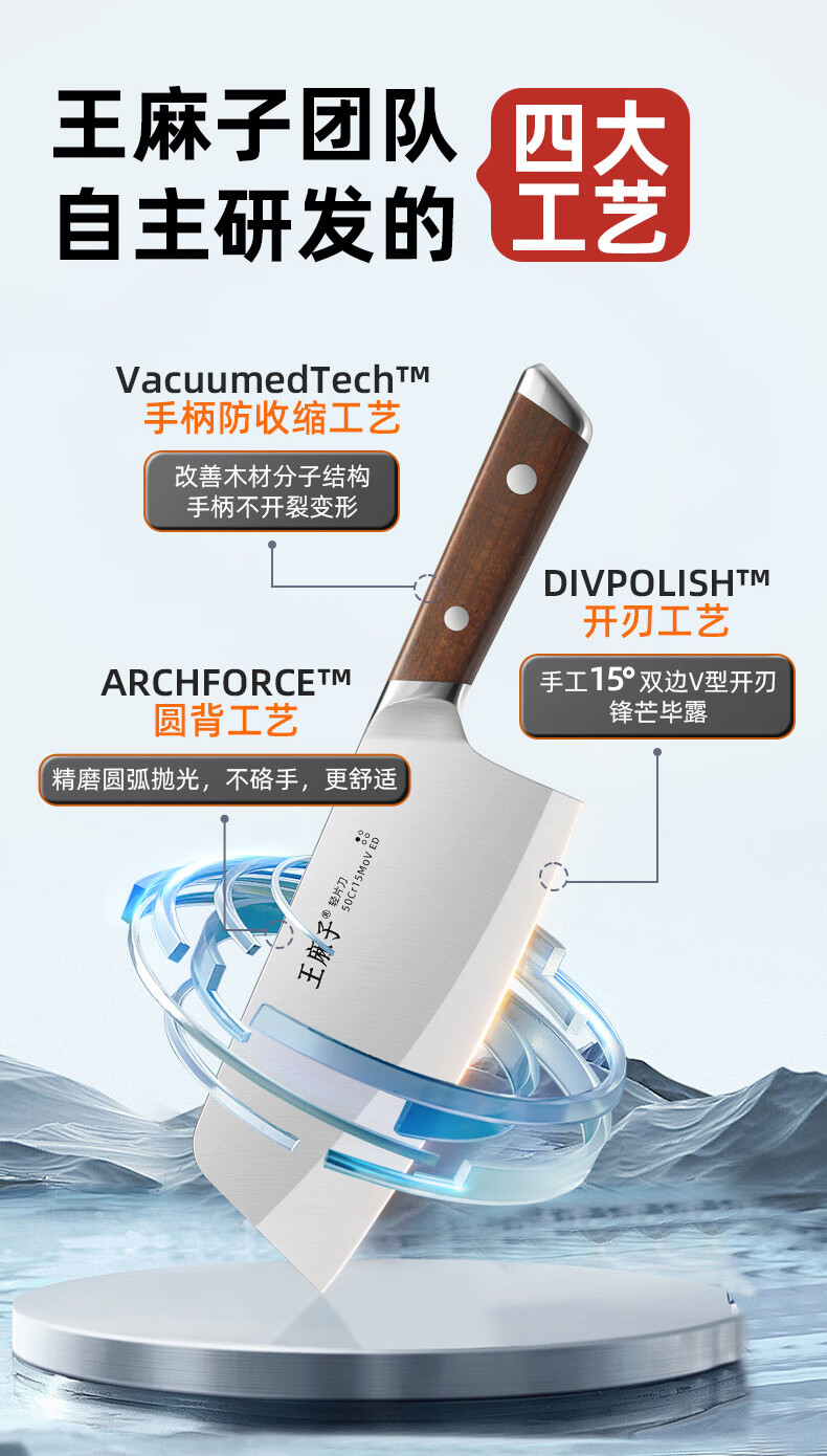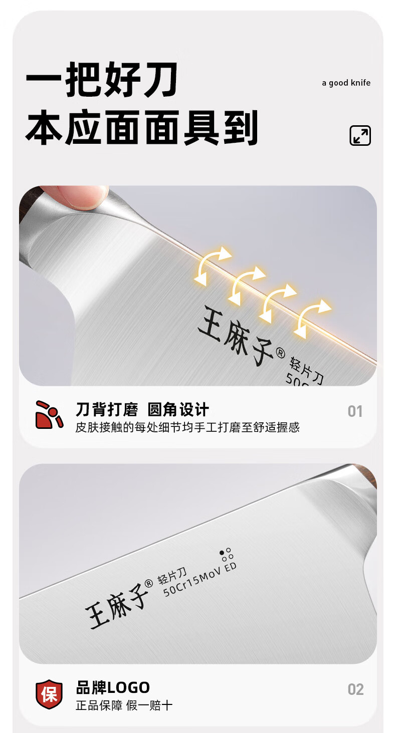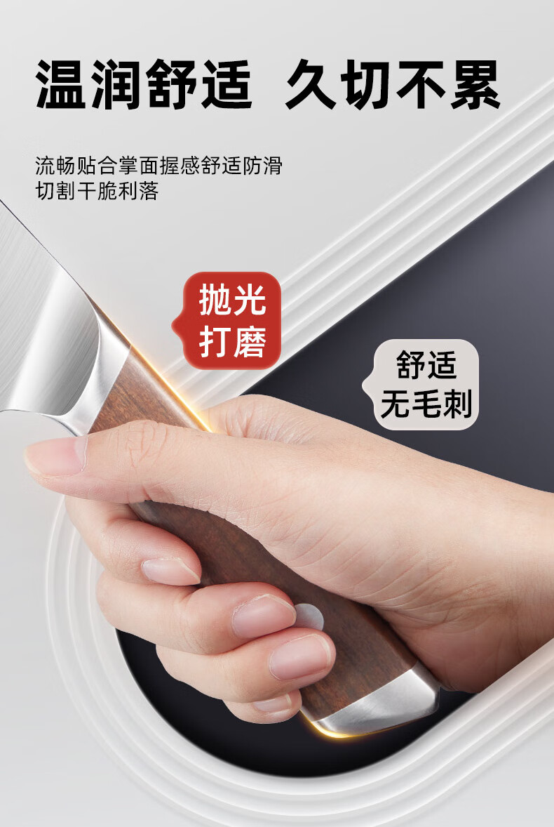王麻子家用菜刀 50Cr不锈钢厨房切片切肉刀流云刀具 女士专用切菜刀