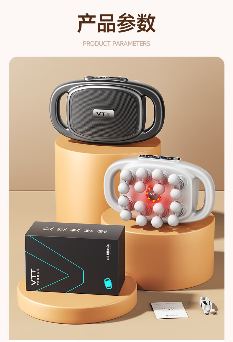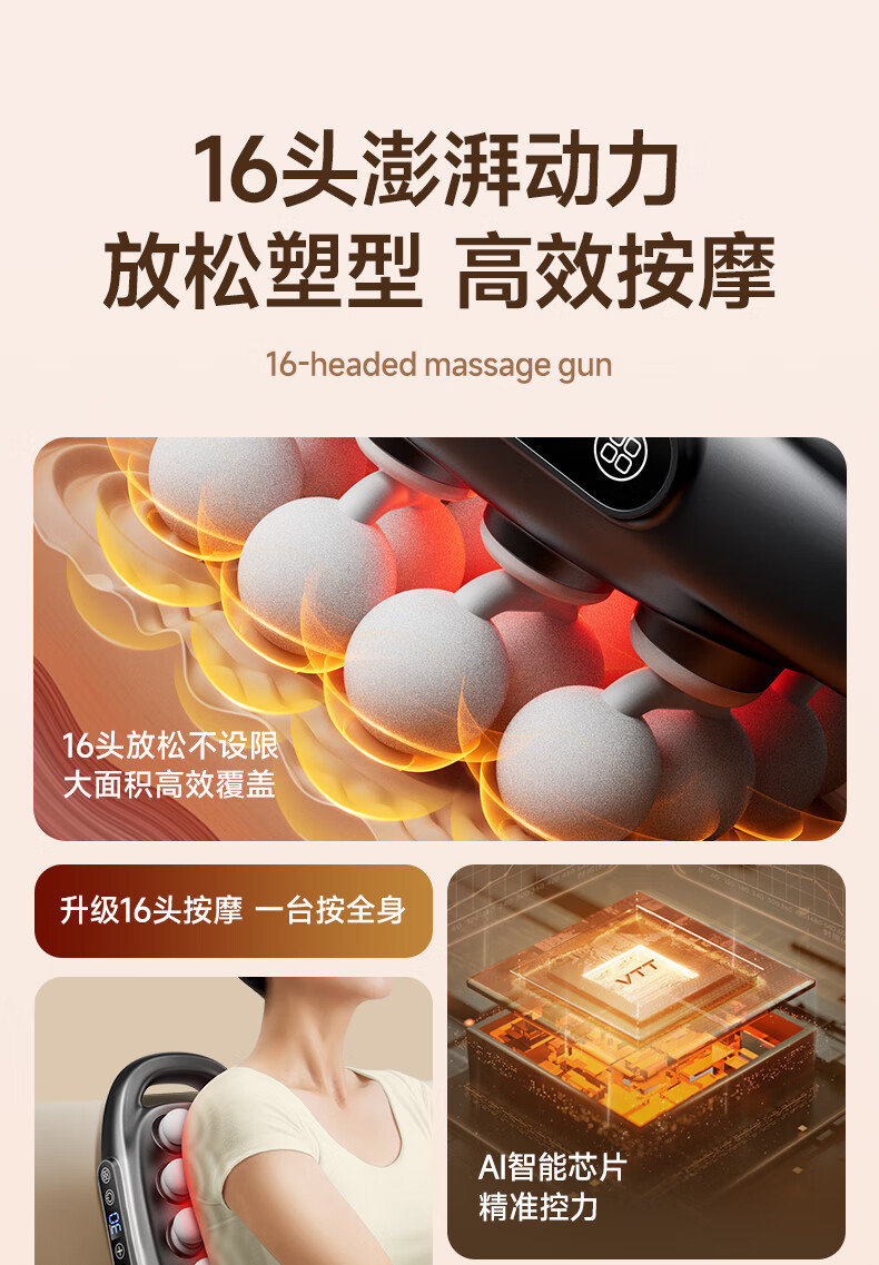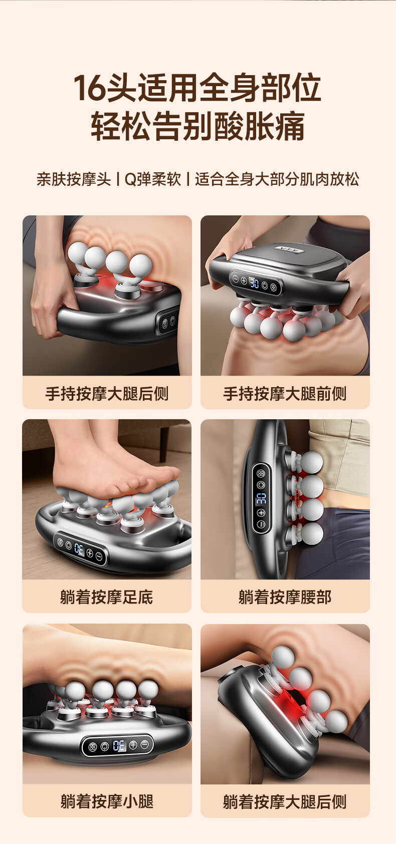 VTT【德国】十六头筋膜枪腿部全自动揉捏全身深层肌肉器腰腿部电动颈膜16肩颈小腿按摩仪生日礼物女生 【16头顶配款】30档+动力锂电池+德国品牌电机灰