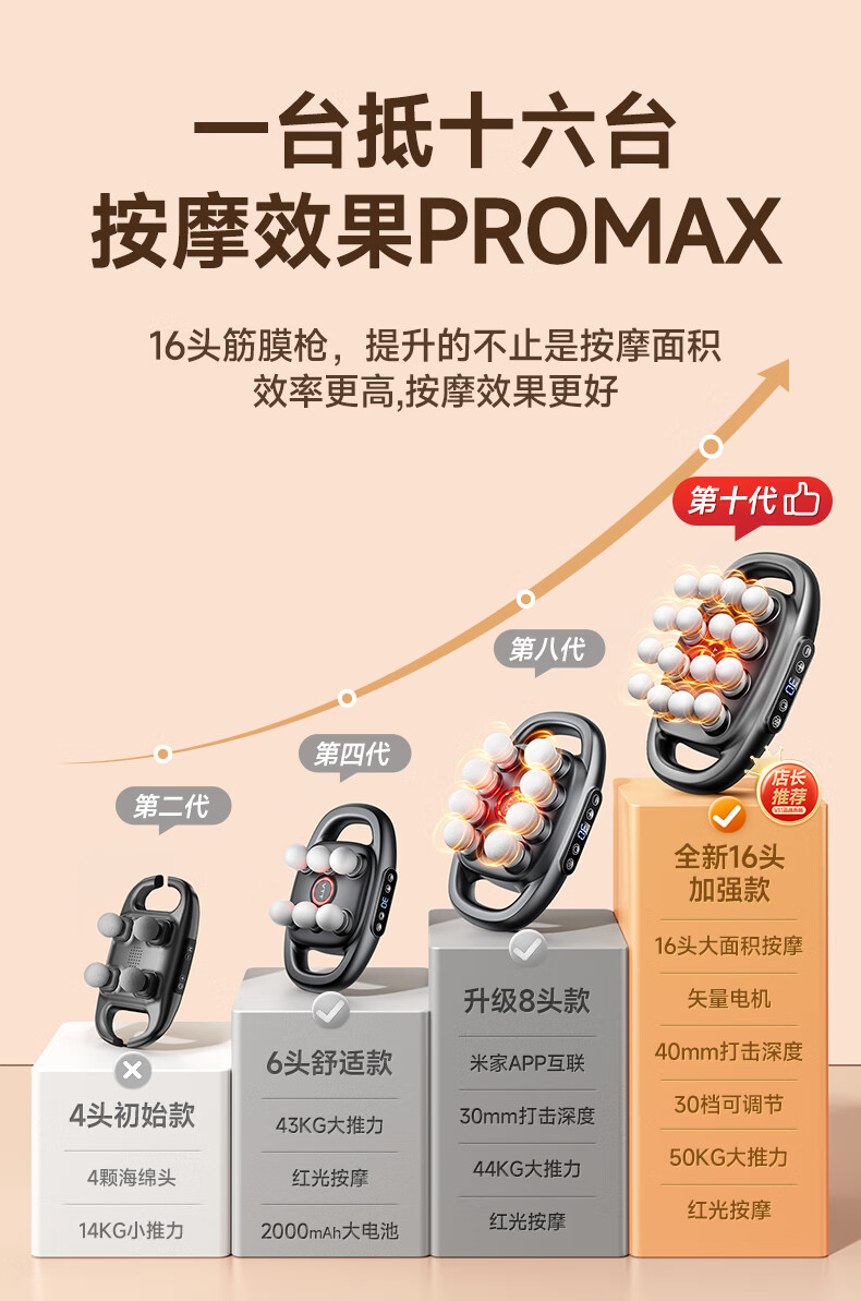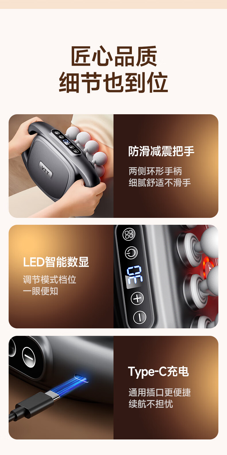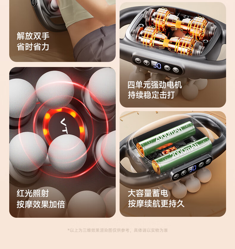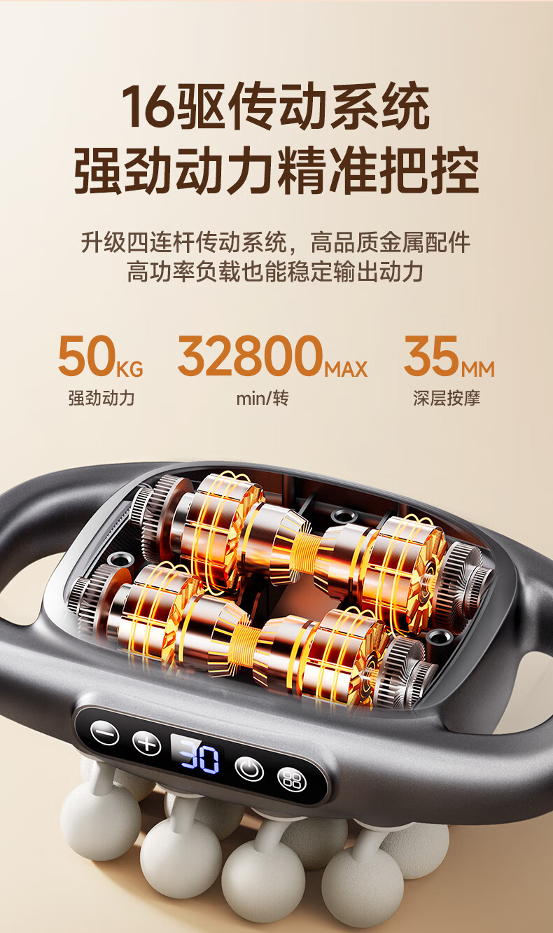 VTT【德国】十六头筋膜枪腿部全自动揉捏全身深层肌肉器腰腿部电动颈膜16肩颈小腿按摩仪生日礼物女生 【16头顶配款】30档+动力锂电池+德国品牌电机灰