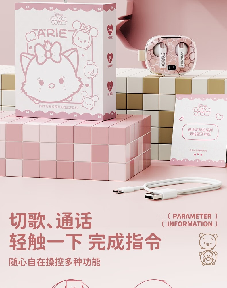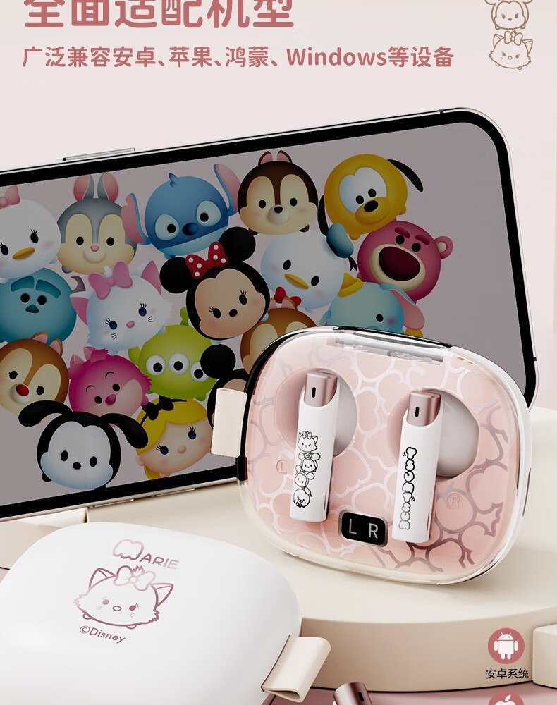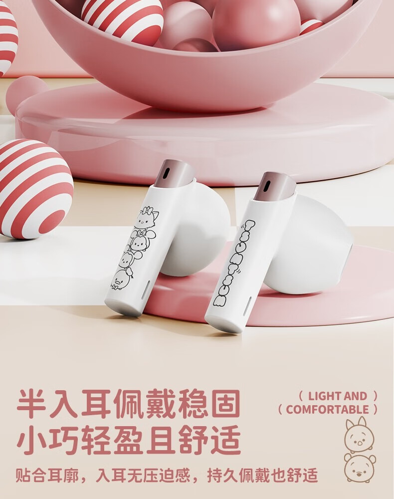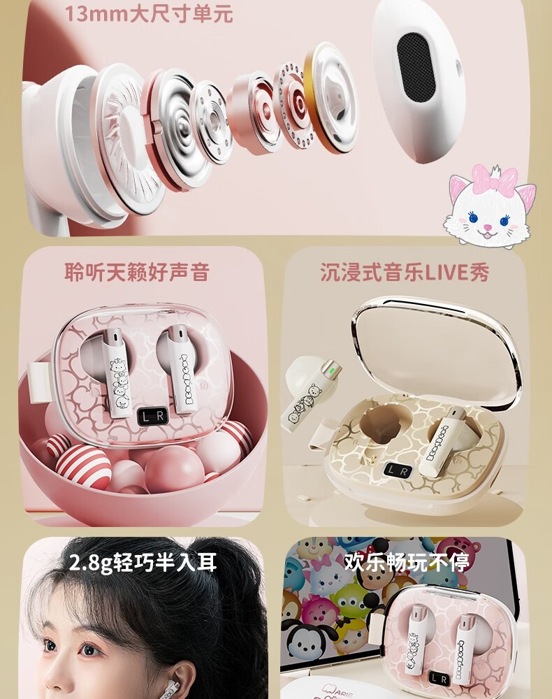 迪士尼DS66半入耳蓝牙耳机超长续航电竞游戏运动高音质无线耳机 玛丽猫 HIFI音质-高清通话