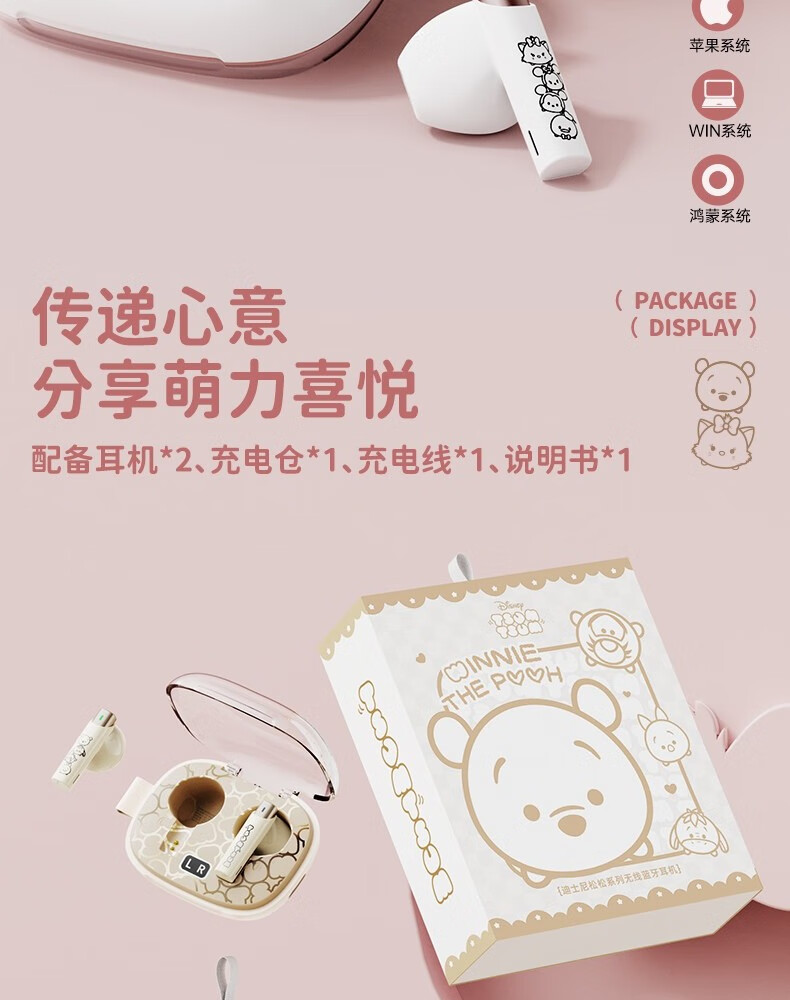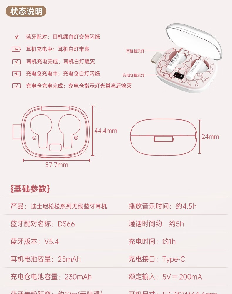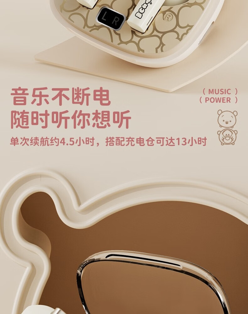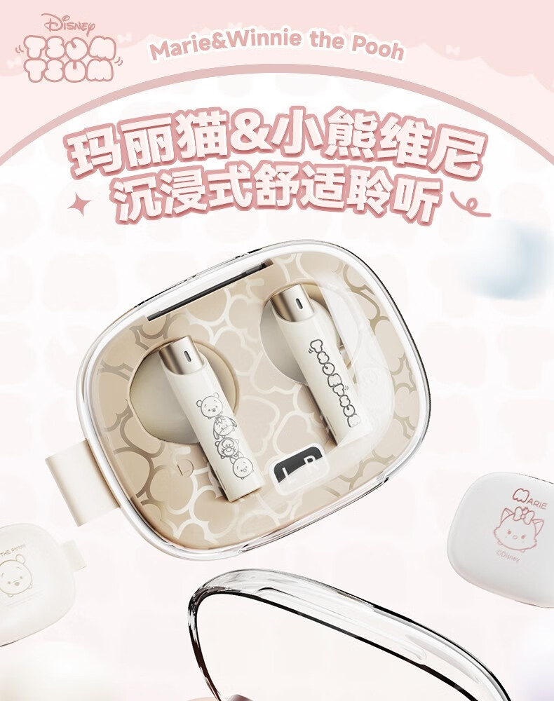 迪士尼DS66半入耳蓝牙耳机超长续航电竞游戏运动高音质无线耳机 玛丽猫 HIFI音质-高清通话