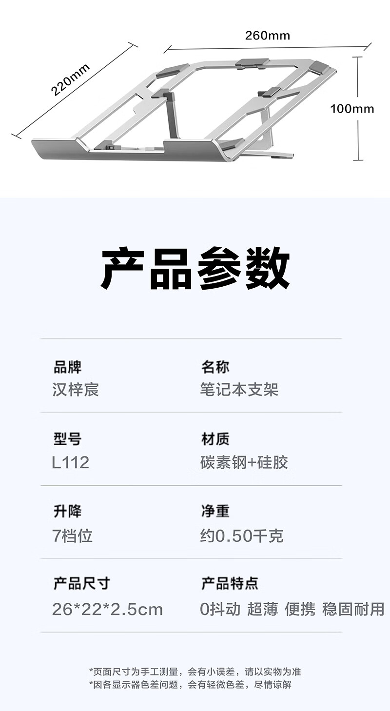 汉梓宸笔记本电脑支架碳素钢笔记本专用支架散热底座笔记本升降支架电脑支架游戏本便携支架宿舍电脑架 【七档调节+稳固不晃+镂空散热】