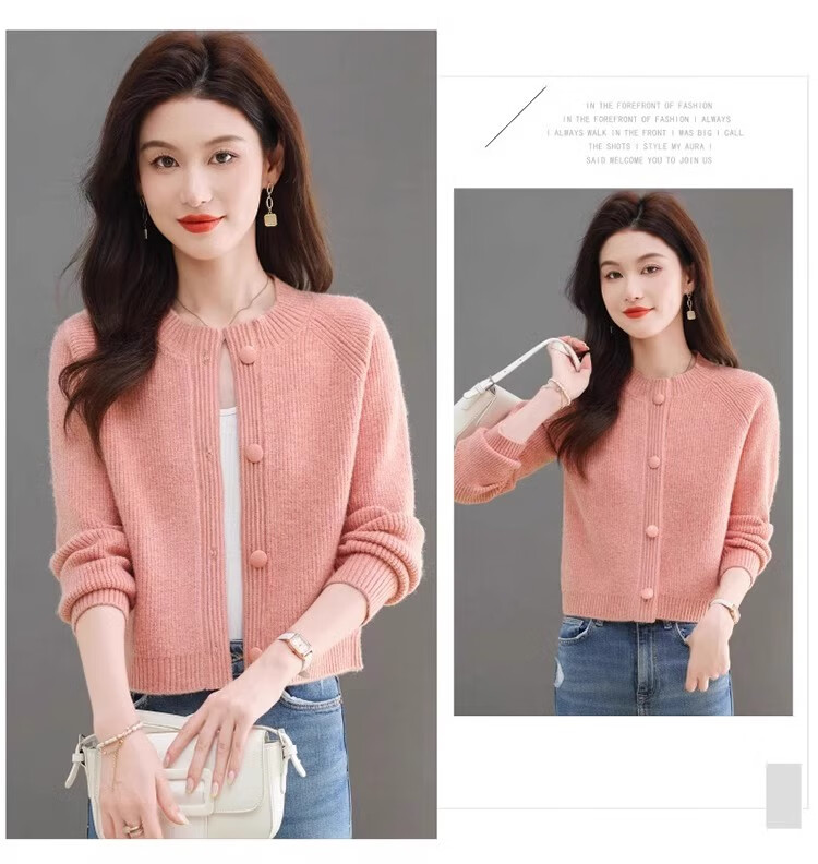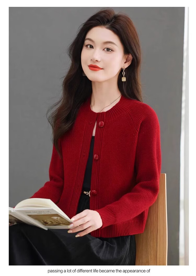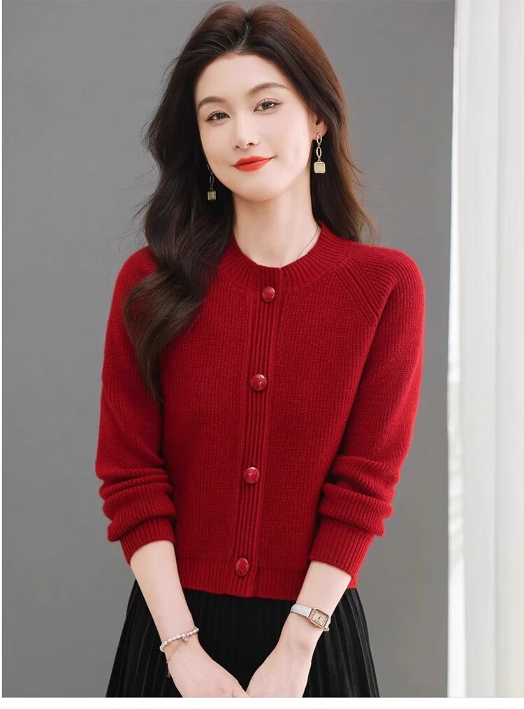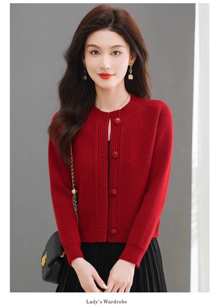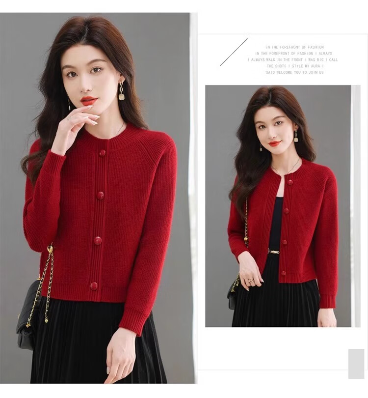 恒源祥毛衣短款外套女秋冬新款时尚高腰配裙上衣小个子毛衣针织开衫外搭 红色 S 【建议80-90斤穿】