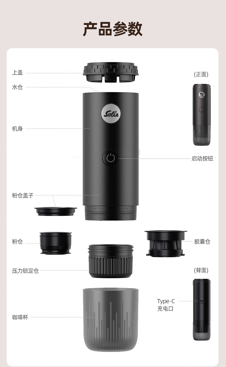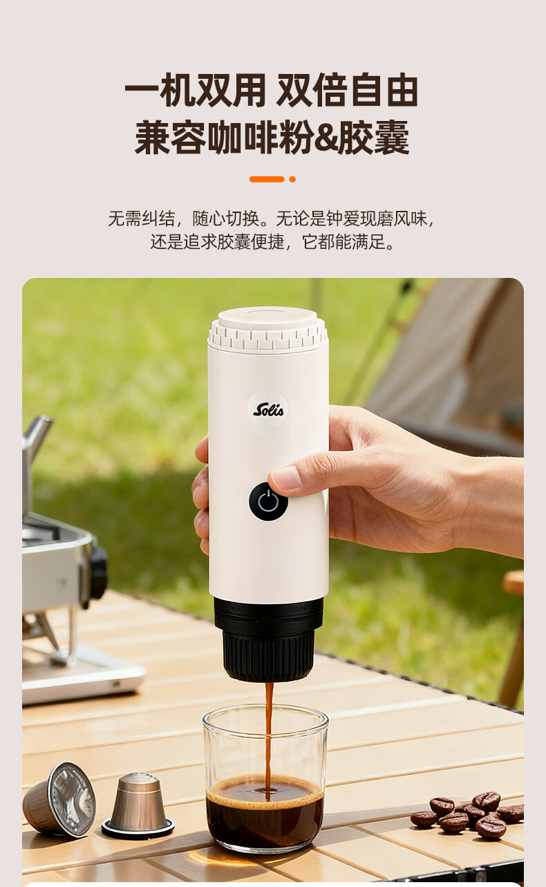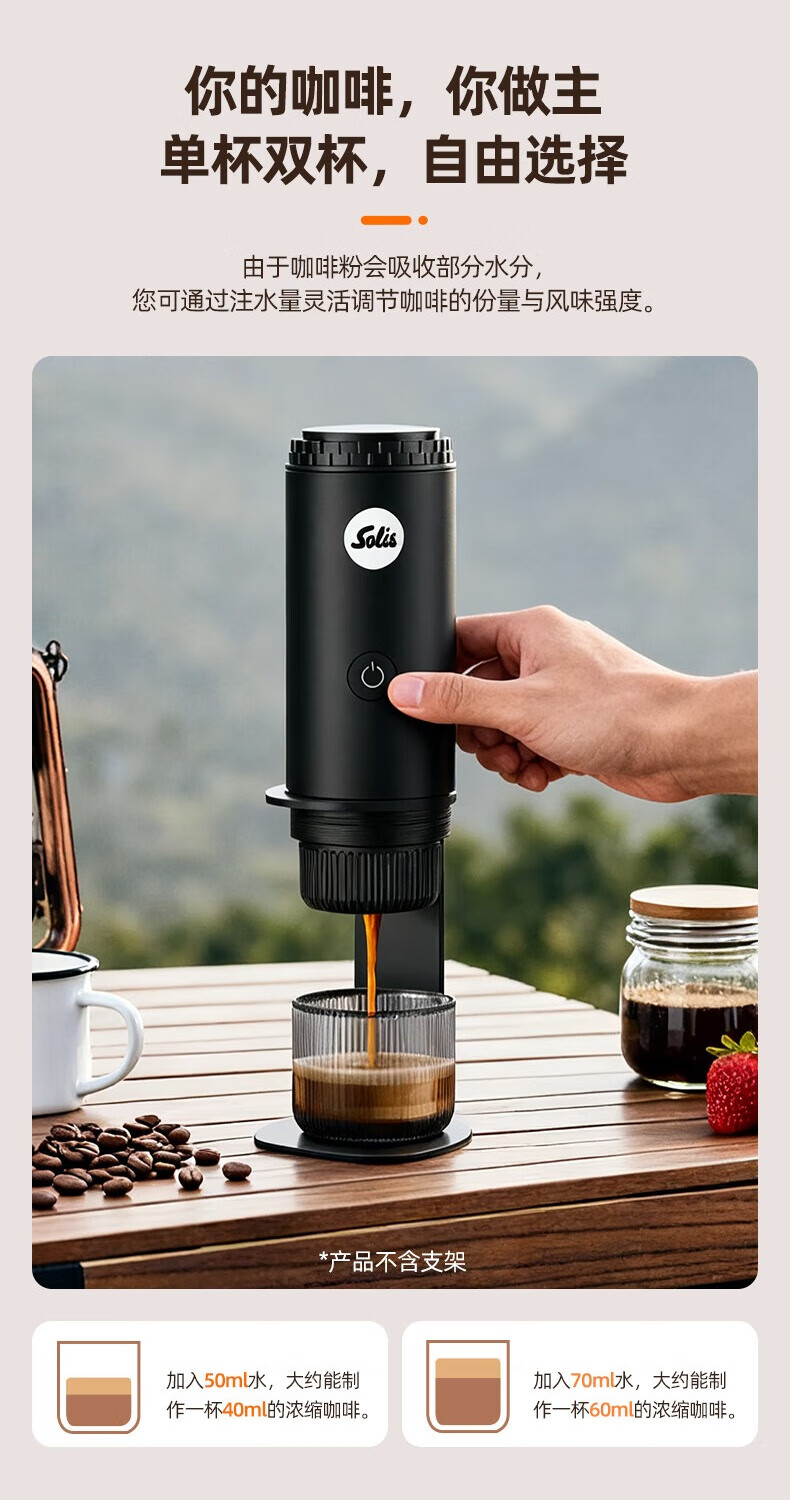 索利斯(Solis)便携胶囊咖啡机家用办公室户外旅行迷你意式美式咖啡具生日礼物 黑色(不带磨豆功能)