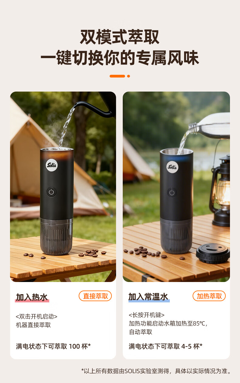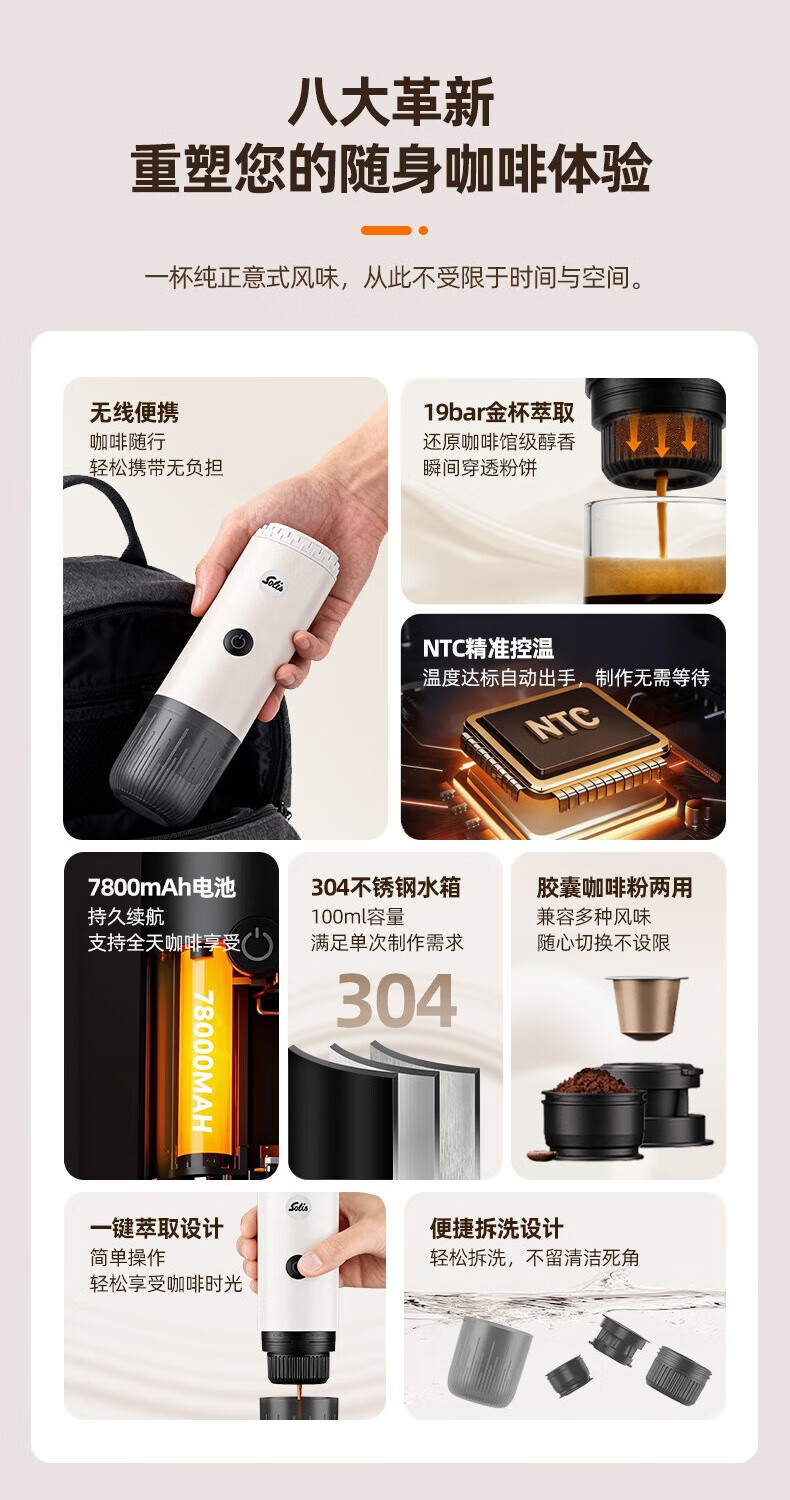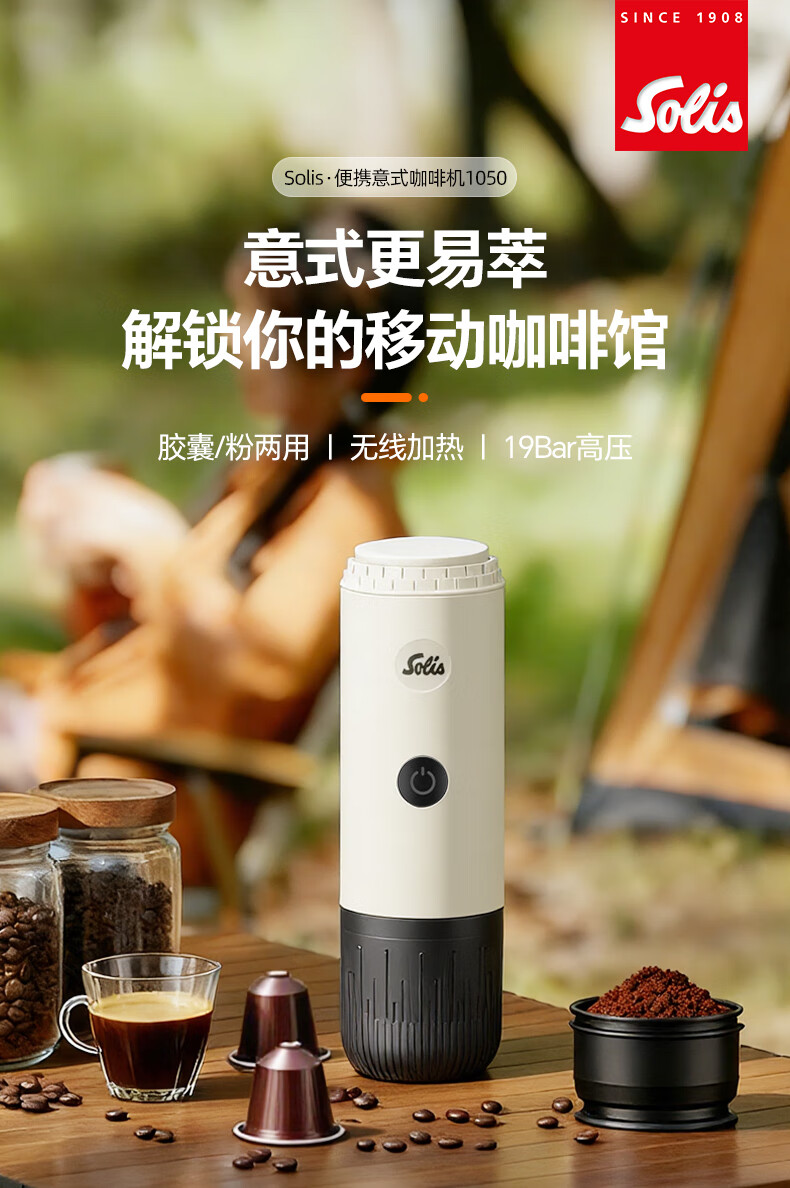索利斯(Solis)便携胶囊咖啡机家用办公室户外旅行迷你意式美式咖啡具生日礼物 黑色(不带磨豆功能)