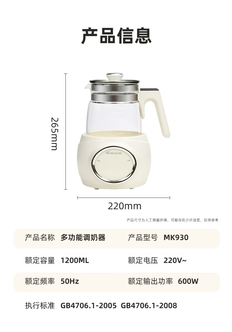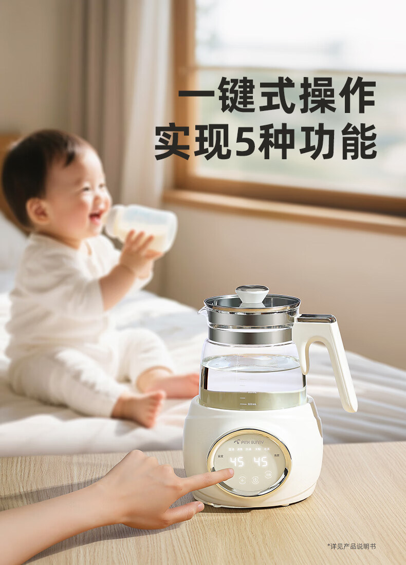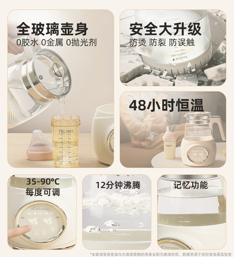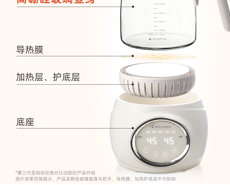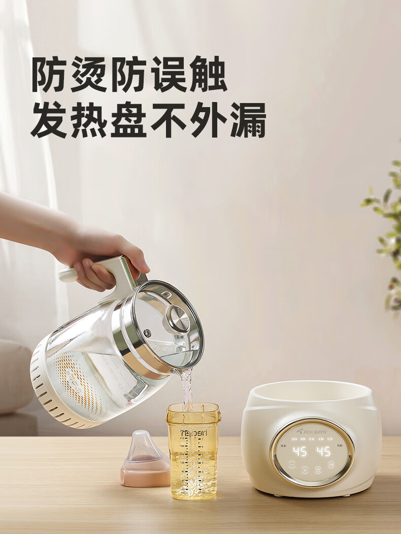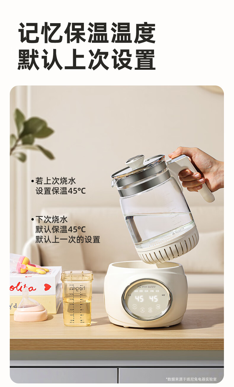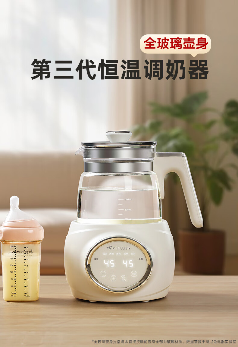 班尼兔(Pink Bunny)全玻璃恒温热水壶新生婴儿冲奶专用家用烧水壶暖奶泡奶调奶器 1.2L 第三代全玻璃恒温壶