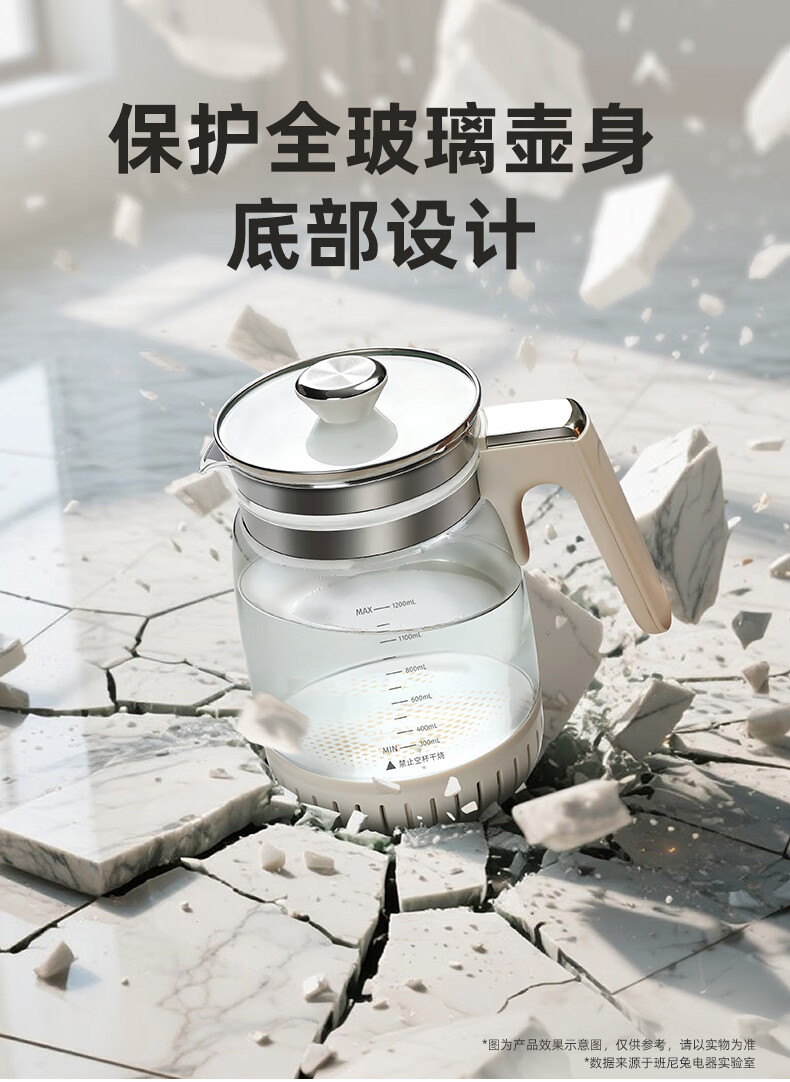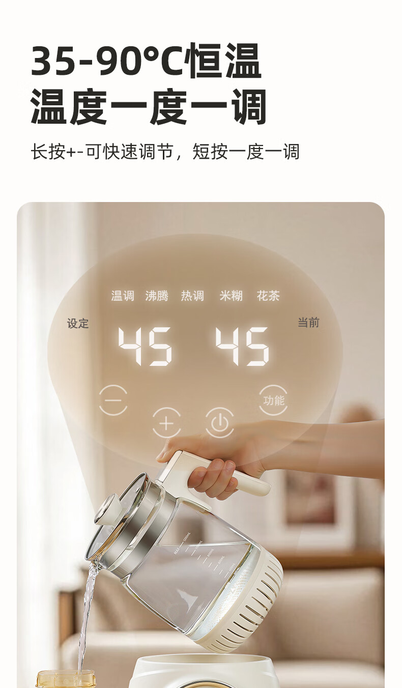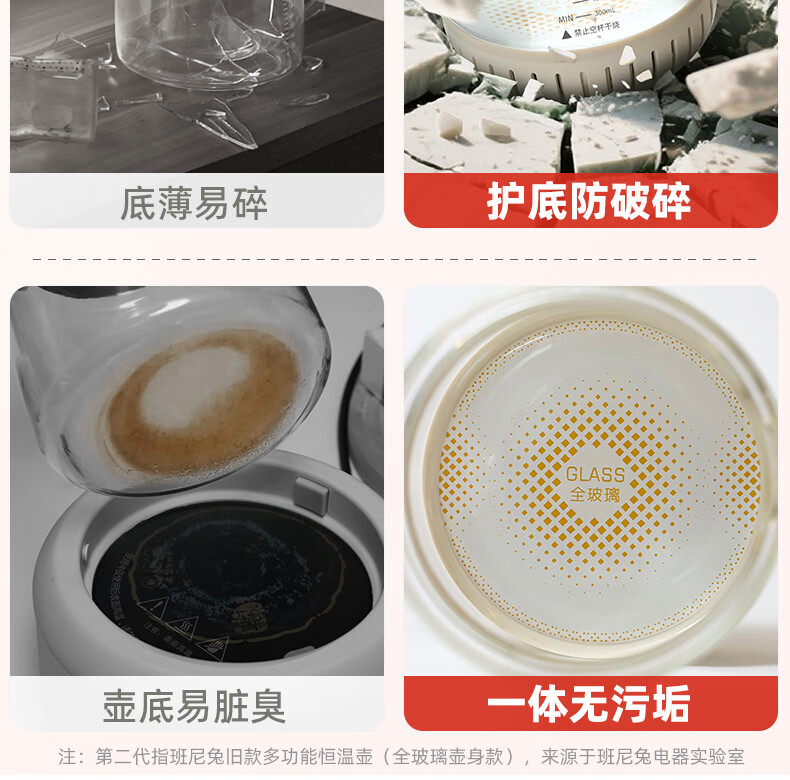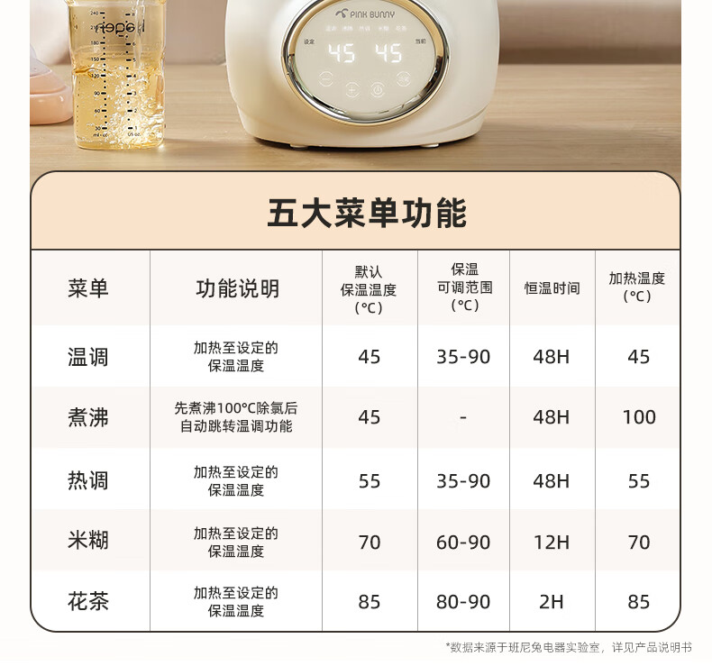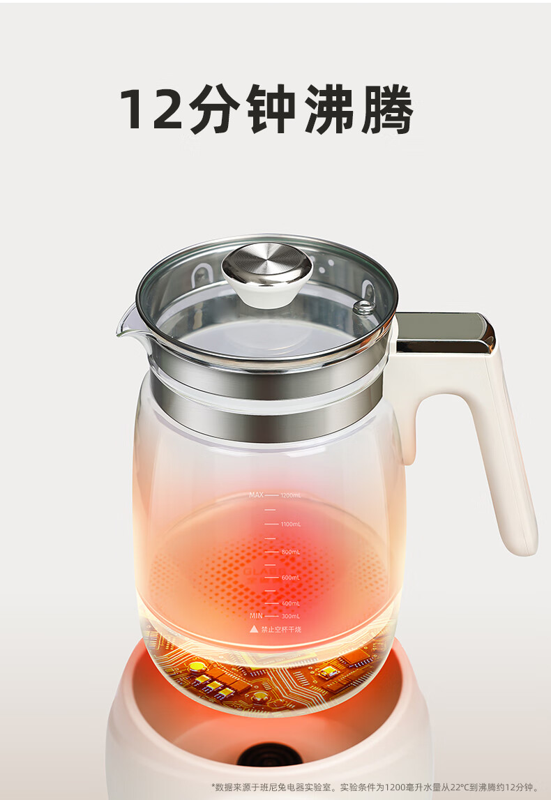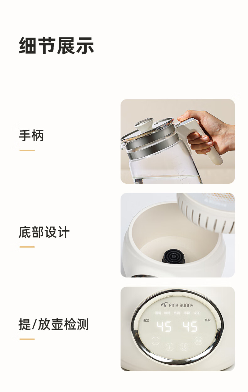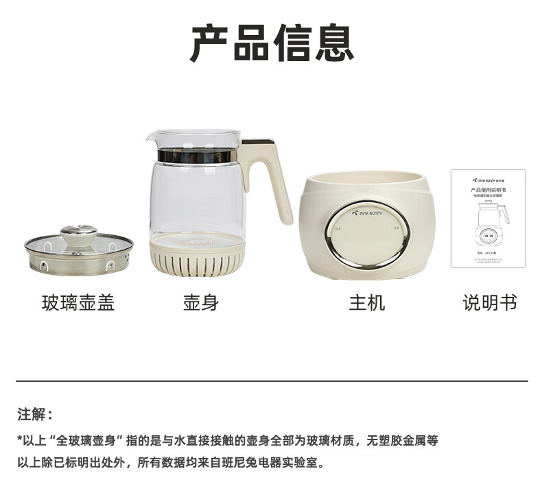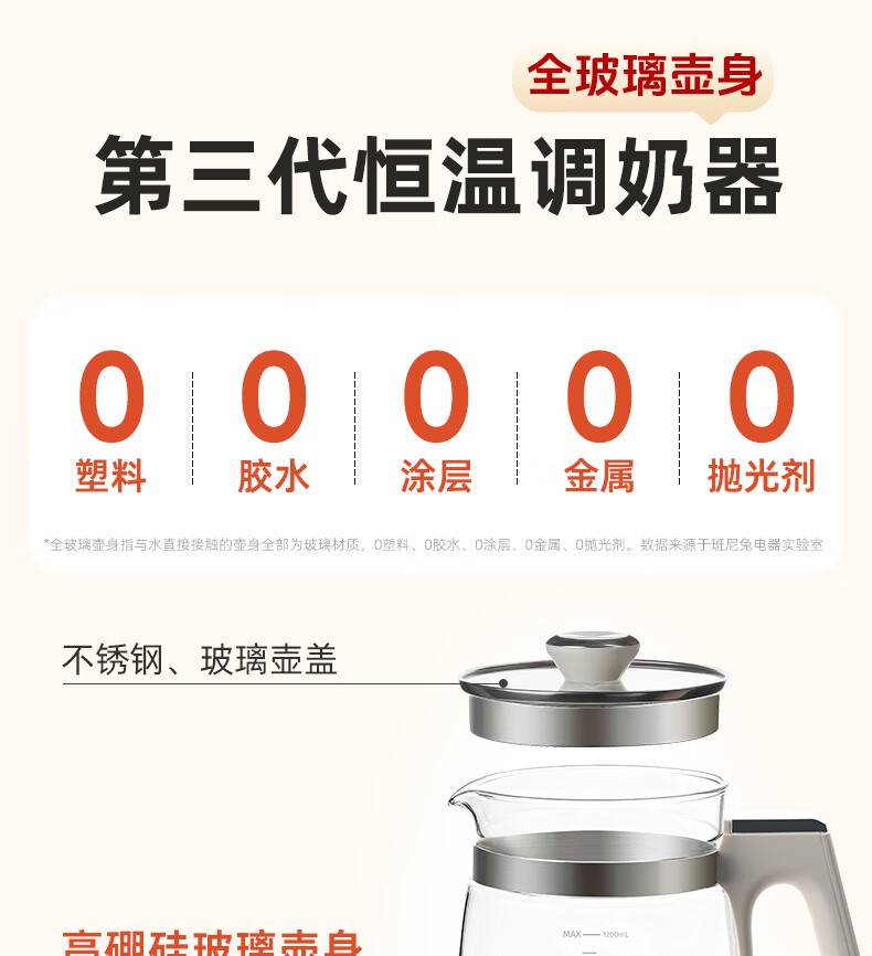 班尼兔(Pink Bunny)全玻璃恒温热水壶新生婴儿冲奶专用家用烧水壶暖奶泡奶调奶器 1.2L 第三代全玻璃恒温壶