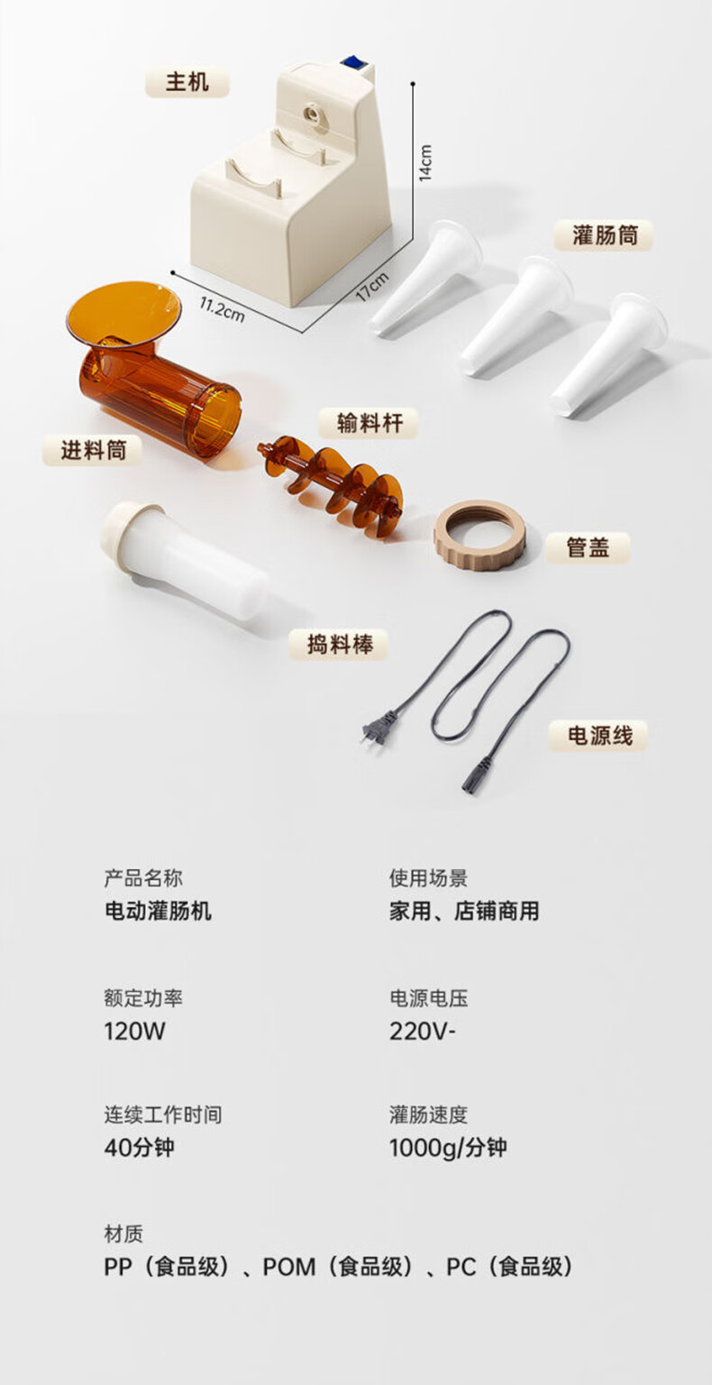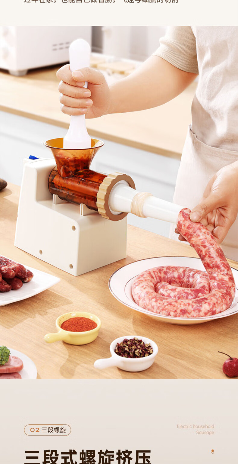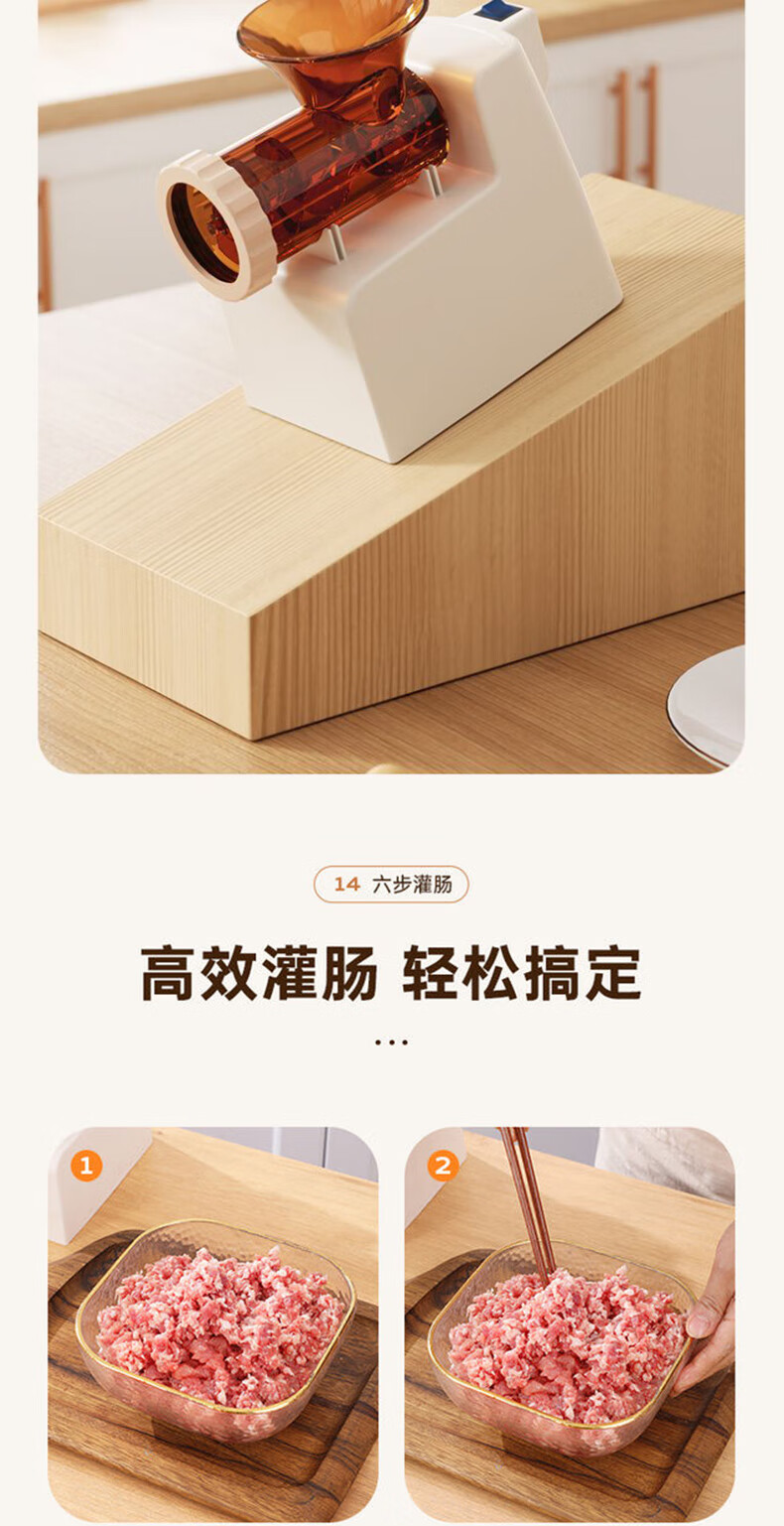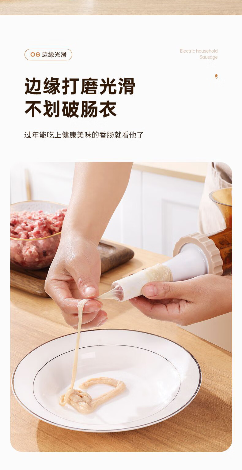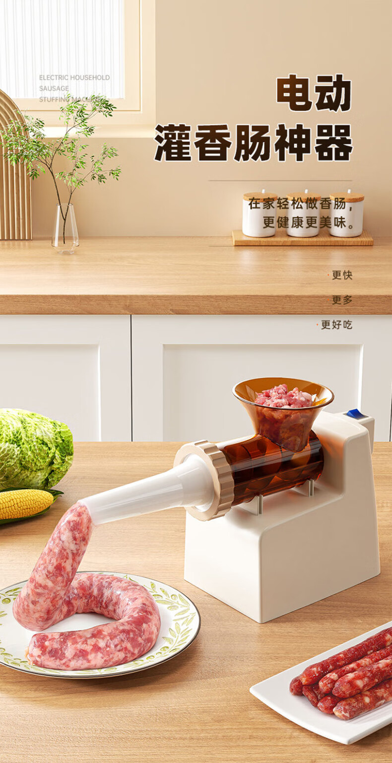 拜杰灌肠器灌肠机家用灌香肠机器全自动灌火腿肠神器灌腊肠旸衣工具 全自动灌肠器【肠管*3根+捣肉棒】 多段螺旋绞出筋道肉感