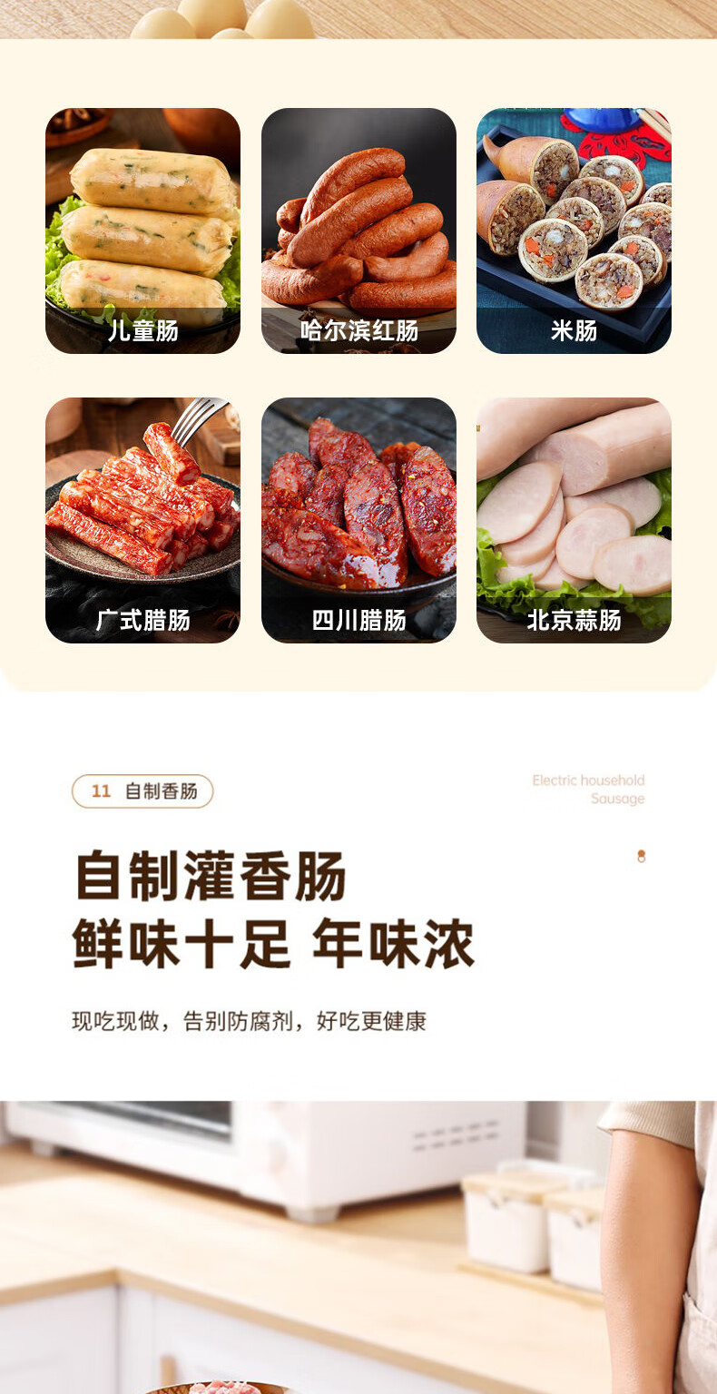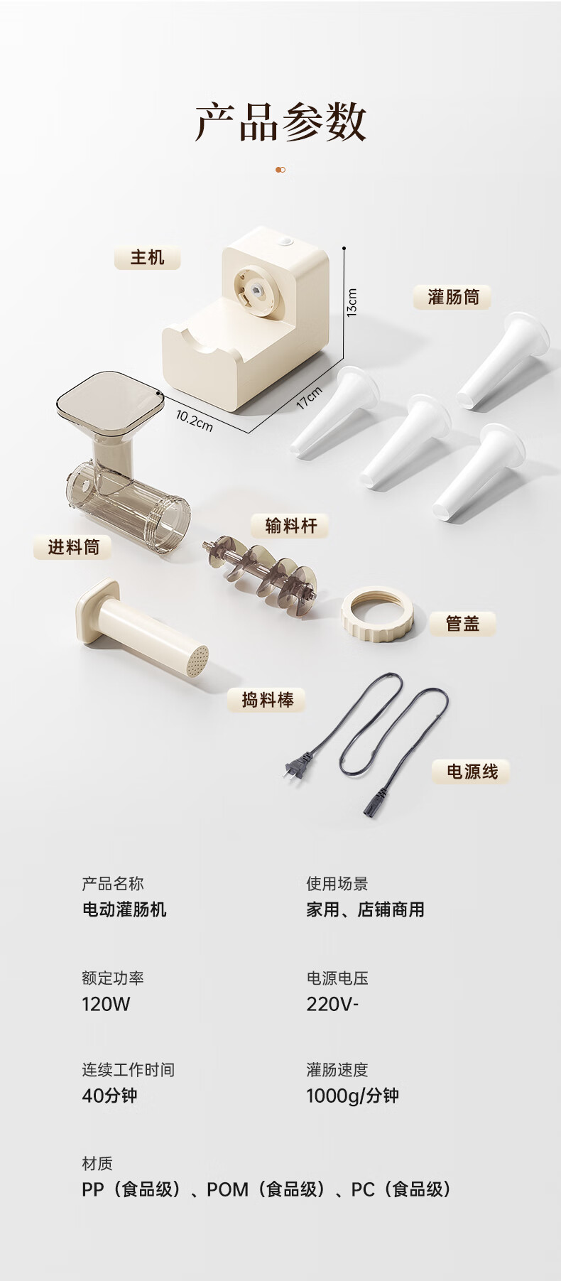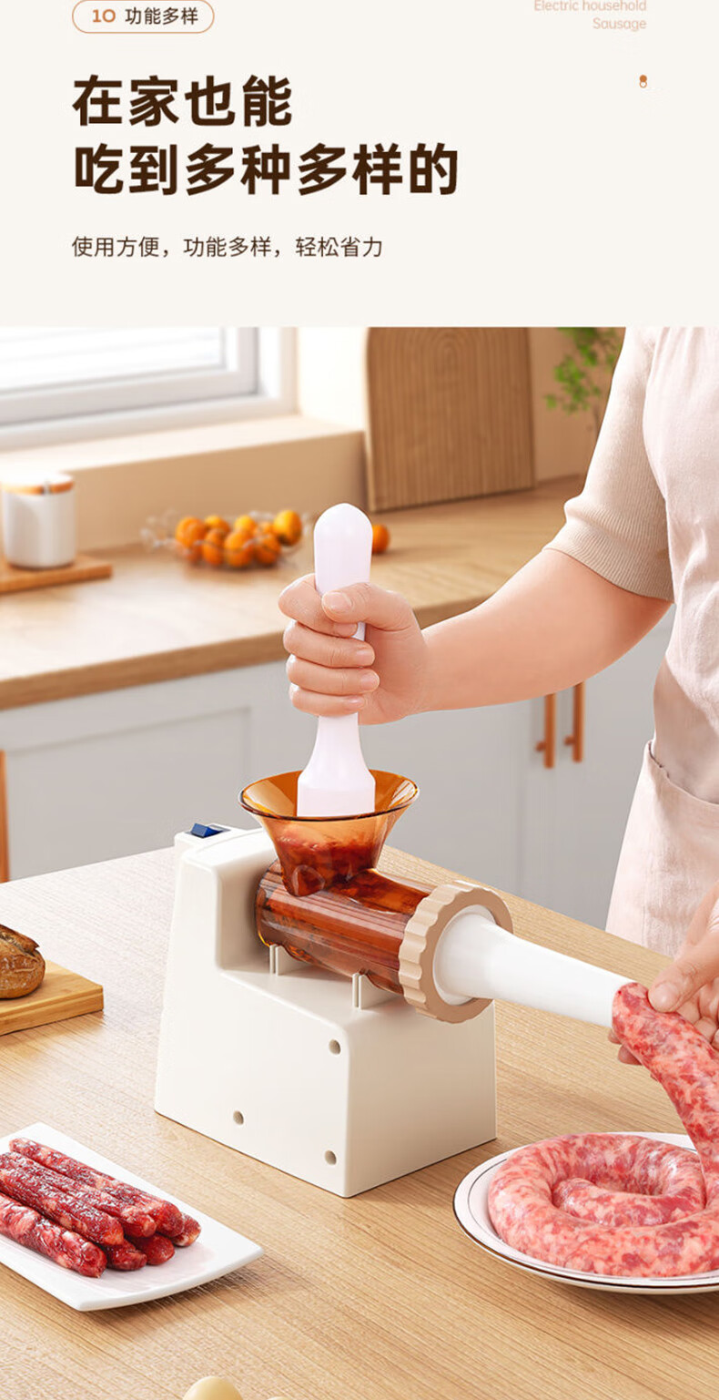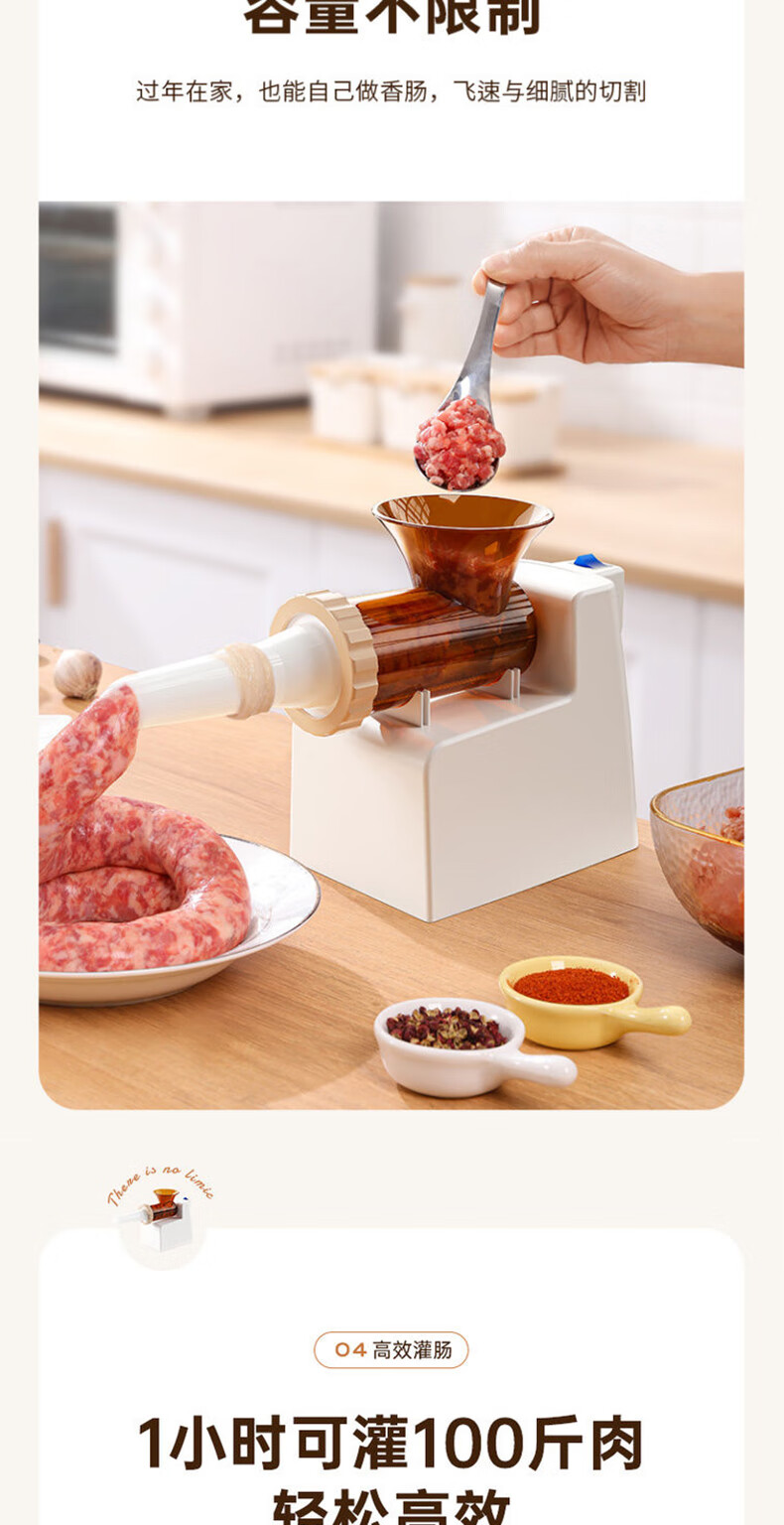 拜杰灌肠器灌肠机家用灌香肠机器全自动灌火腿肠神器灌腊肠旸衣工具 全自动灌肠器【肠管*3根+捣肉棒】 多段螺旋绞出筋道肉感