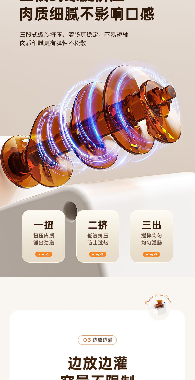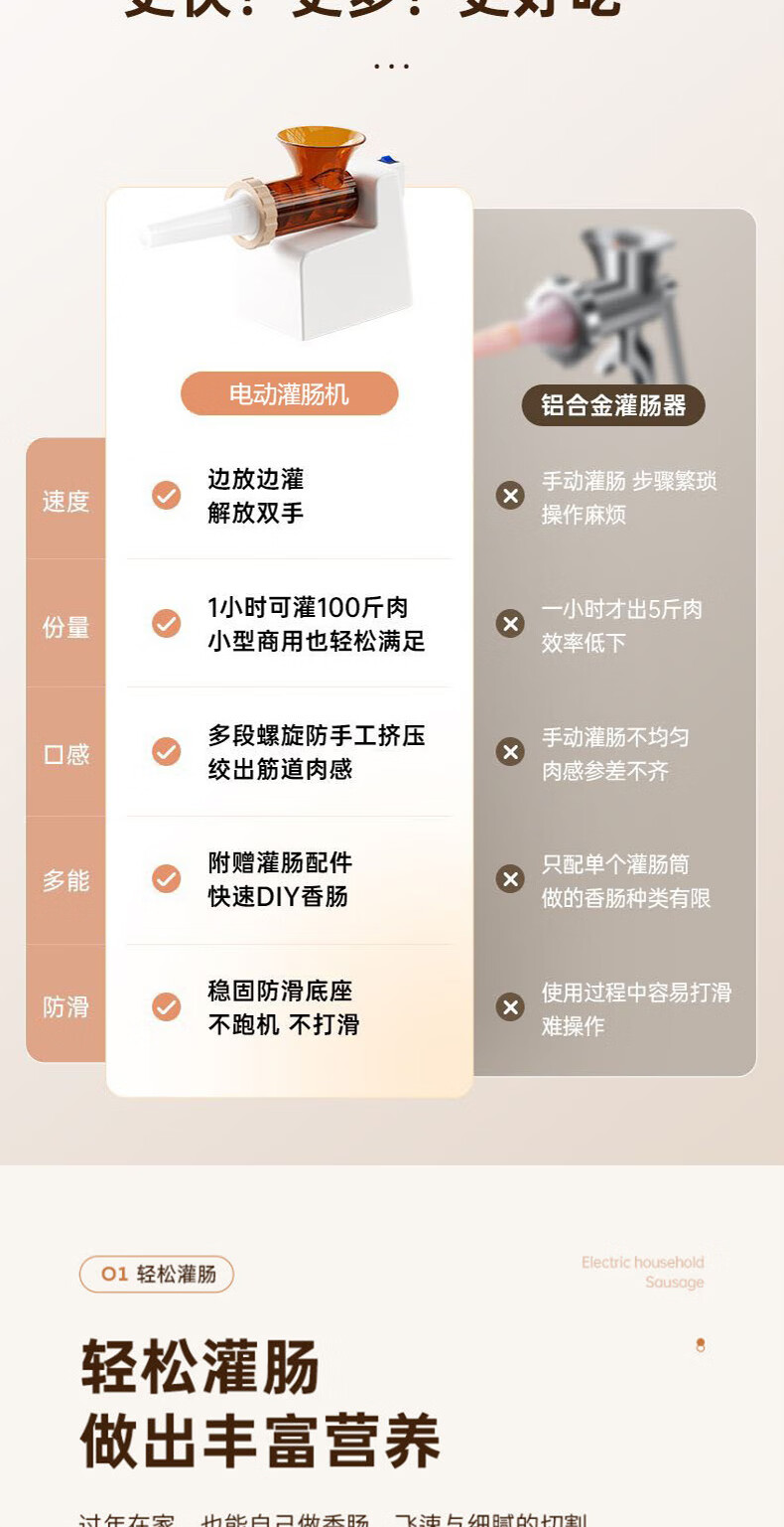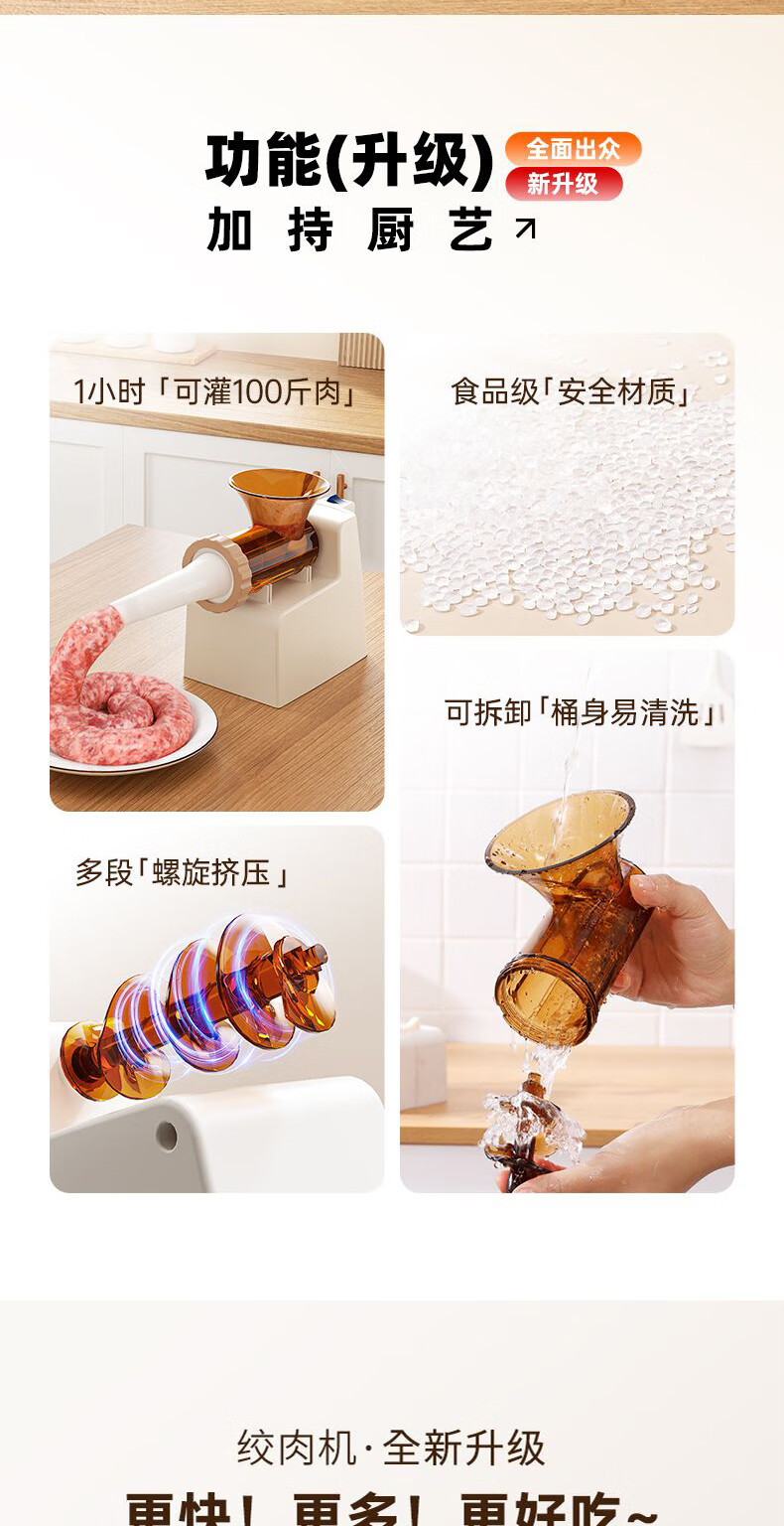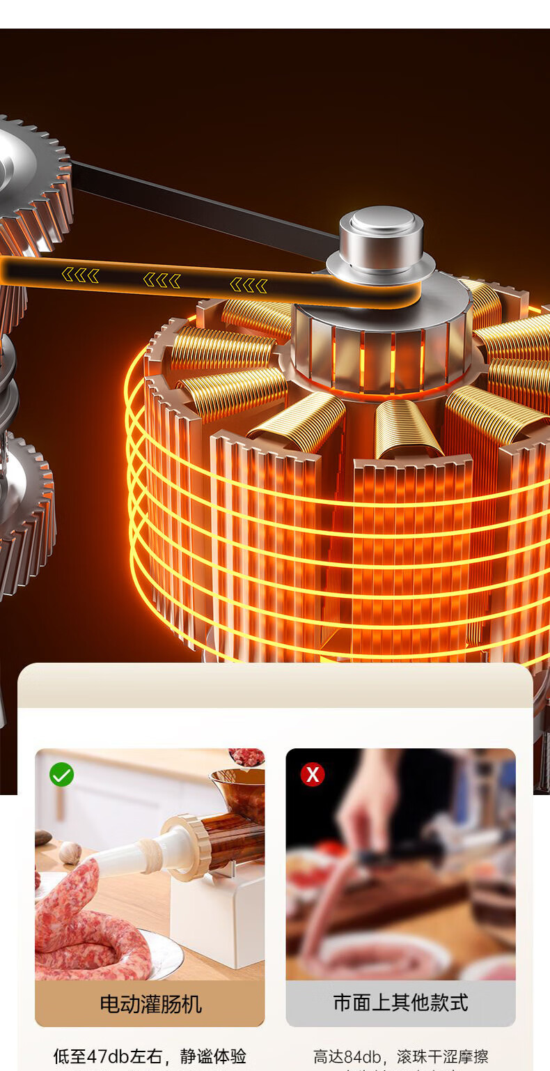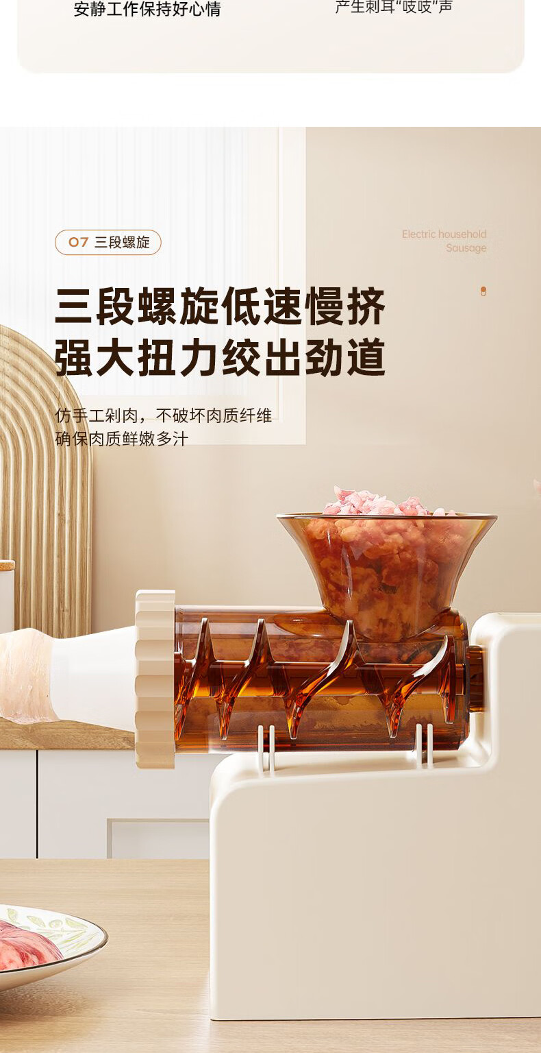 拜杰灌肠器灌肠机家用灌香肠机器全自动灌火腿肠神器灌腊肠旸衣工具 全自动灌肠器【肠管*3根+捣肉棒】 多段螺旋绞出筋道肉感