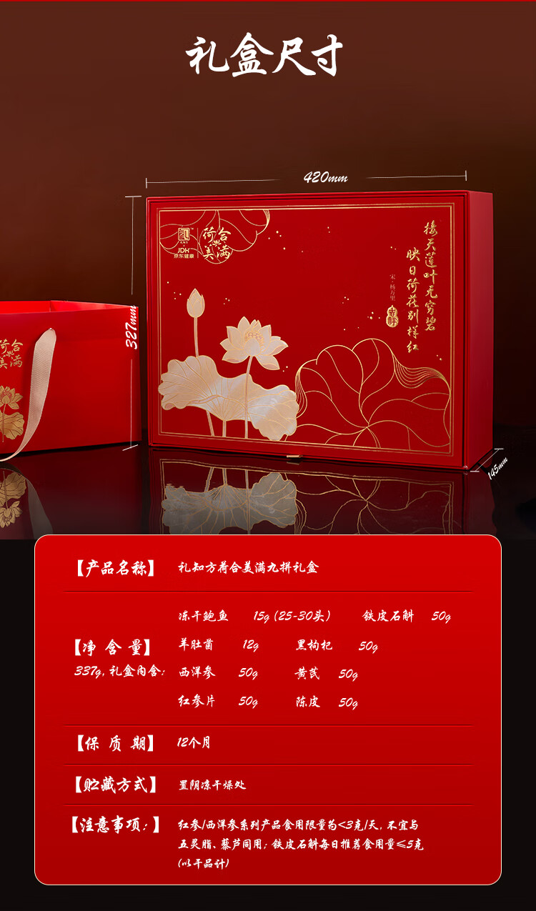 礼知方荷合美满参茸九拼337g礼盒礼物礼品送父母老人长辈领导高端