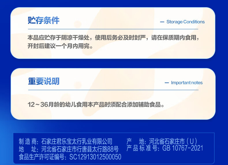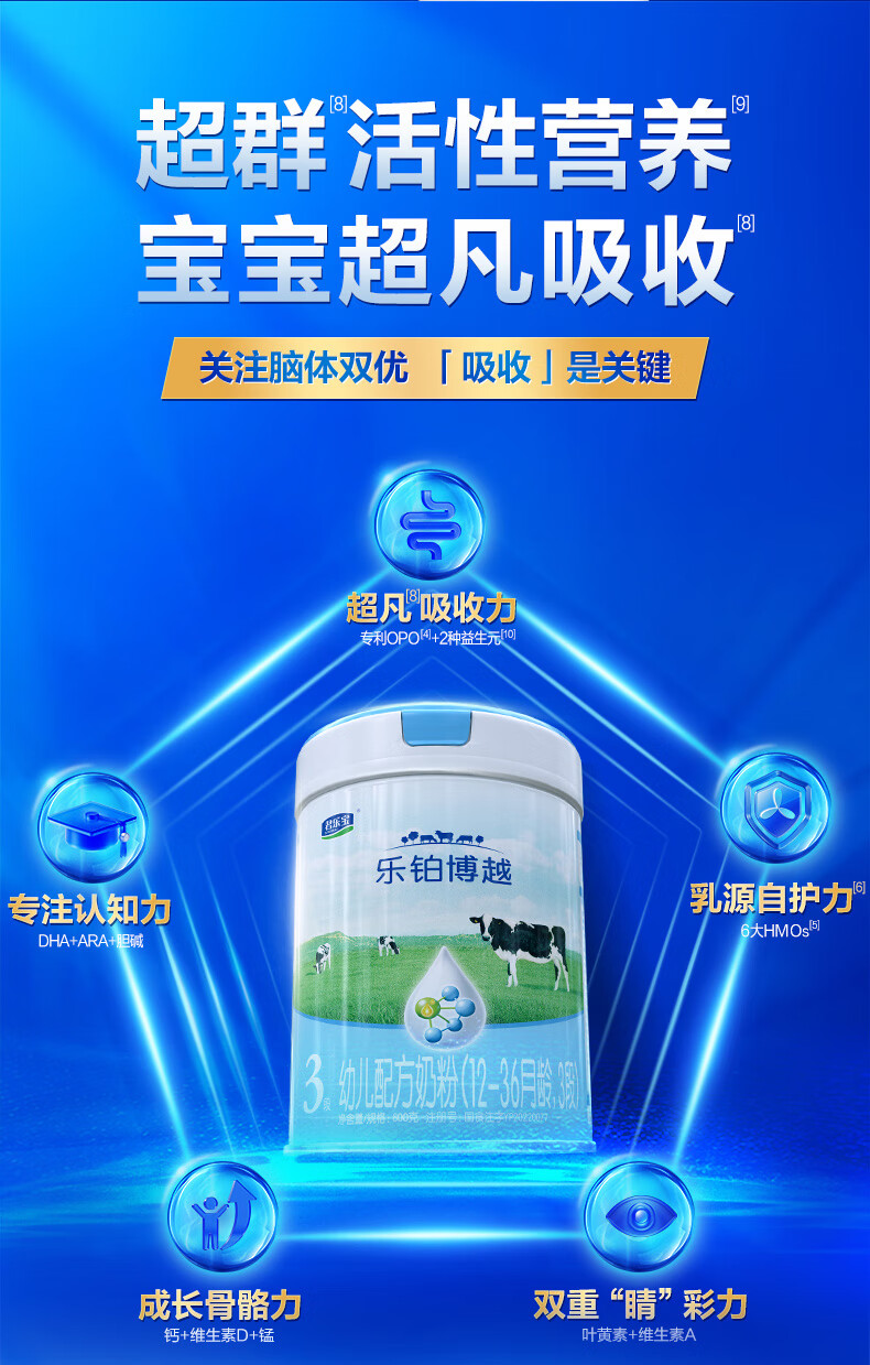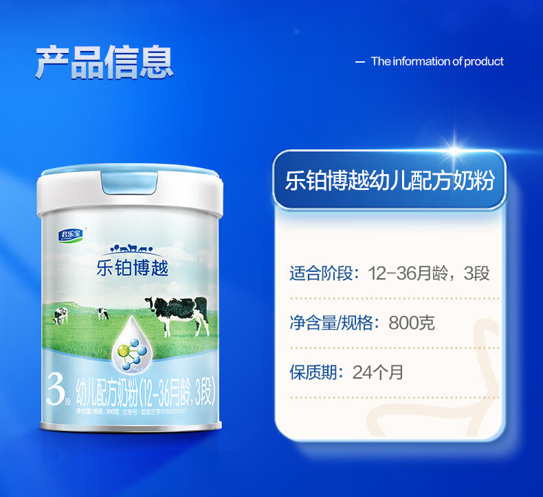 君乐宝乐铂博越 3段幼儿配方奶粉(12-36个月龄)800克