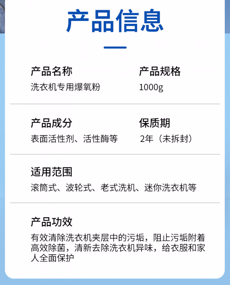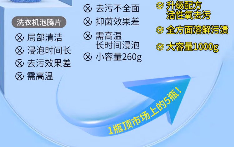 DEATKN德国洗衣机爆氧粉强力除垢清洁剂波轮滚筒洗衣机专用清洗污渍除螨 1000g 1瓶 套餐一