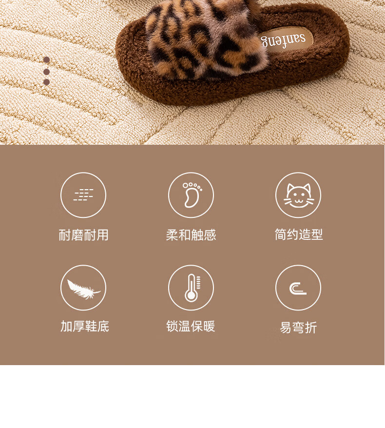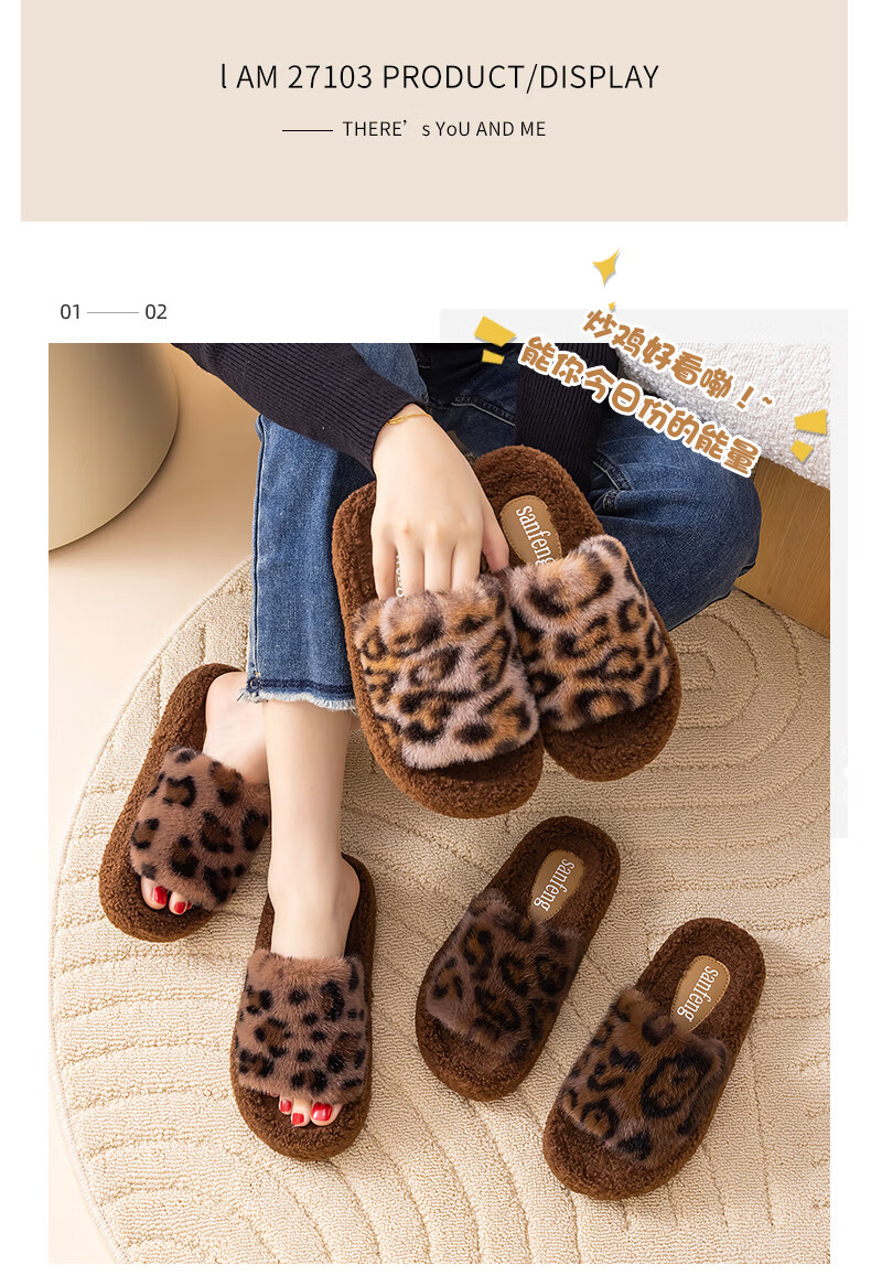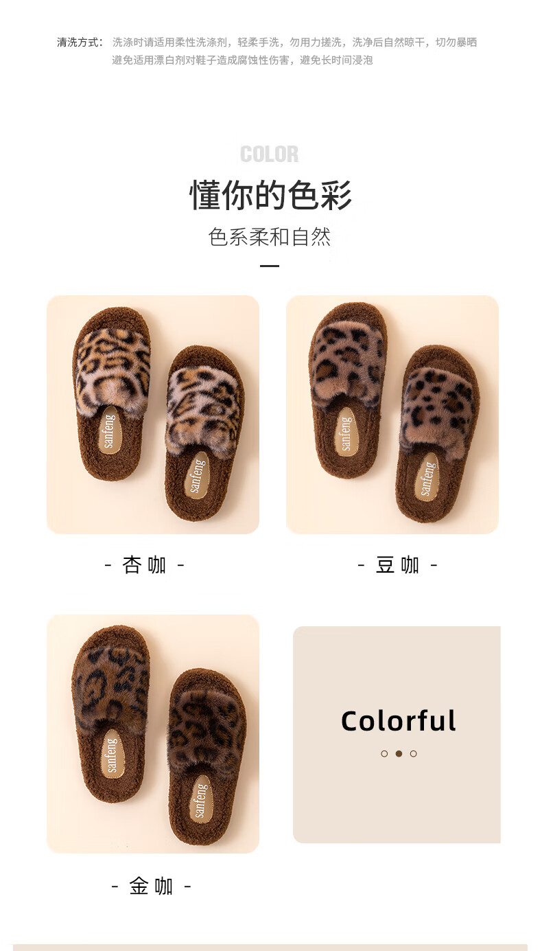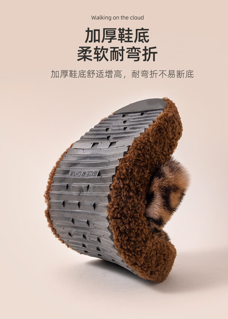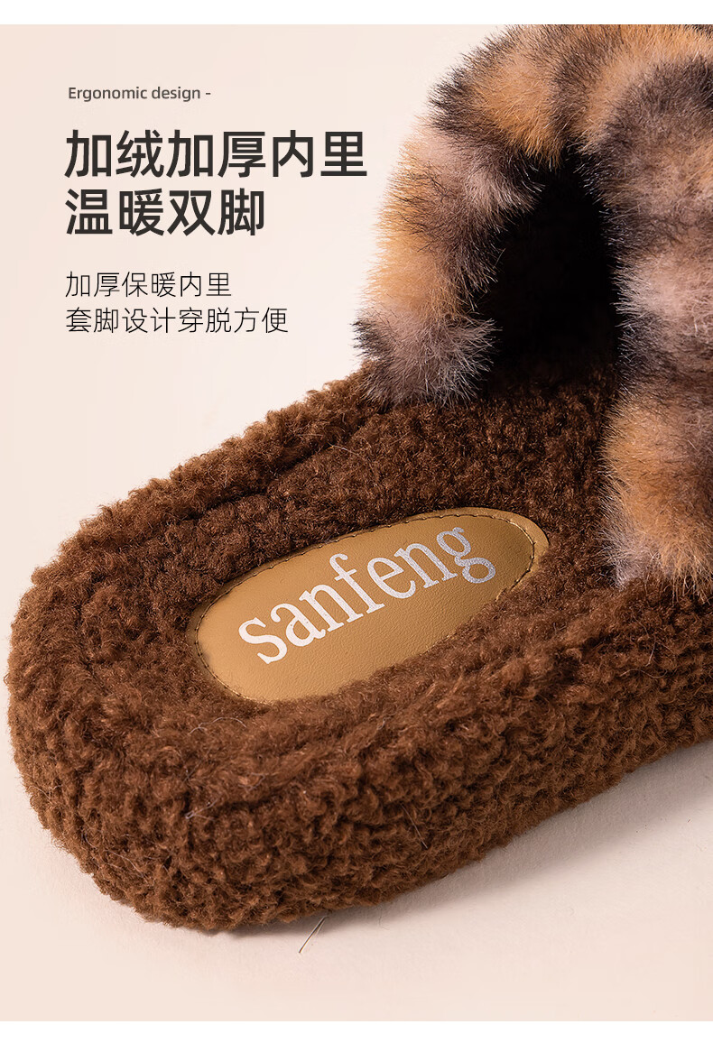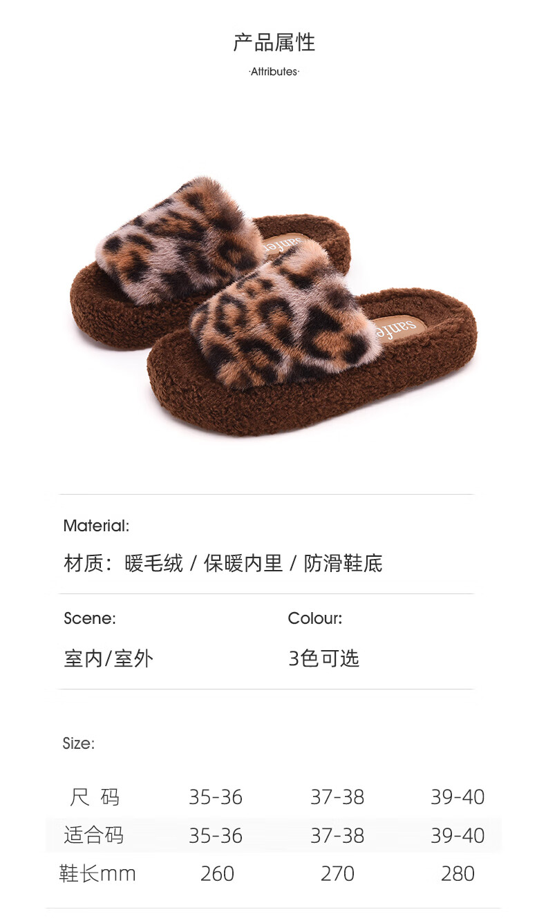 AILUKI日本秋冬季网红时尚百搭毛毛拖鞋女外穿一字拖潮鞋厚底棉拖鞋 A29豹纹:金咖 37 _38