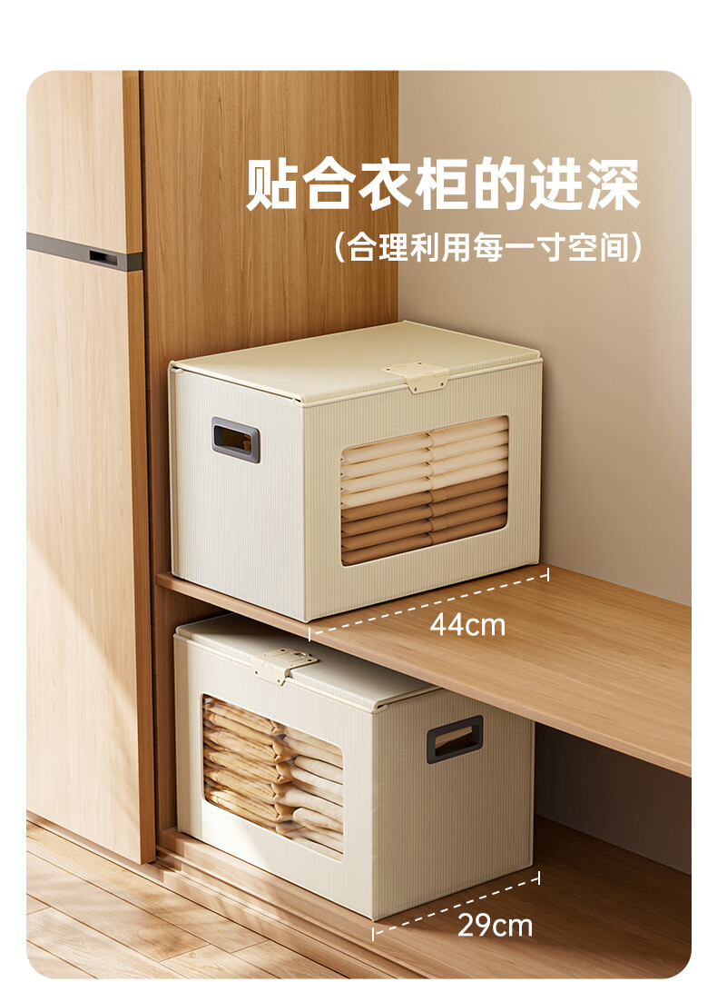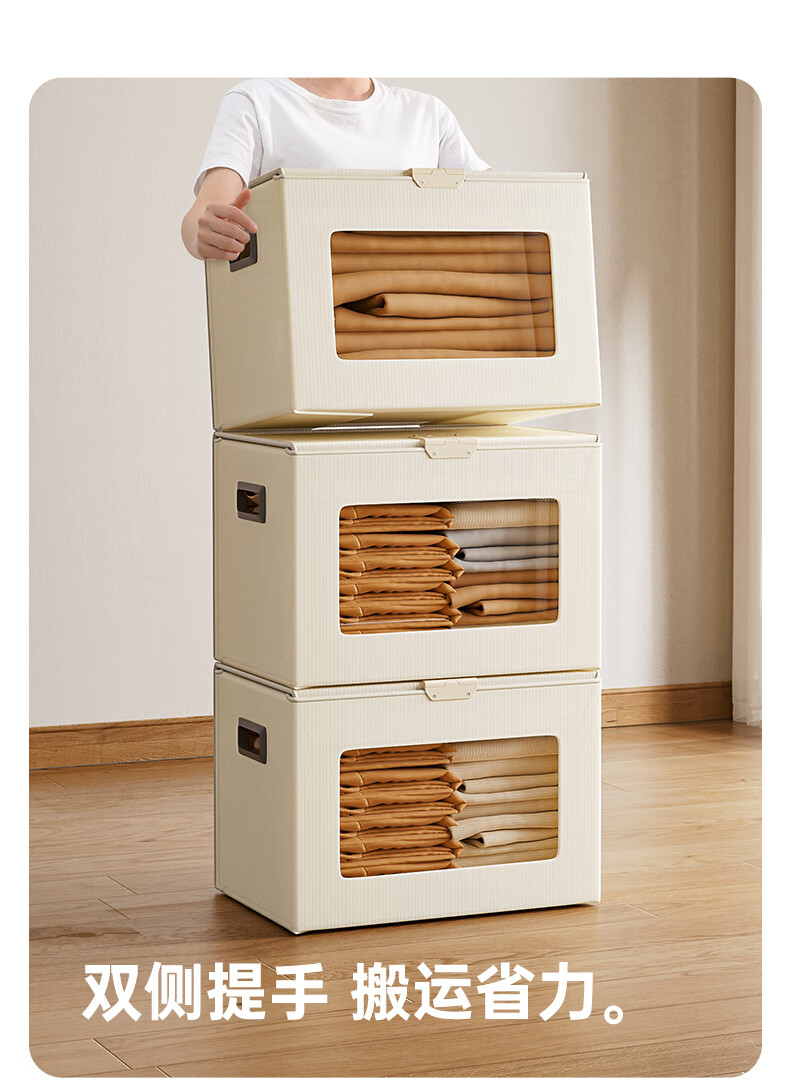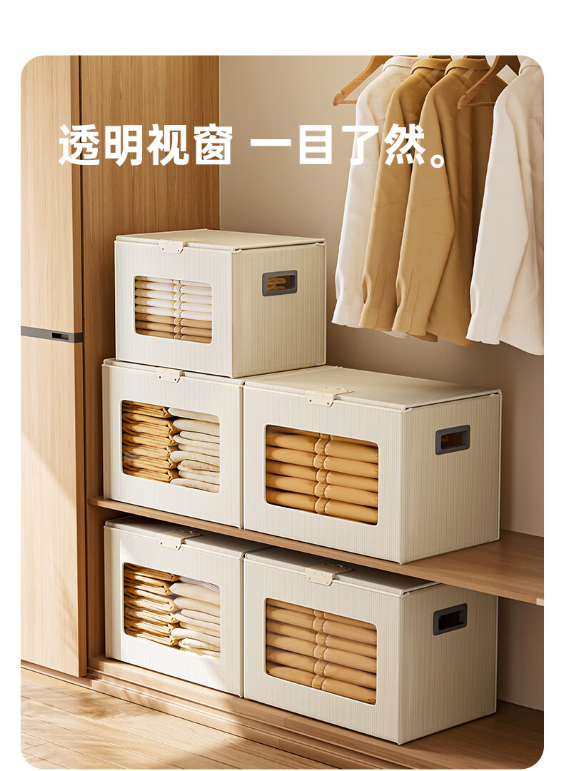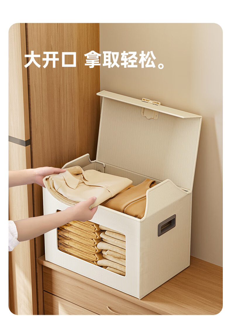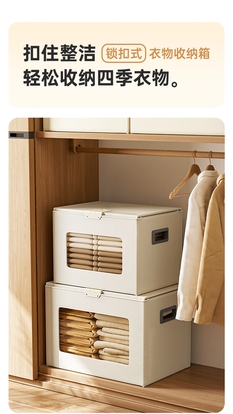 邦尼美家衣服收纳箱带锁扣家用衣柜大容量整理储物箱盒搬家可折叠密封箱子 米色-中号【37*27.5*26cm】 放心购(搬家整理好助手)