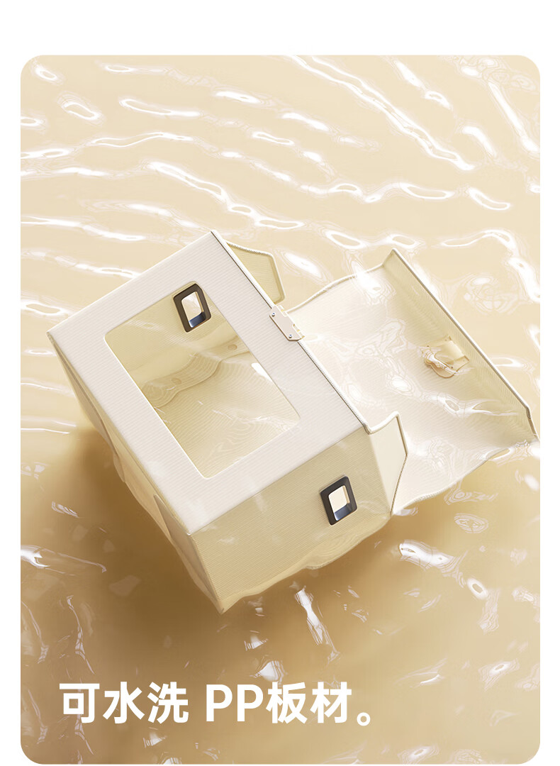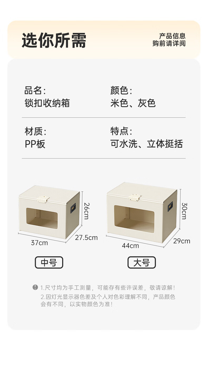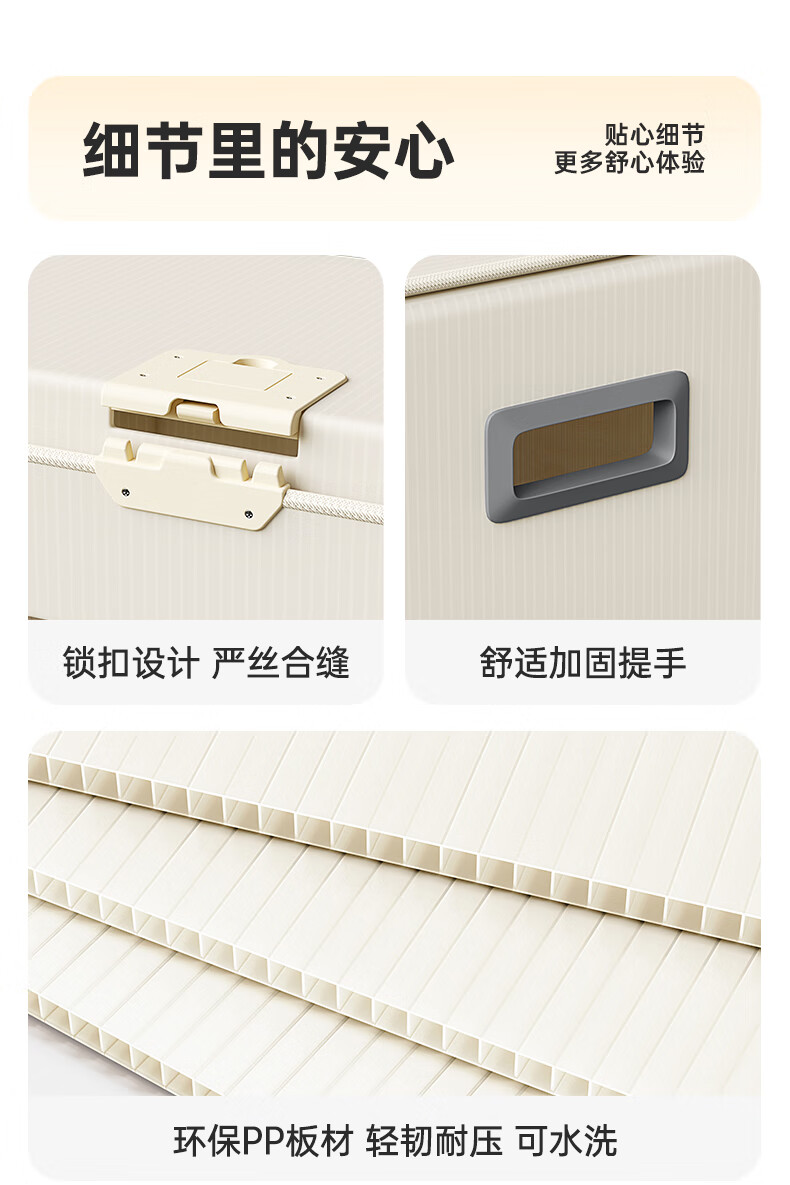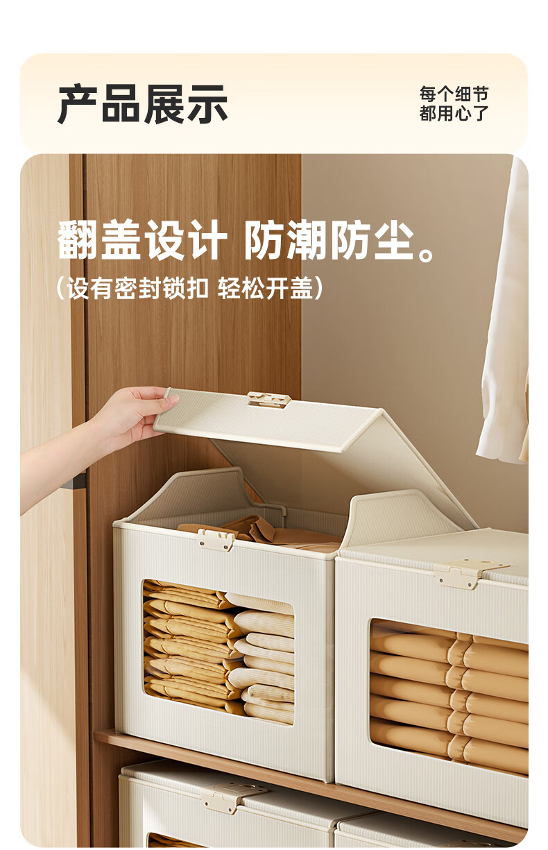 邦尼美家衣服收纳箱带锁扣家用衣柜大容量整理储物箱盒搬家可折叠密封箱子 米色-中号【37*27.5*26cm】 放心购(搬家整理好助手)